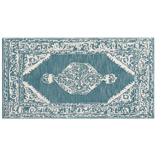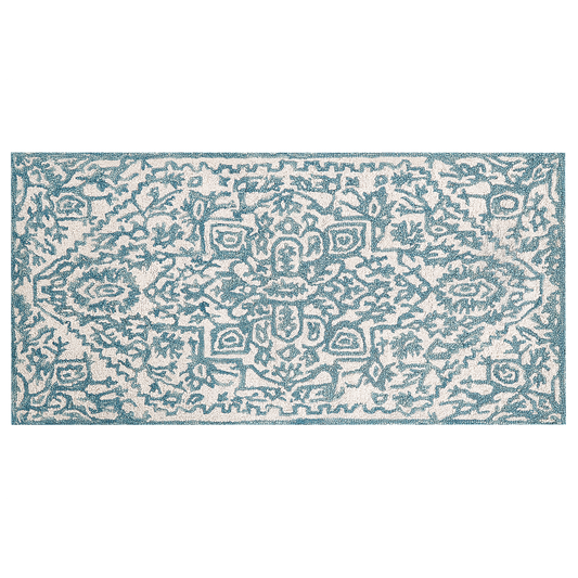 Teppich Wolle weiss / blau 80 x 150 cm AHMETLI