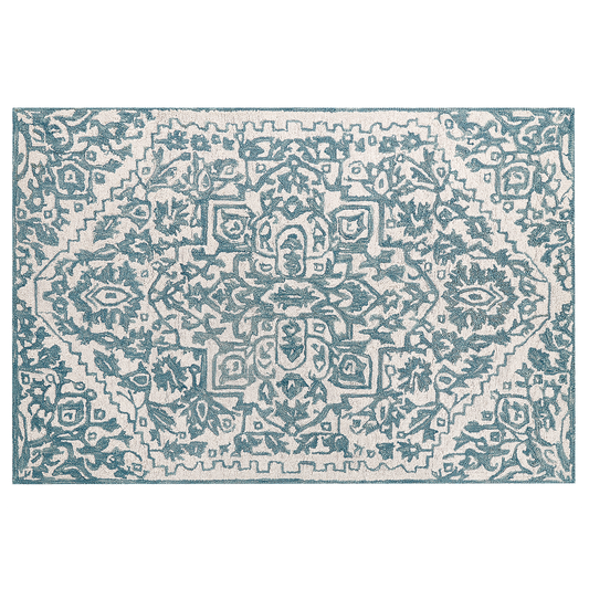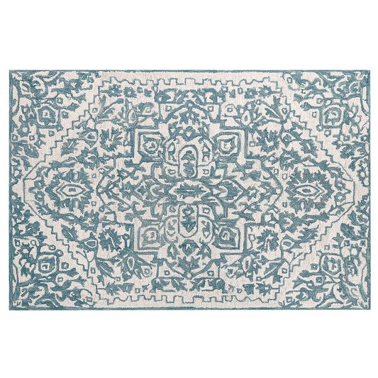 Teppich Wolle weiss / blau 140 x 200 cm GEVAS