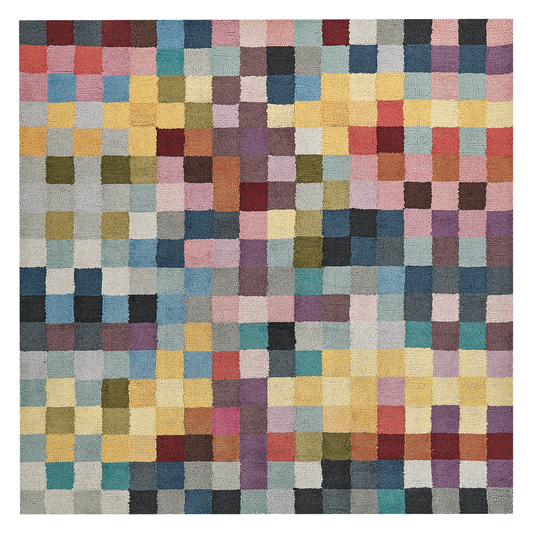 Teppich Wolle mehrfarbig 200 x 200 cm kariertes Muster Kurzflor KANDIRA