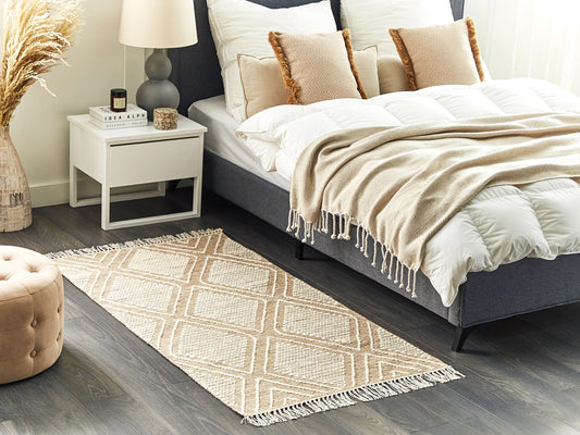 Teppich Baumwolle beige / weiss 80 x 150 cm Kurzflor KACEM