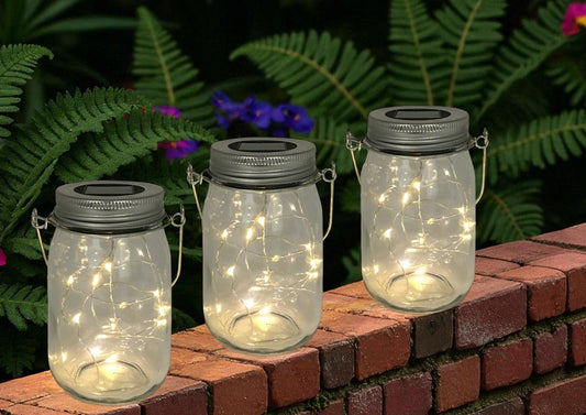 LED Solar Windlicht Klar mit Microlight 10LED Grösse: D:8cm H:14cm