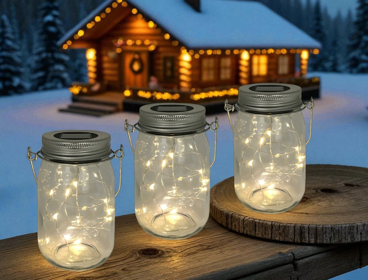 LED Solar Windlicht Klar mit Microlight 10LED Grösse: D:8cm H:14cm