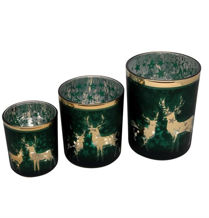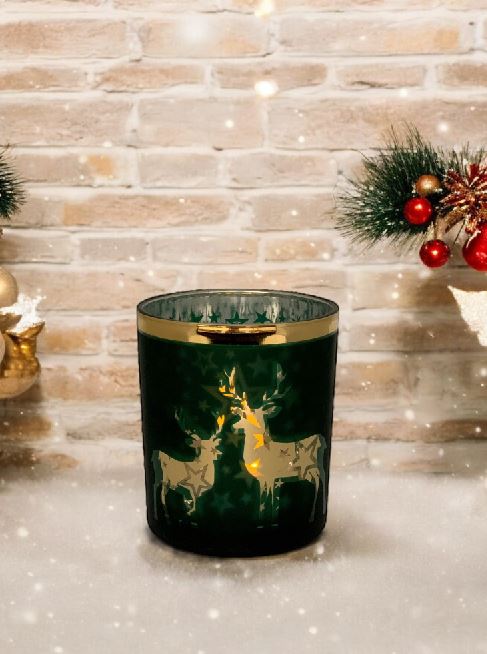 Windlicht aus Glas Farbe: Matt Grün mit goldigem Rand H:10cm D:8.8cm