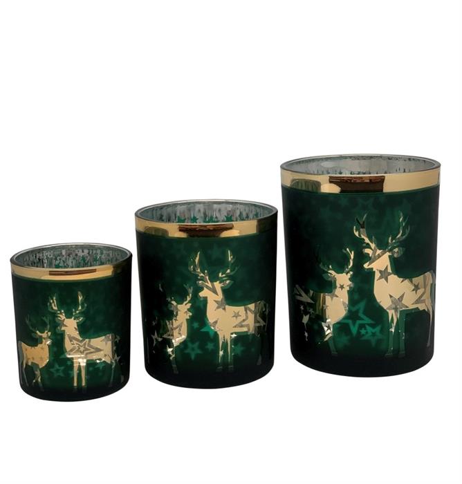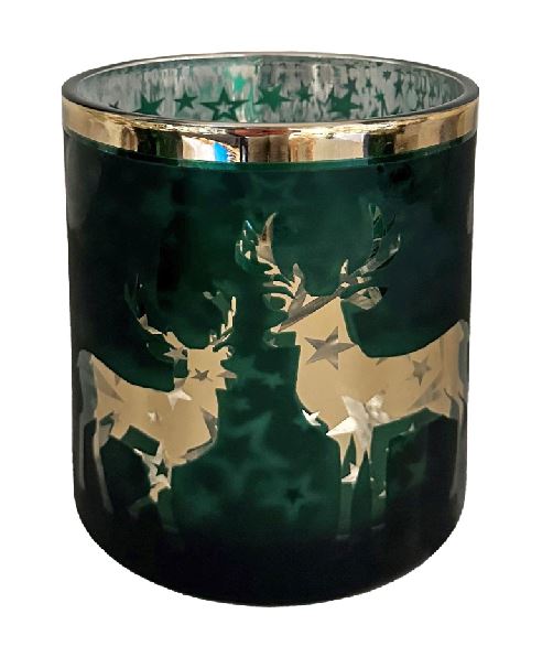 Windlicht aus Glas Farbe: Matt Grün mit goldigem Rand H:12.5cm D:10cm