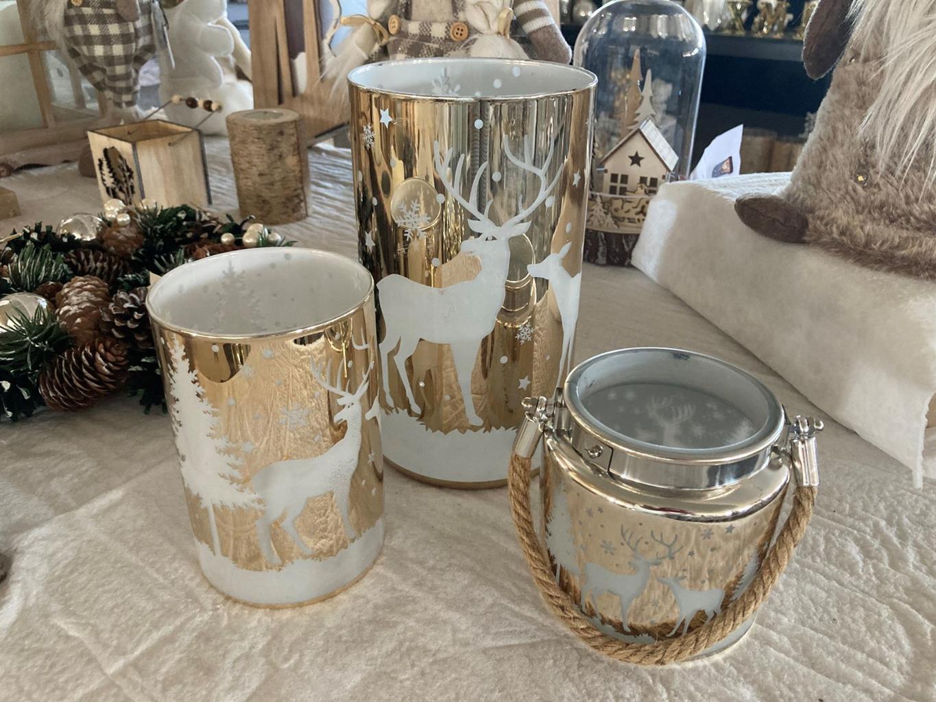 Windlicht aus Glas in der Farbe gold Hirsch Design Grösse: 12x12x20cm