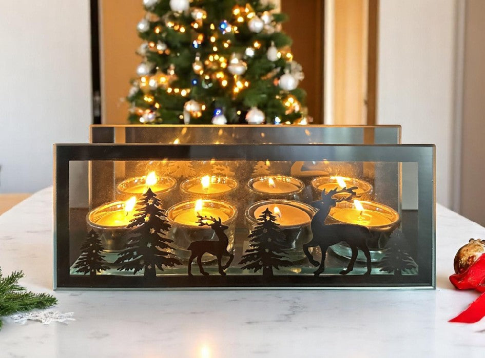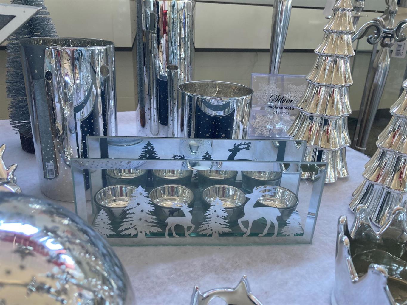 Windlicht aus Glas mit 4 Teelichthaltern Spiegel Silber L6.5cm x B24cm x H9.5cm