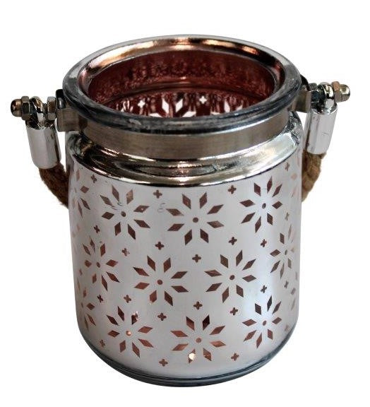 Windlicht aus Glas mit Kordel Farbe: Silber/Roségold H:14.5cm D:10cm