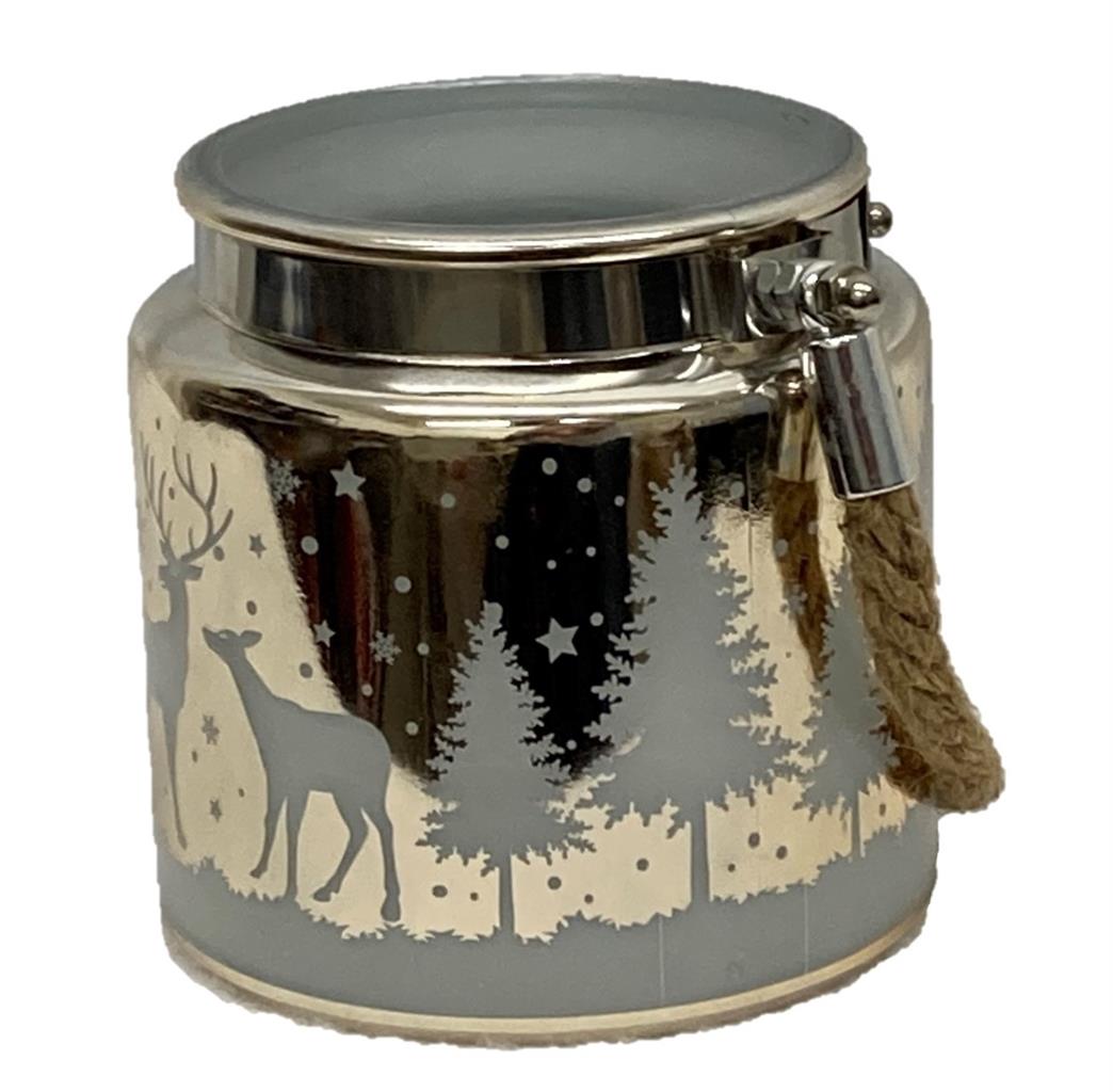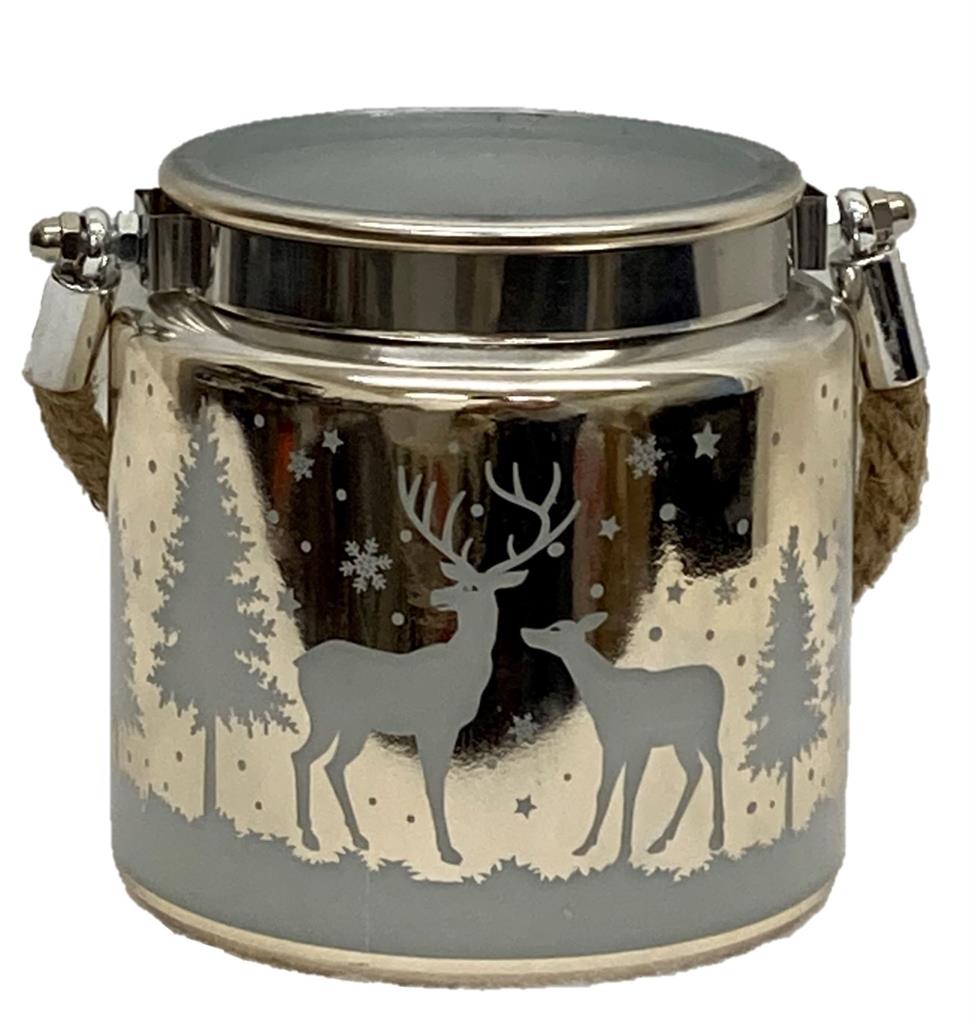 Windlicht aus Glas mit Kordel goldfarbenes Hirsch Design Grösse: D10cm x H 10cm