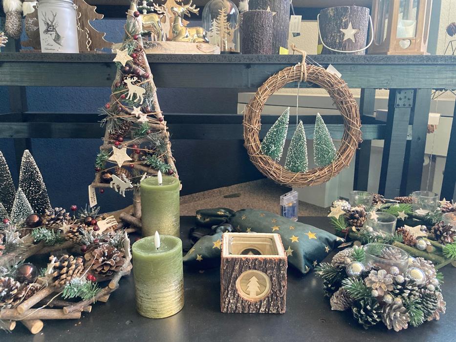 Windlicht aus Holz mit Glaseinsatz, L9cm x B9cm xH9cm, Motiv: Tannenbaum