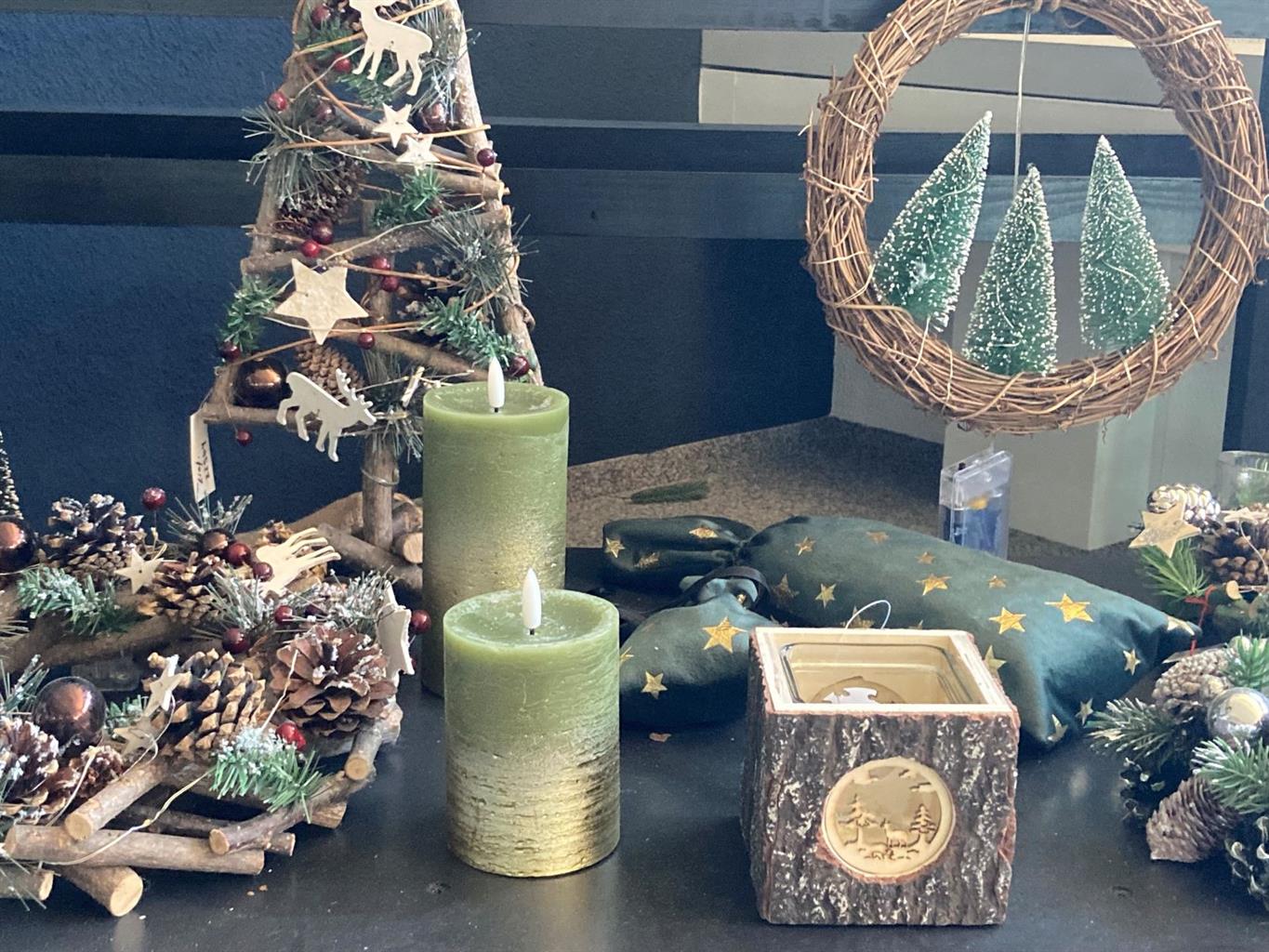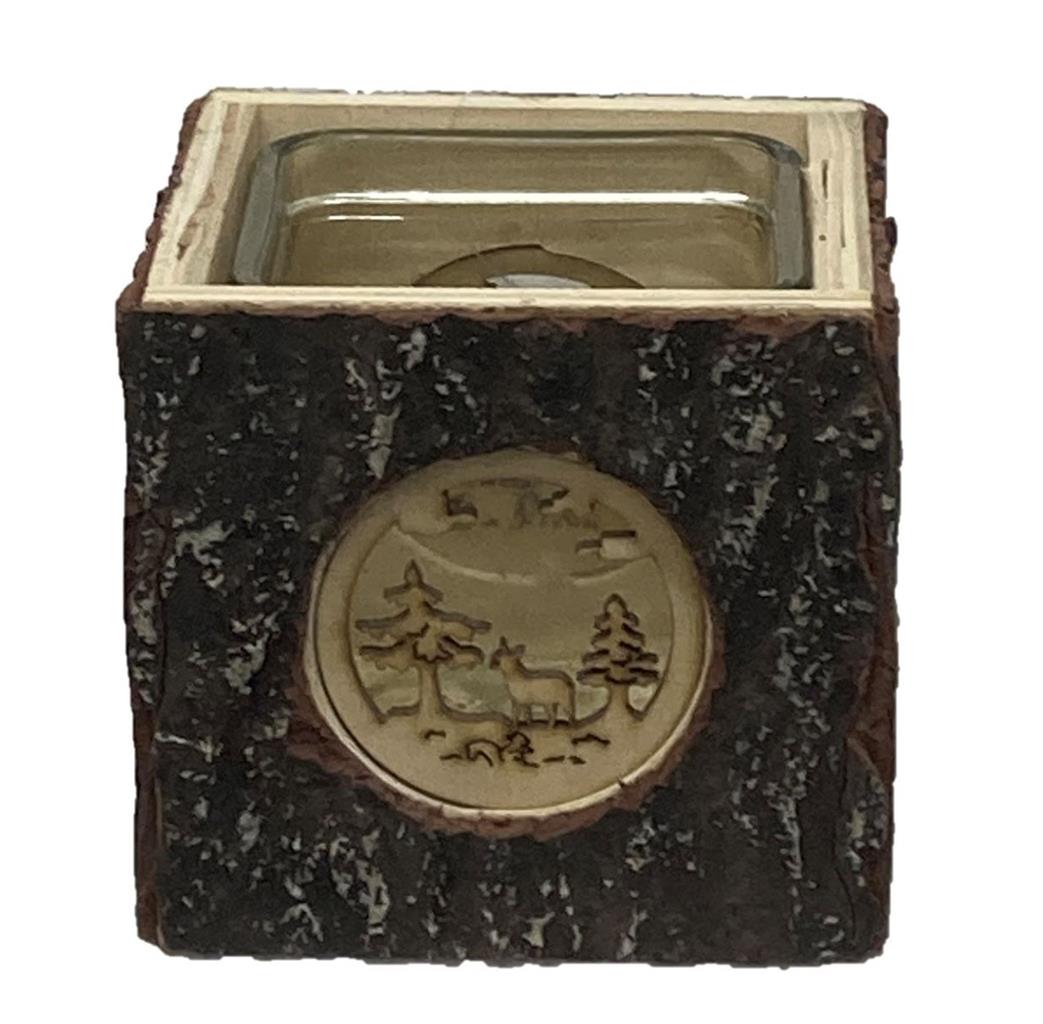 Windlicht aus Holz mit Glaseinsatz L9cm x B9cm xH9cm Motiv: Waldszene