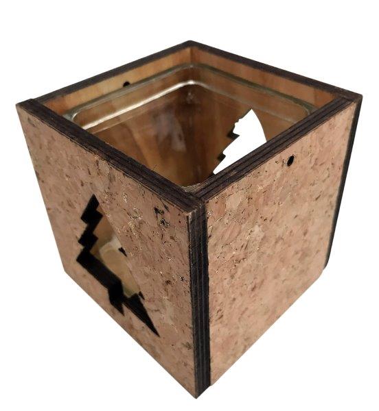 Windlicht aus Kork mit Glaseinsatz mit Tannenmotiv L:9cm B:9cm H:9cm