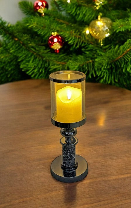 Glaszylinder abnehmbar Fuss D12cm und oberer Abschluss aus silberfarbenem Metall Glaszylinder D10cm H15.5cm geeignet für Teelichter, Kerzen oder Lichterketten