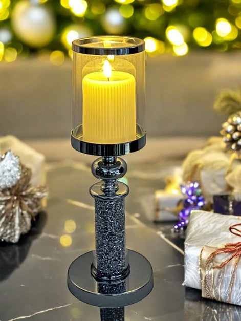 Windlicht Kelch aus Metall gefüllt mit Strasssteinen H41.5cm