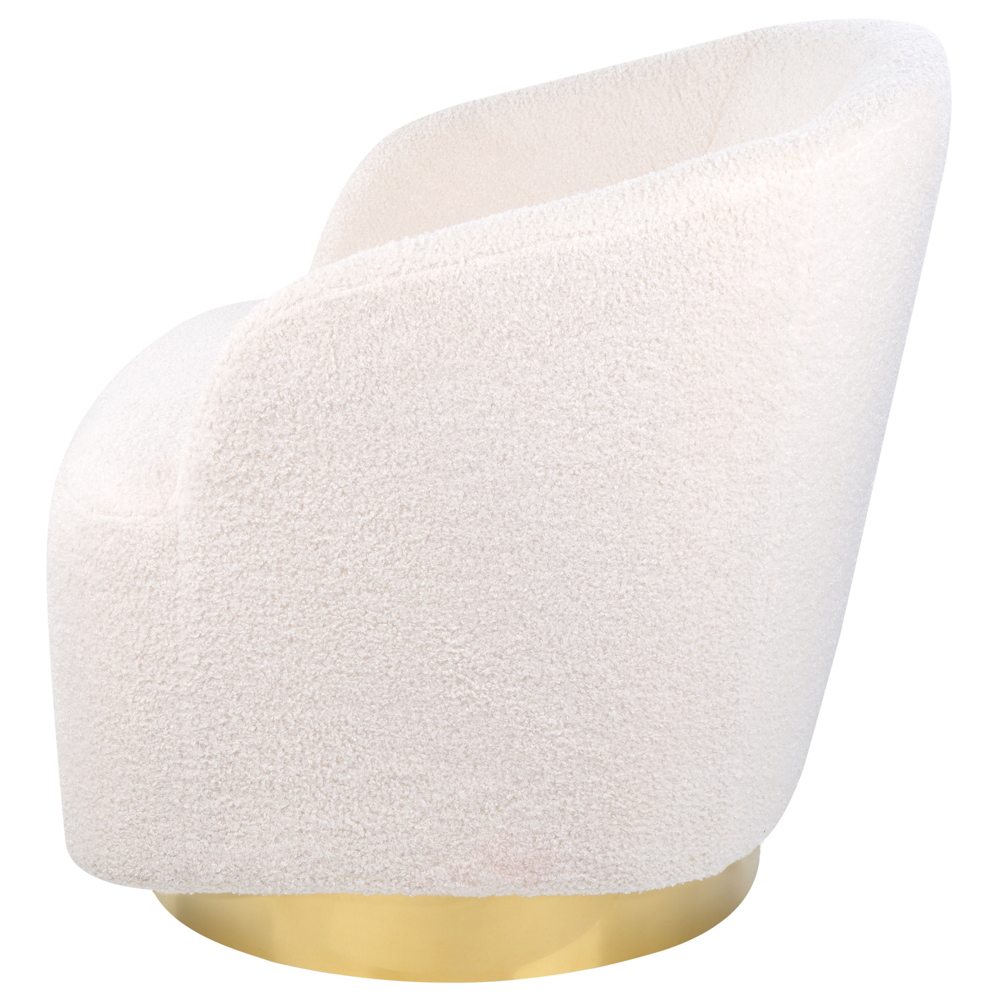 Dieser stilvolle Retro-Sessel ist ein echter Hingucker in jedem Wohnzimmer und wird schnell zu einem Lieblingsplatz zum Entspannen. Er ist mit hochwertigem, weissem Bouclé gepolstert, der sehr weich ist und eine einzigartige, angenehme Textur bietet. Das Möbelstück verfügt ausserdem über einen goldenen Sockel, der als Drehpunkt dient und somit das Umstellen des Sessels erspart, wenn man seine Sitzposition ändern möchte. Material: Bouclé. Zusätzliches Material: Eukalyptus, Sperrholz, Metall. Material Zusammensetzung: 100% Polyester Gewicht: 20 Montage: Benötigt keine Montage Holzart: Eucalyptus grandis Holzursprung: China Gewichtskapazität: 150 Polsterstärke: 38 Sitzhöhe: 47 Das Angebot beinhaltet: 1 x Sessel Sitzfläche: 54x59 Höhe: 71 Breite: 73 Tiefe: 70 Art: Drehsessel Stil: Retro Allgemeine Farbe: Weiss Muster: Ohne Muster Hauptmaterial: Bouclé Füllmaterial: Schaumstoff Arm Stil: Abgesenkt