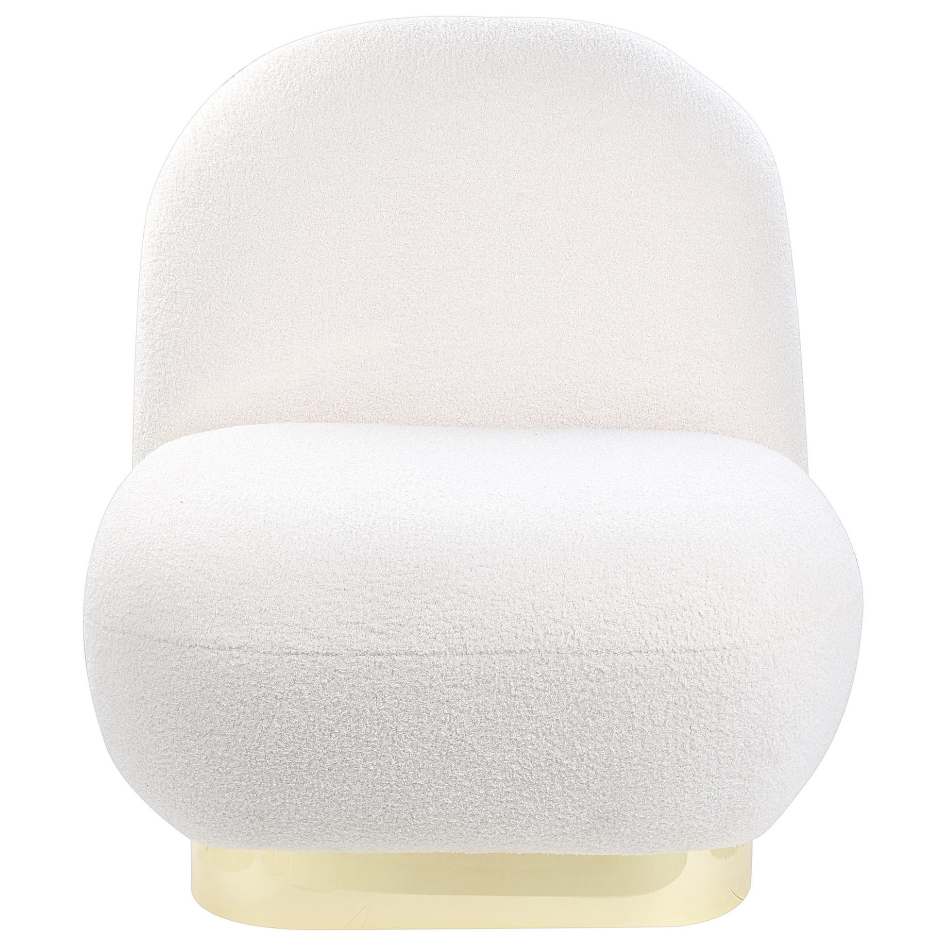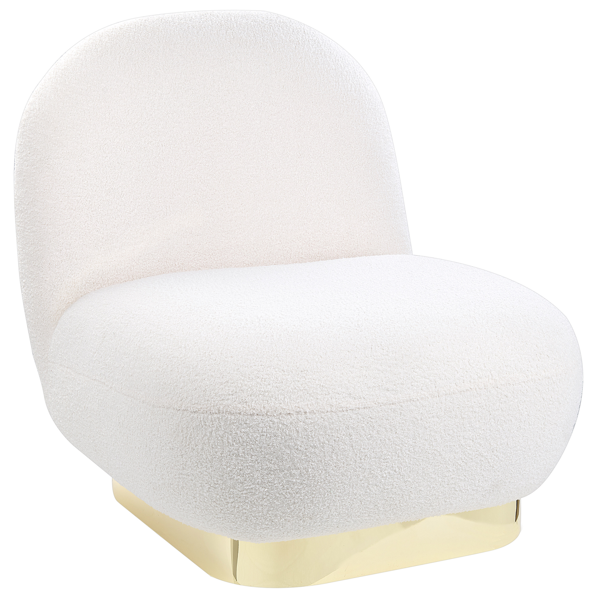 Dieser moderne Sessel besticht durch sein edles Design. Die runde Form und der quadratische, goldene Sockel machen den Sessel zu einem einzigartigen Eyecatcher in jedem Raum. Der Sessel ist mit Bouclé-Stoff gepolstert, einem weichen und doch robusten Material, das jahrelangem Gebrauch standhält, ohne dabei seine schöne Struktur und Farbe zu verlieren. Das goldene, quadratische Gestell ergänzt das gesamte Design, setzt einen glamourösen Akzent und verleiht der Konstruktion gleichzeitig Stabilität. Kombinieren Sie diesen Sessel mit anderen eleganten Möbeln und Wohnaccessoires in hellen Tönen, um eine moderne Einrichtung zu schaffen. Material: Bouclé. Zusätzliches Material: Eisen, Eukalyptus. Material Zusammensetzung: 100% Polyester Gewicht: 18.5 Montage: Benötigt keine Montage Holzart: Eucalyptus Globulus Holzursprung: China Gewichtskapazität: 150 Polsterstärke: 33 Sitzhöhe: 38 Das Angebot beinhaltet: 1 x Sessel Sitzfläche: 68x58 Höhe: 76 Breite: 62 Tiefe: 70 Art: Sessel Stil: Modern Allgemeine Farbe: Weiss Muster: Ohne Muster Hauptmaterial: Bouclé Füllmaterial: Schaumstoff Arm Stil: Ohne Armlehnen