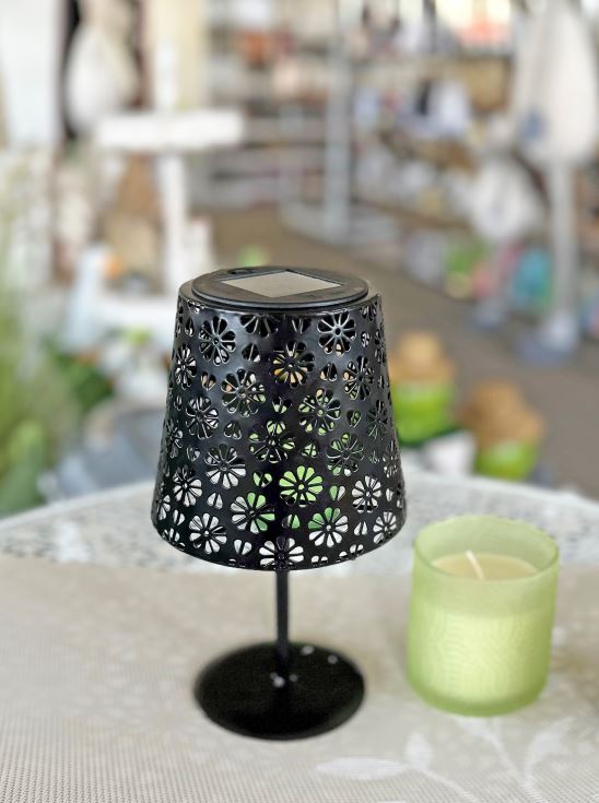 LED Solar Tischleuchte aus Metall in Schwarz D13cm x H25cm