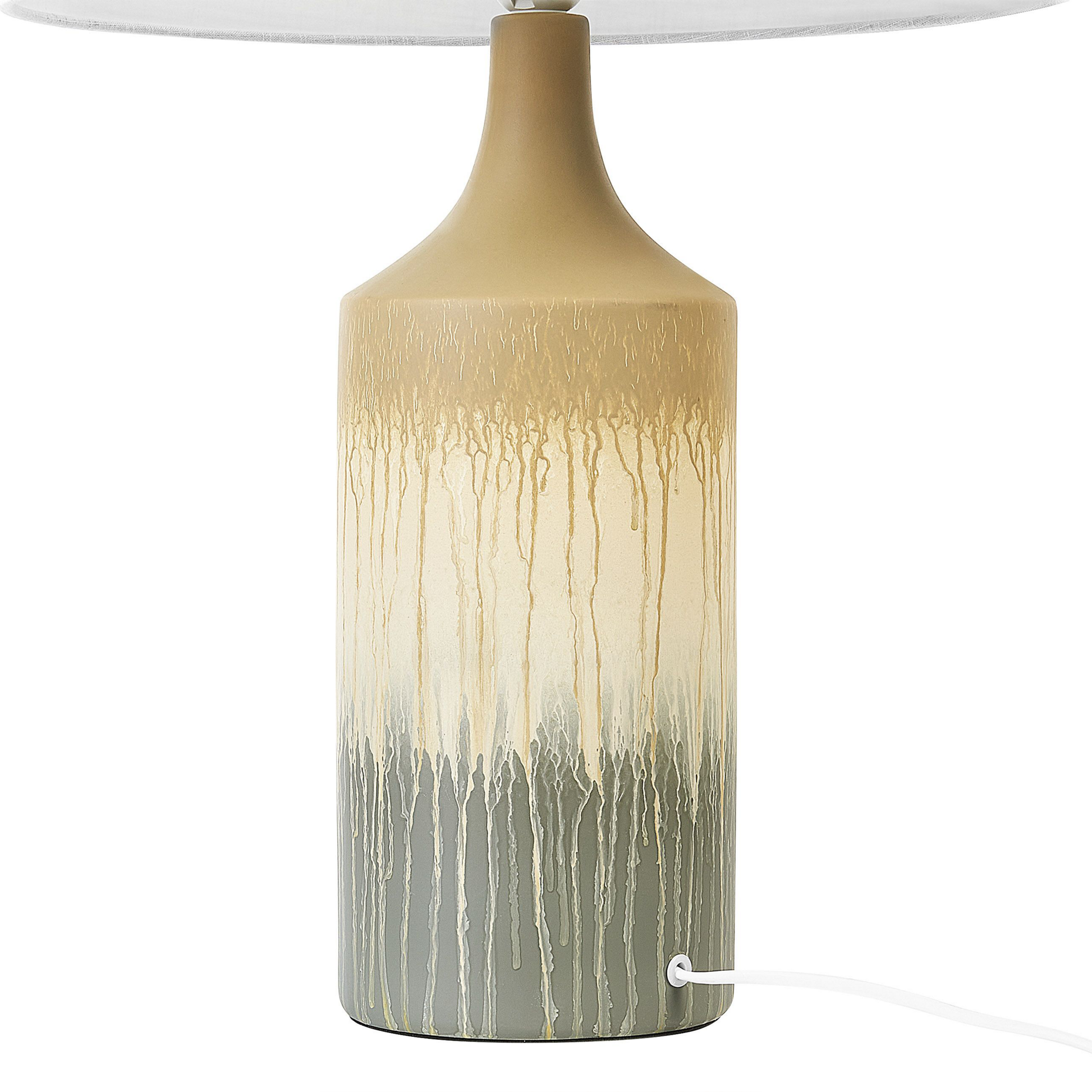 Falls man möchte, dass die Inneneinrichtung auffällt und die Aufmerksamkeit auf sich zieht, muss diese Lampe einfach dazugehören. Der Sockel ist aus hochwertiger Keramik gefertigt und weist eine einzigartige Farbkombination auf, und dank des weissen Schirms passt die Leuchte in viele verschiedene Einrichtungsstile. Ob auf dem Nachttisch oder im Wohnzimmer auf dem Beistelltisch, die Lampe ist einfach ein echter Hingucker. Material: Keramik. Zusätzliches Material: Baumwolle. Material Zusammensetzung: 65% Leinen, 35% Baumwolle Gewicht: 2.5 Montage: Teilweise montiert Das Angebot beinhaltet: 1 x Tischleuchte, Nicht im Lieferumfang enthalten: Leuchtmittel Höhe: 64 zusätzliche Information: Die Stromkabel dürfen nur von einem qualifizierten Elektriker angepasst werden. Breite: 40 Tiefe: 40 Art: Tischleuchte Stil: Glamourös Allgemeine Farbe: Weiss Hauptmaterial: Keramik Fassung: 40 W IP Protection Code: IP 20