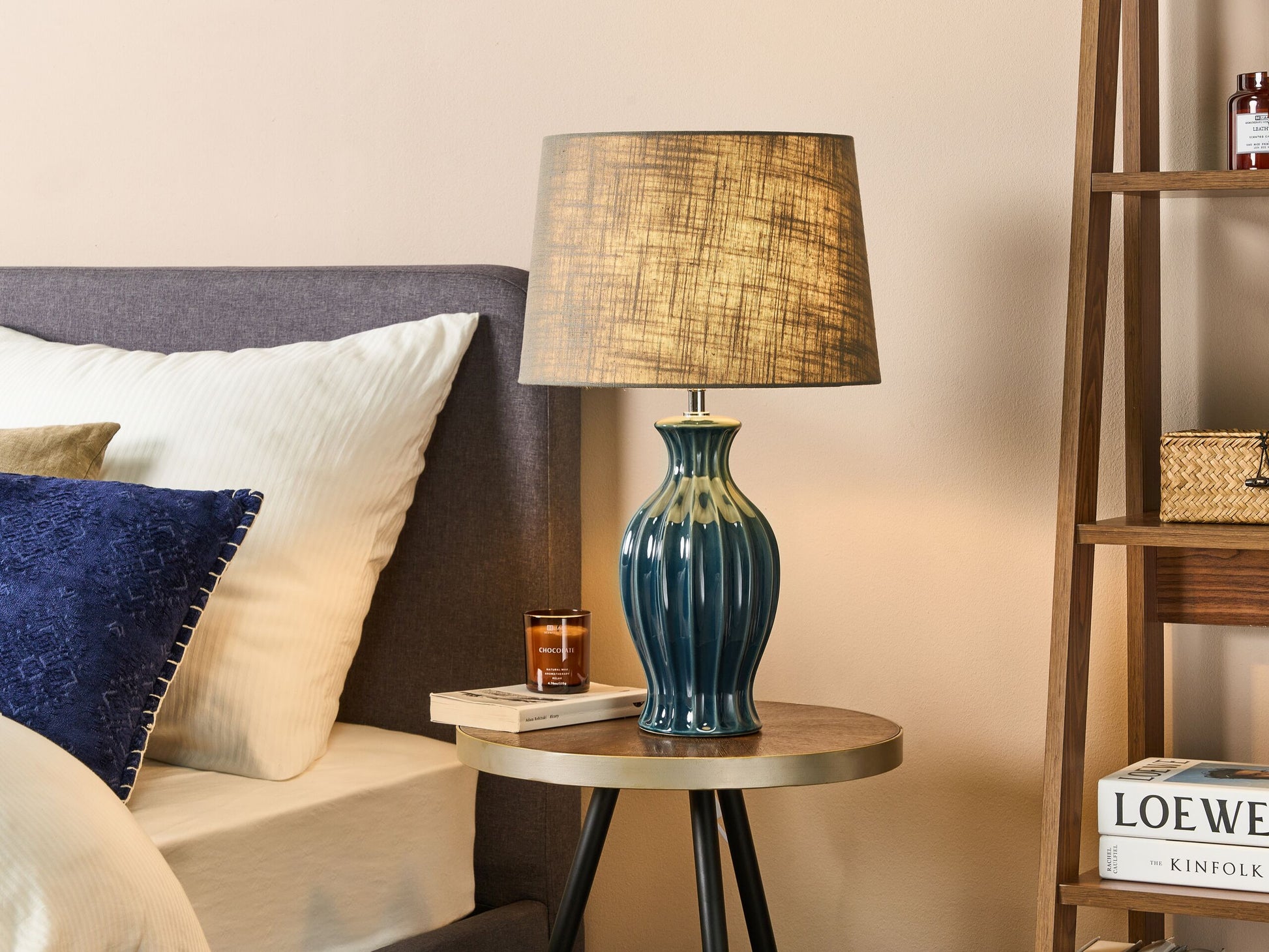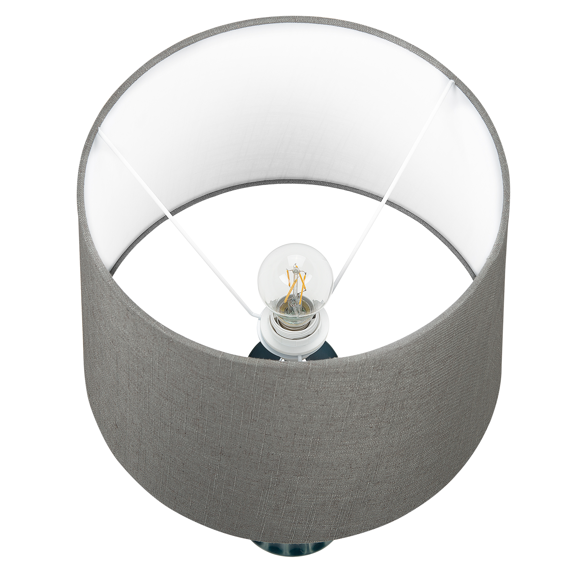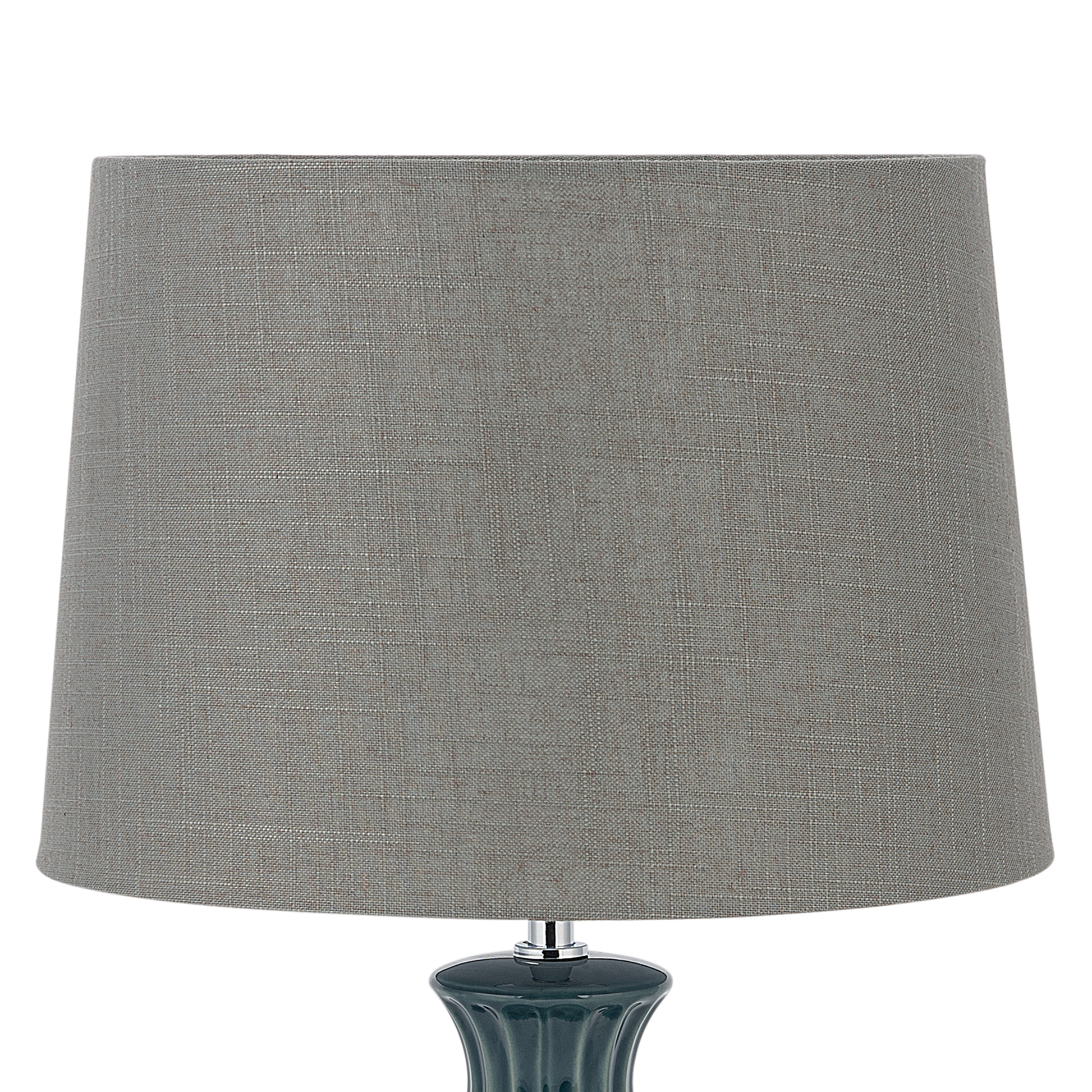 Klassisch und doch edel - mit dieser Tischlampe verleihen Sie jedem Raum eine elegante Note. Der leicht geschwungene, dunkelgrüne Keramikfuss besitzt senkrechte Rillen die schön mit dem glatten, grau-braunen Schirm aus Polyester kontrastieren. Dank der dunkleren Farbtöne versprüht die Lampe ein angenehmes Licht mit kuscheliger Atmosphäre.  Material: Keramik. Zusätzliches Material: Polyester.  Material Zusammensetzung: 100% Polyester Gewicht: 3 Montage: Teilweise montiert Das Angebot beinhaltet: 1 x Tischleuchte, Nicht im Lieferumfang enthalten: Leuchtmittel Höhe: 59 zusätzliche Information: Diese Leuchte ist geeignet für Leuchtmittel der Energieklassen A bis G auf einer Skala von A (sehr effizient) bis G (weniger effizient). Geeignet für: LED Leuchtmittel, Eco-Halogen Leuchtmittel, Energiesparleuchtmittel., Die Stromkabel dürfen nur von einem qualifizierten Elektriker angepasst werden. Breite: 35 Tiefe: 35 Art: Tischleuchte Stil: Retro Allgemeine Farbe: Grün Schatten: Taupe Hauptmaterial: Keramik Fassung: Max. 40 W IP Protection Code: IP 20