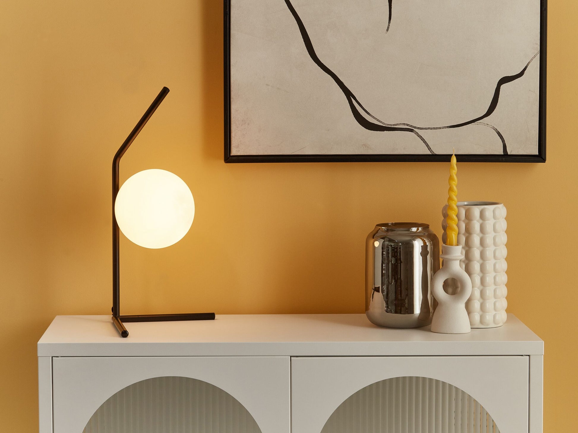Beschreibung: Beleuchten Sie Ihr Zuhause mit einem charmanten Eyecatcher wie diesem. Hergestellt aus robustem Glas und Metall, zeichnet sich die Tischlampe durch ihr modernes Aussehen aus und passt dank der zeitlosen Farbkombination zu verschiedenen Einrichtungsstilen. Der kugelförmige Lampenschirm und die einzigartige Platzierung am Stab werden definitiv die Blicke Ihrer Gäste in Ihrem Wohnzimmer oder Homeoffice auf sich ziehen. Material: Glas. Gewicht: 0.5 Montage: Teilweise montiert Das Angebot beinhaltet: Nicht im Lieferumfang enthalten: Leuchtmittel, 1 x Tischleuchte Höhe: 47 zusätzliche Information: Die Stromkabel dürfen nur von einem qualifizierten Elektriker angepasst werden. Breite: 15 Tiefe: 19 Art: Tischleuchte Stil: Modern Allgemeine Farbe: Schwarz Hauptmaterial: Glas Fassung: 40 W IP Protection Code: IP 20