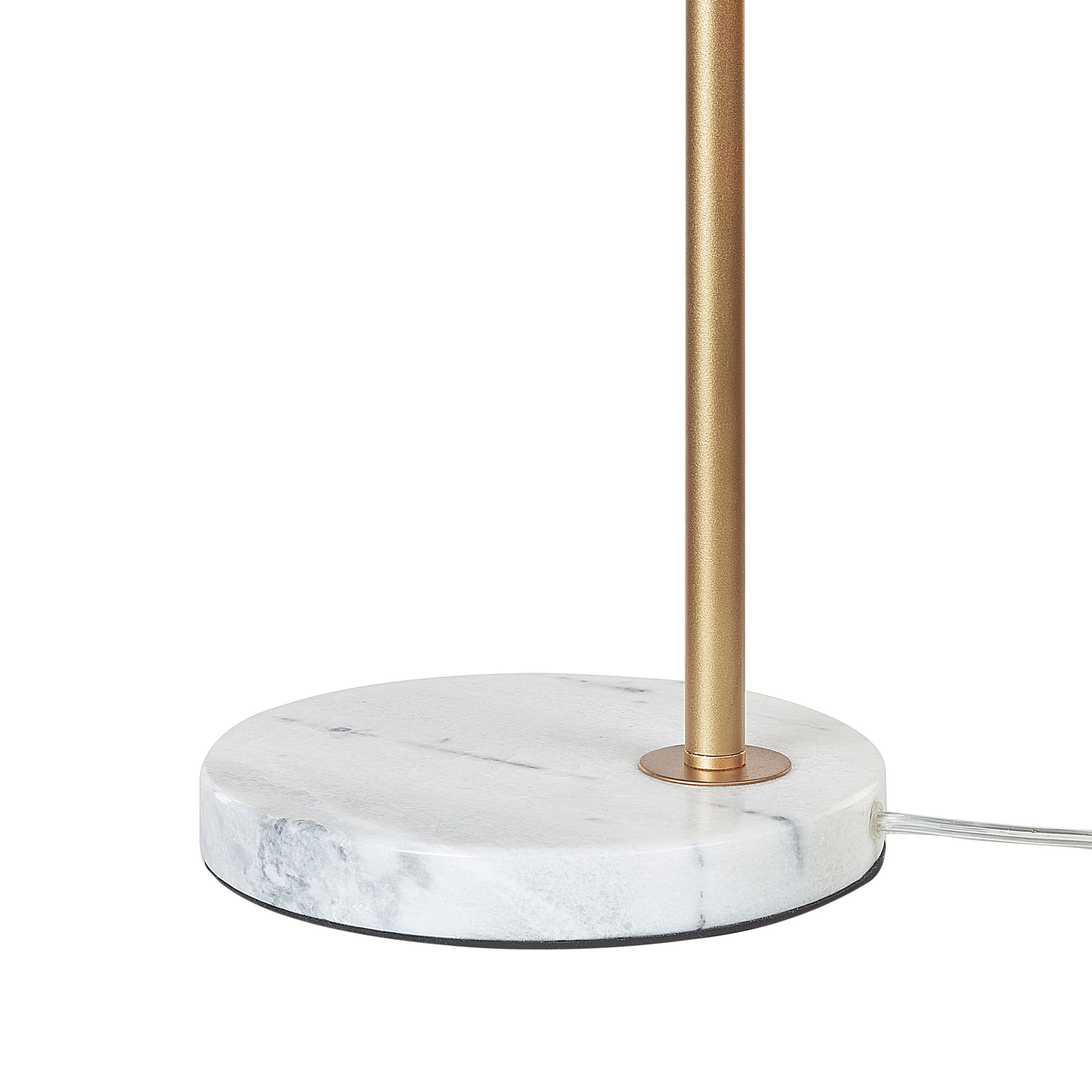 Verleihen Sie Ihrem Raum mit dieser Leuchte einen glamourösen Look. Die Wohnzimmerlampe punktet mit ihrem auffälligen Metallschirm in Kegelform, dem langen Metallgestell und ihrem überwiegend weissem Marmorsockel. Das lange, transparente Kabel mit Schalter erlaubt es Ihnen sie fast überall anzuschliessen. Dank ihres Designs eignet sie sich hervorragend als Arbeitsleuchte und ist die perfekte Leseleuchte im Schlafbereich, oder sie kann auch in Ihrem Arbeitszimmer eingesetzt werden.   Material: Eisen. Zusätzliches Material: Marmor.  Gewicht: 3 Montage: Benötigt keine Montage Das Angebot beinhaltet: 1 x Tischleuchte, Nicht im Lieferumfang enthalten: Leuchtmittel Höhe: 65 zusätzliche Information: Diese Leuchte ist geeignet für Leuchtmittel der Energieklassen A bis G auf einer Skala von A (sehr effizient) bis G (weniger effizient). Geeignet für: LED Leuchtmittel, Eco-Halogen Leuchtmittel, Energiesparleuchtmittel., Die Stromkabel dürfen nur von einem qualifizierten Elektriker angepasst werden. Breite: 26 Tiefe: 20 Art: Tischleuchte Stil: Modern Allgemeine Farbe: Gold Schatten: Cremeweiss Hauptmaterial: Eisen Fassung: Max. 40 W IP Protection Code: IP 20