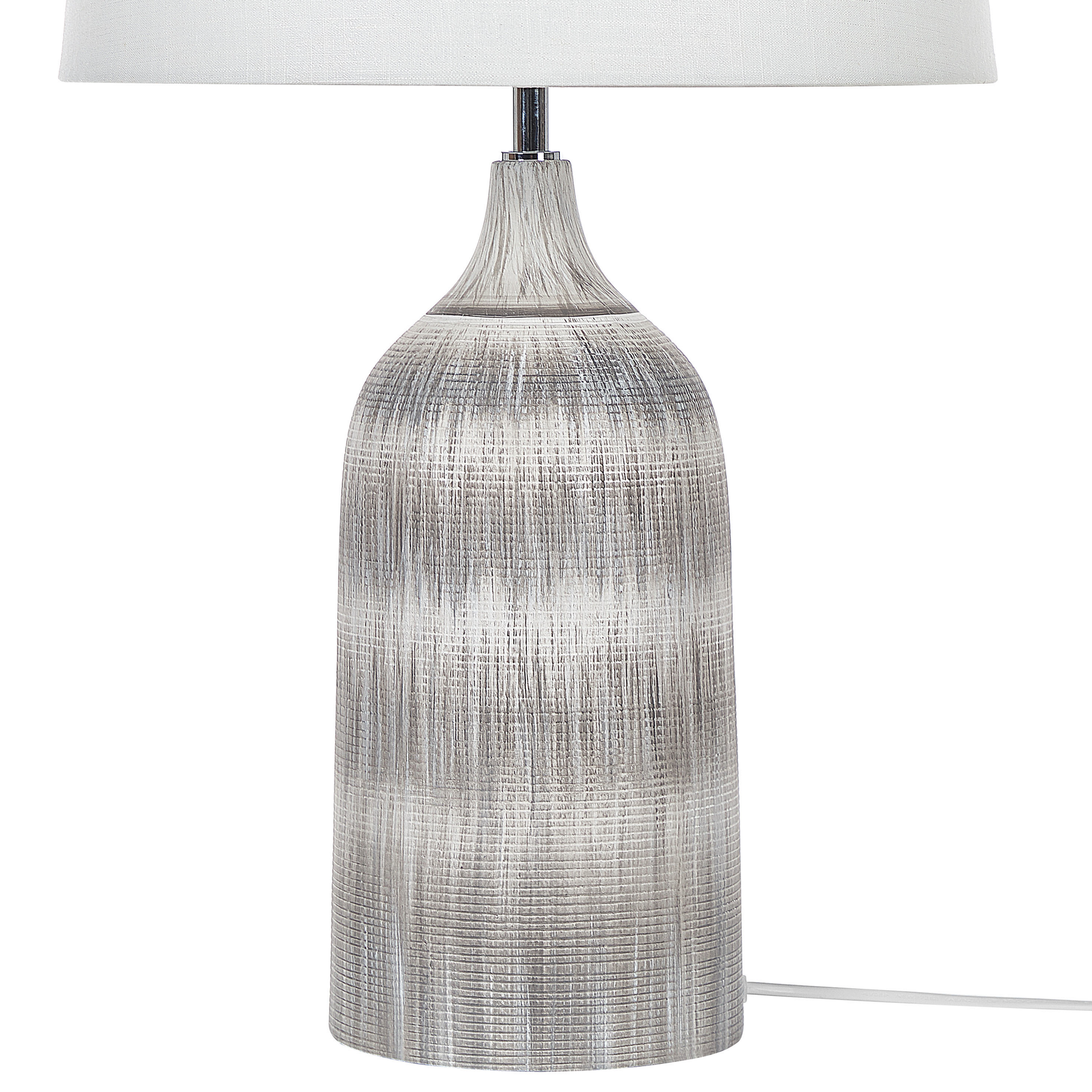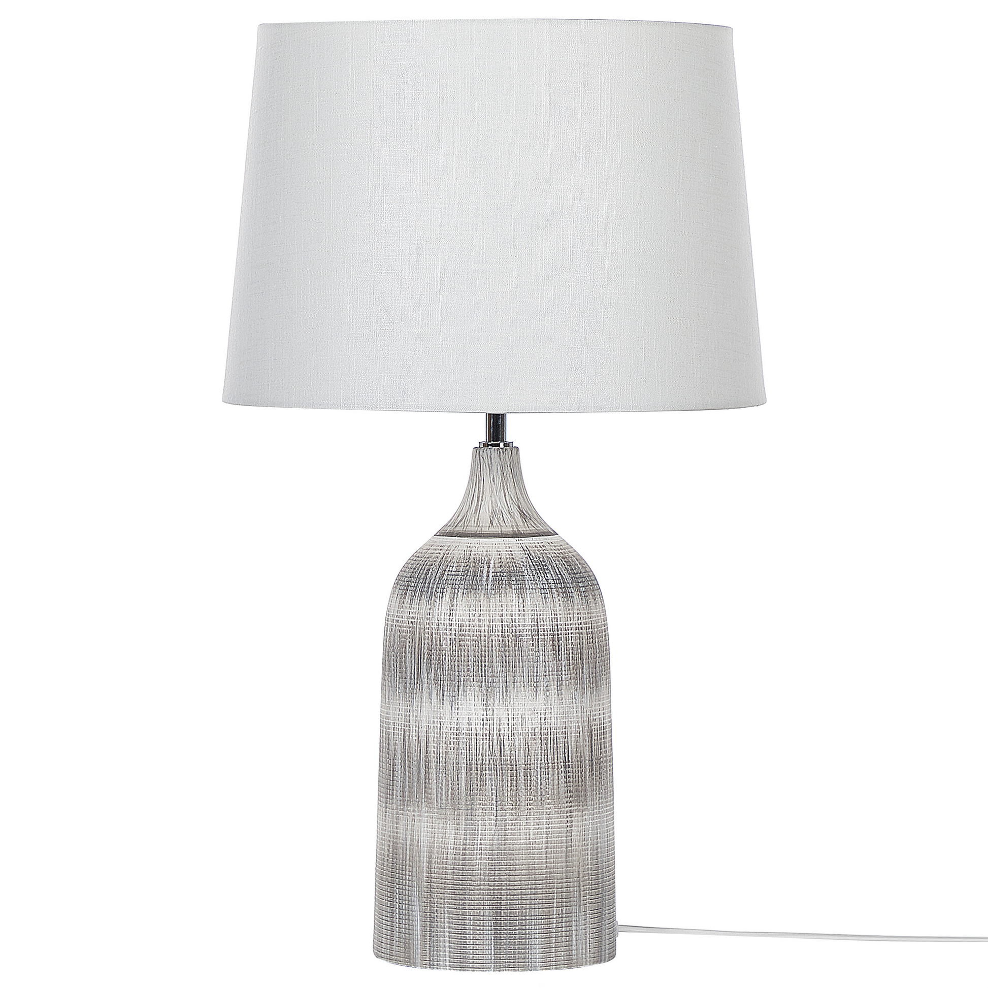 Wenn Sie Ihre Sofaecke oder einen Nachttisch aufhellen wollen, ist diese klassische Tischleuchte das perfekte Accessoire für Sie. Sie wird mit einem schönen, strukturierten Keramikfuss und einem farblich passenden Lampenschirm aus Stoff geliefert, der ein schönes, warmes Licht spendet. Mit ihrem schlichten Design passt sie zu jeder Wohnungseinrichtung und in jeden Raum, vom Schlafzimmer bis zum Flur.  Material: Keramik. Zusätzliches Material: Baumwolle, Jute.  Material Zusammensetzung: 65% Jute, 35% Baumwolle Gewicht: 3 Montage: Teilweise montiert Das Angebot beinhaltet: 1 x Tischleuchte, Nicht im Lieferumfang enthalten: Leuchtmittel Höhe: 66 zusätzliche Information: Diese Leuchte ist geeignet für Leuchtmittel der Energieklassen A bis G auf einer Skala von A (sehr effizient) bis G (weniger effizient). Geeignet für: LED Leuchtmittel, Eco-Halogen Leuchtmittel, Energiesparleuchtmittel., Die Stromkabel dürfen nur von einem qualifizierten Elektriker angepasst werden., Da jedes Produkt handgefertigt wird, kann es zu kleineren Abweichungen in der Farbe und der äusseren Struktur kommen. Diese Abweichungen stellen keinen Qualitätsmangel dar, sondern sind eine warentypische Eigenschaft. Breite: 33 Tiefe: 33 Art: Tischleuchte Stil: Modern Allgemeine Farbe: Grau Schatten: Cremeweiss Hauptmaterial: Keramik Fassung: 40 W IP Protection Code: IP 20