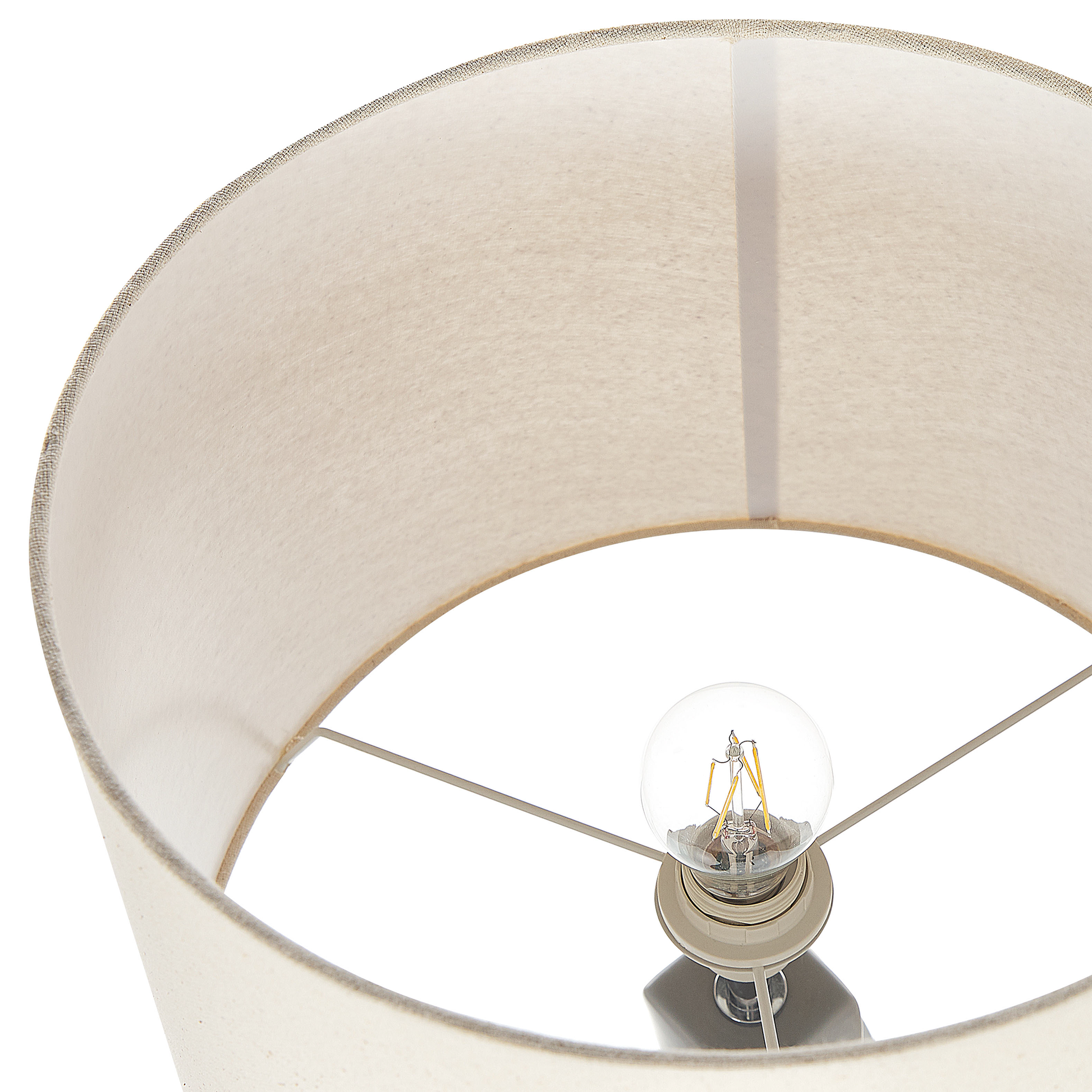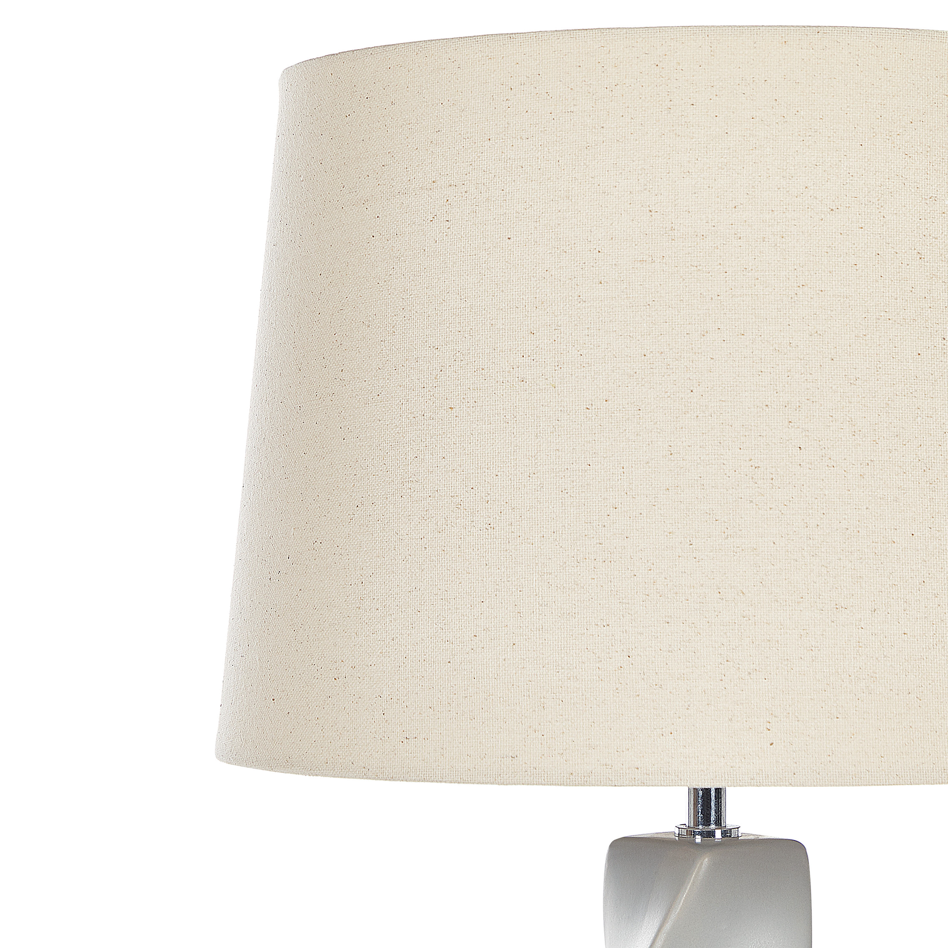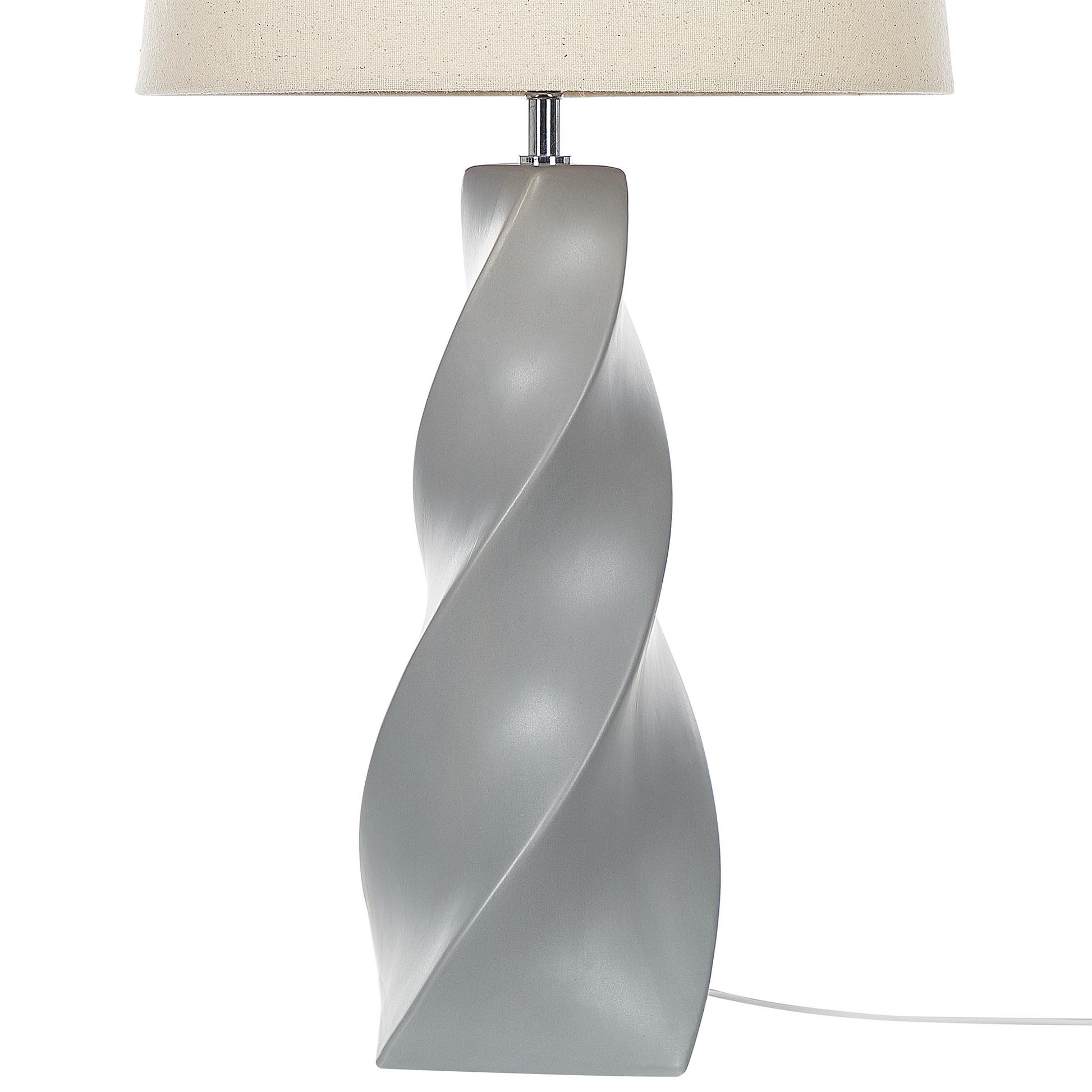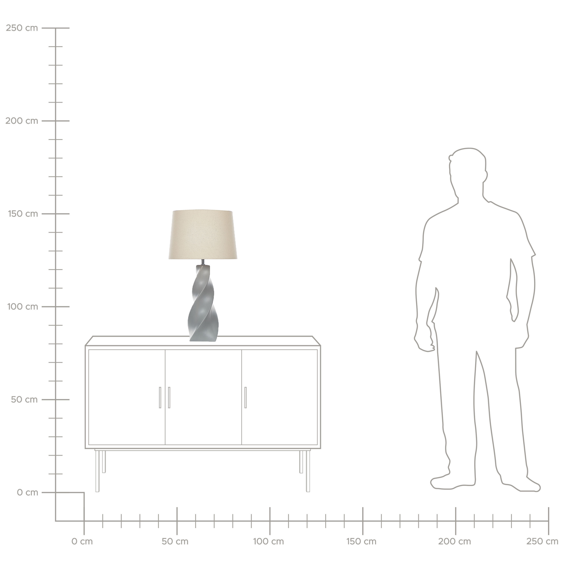 Diese Leuchte ist keine gewöhnliche Tischleuchte, sondern ein äusserst dekoratives Akzentstück, das jede Inneneinrichtung ergänzt. Der Sockel in Form eines Wirbels ist aus Keramik gefertigt und mit einem cremefarbenen Stoffschirm versehen, der für einen eleganten Look sorgt. Stellen Sie sie auf eine Kommode und bringen Sie eleganten Stil in jedes Schlafzimmer, Wohnzimmer oder jeden Flur. Material: Keramik. Zusätzliches Material: Baumwolle, Jute. Material Zusammensetzung: 65% Jute, 35% Baumwolle Gewicht: 3 Montage: Teilweise montiert Das Angebot beinhaltet: 1 x Tischleuchte, Leuchtmittel im Lieferumfang enthalten Höhe: 71 zusätzliche Information: Diese Leuchte ist geeignet für Leuchtmittel der Energieklassen A bis G auf einer Skala von A (sehr effizient) bis G (weniger effizient). Geeignet für: LED Leuchtmittel, Eco-Halogen Leuchtmittel, Energiesparleuchtmittel., Die Stromkabel dürfen nur von einem qualifizierten Elektriker angepasst werden., Da jedes Produkt handgefertigt wird, kann es zu kleineren Abweichungen in der Farbe und der äusseren Struktur kommen. Diese Abweichungen stellen keinen Qualitätsmangel dar, sondern sind eine warentypische Eigenschaft. Breite: 38 Tiefe: 38 Art: Tischleuchte Stil: Modern Allgemeine Farbe: Grau Schatten: Hellbeige Hauptmaterial: Keramik Fassung: 40 W IP Protection Code: IP 20