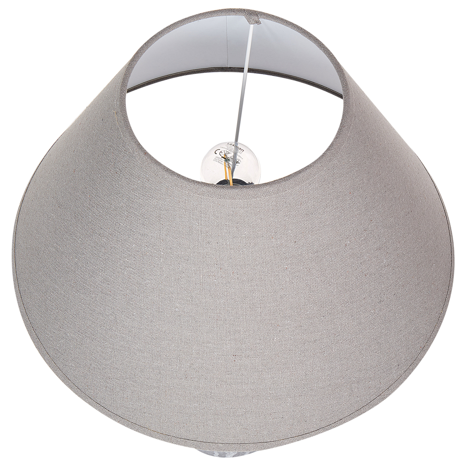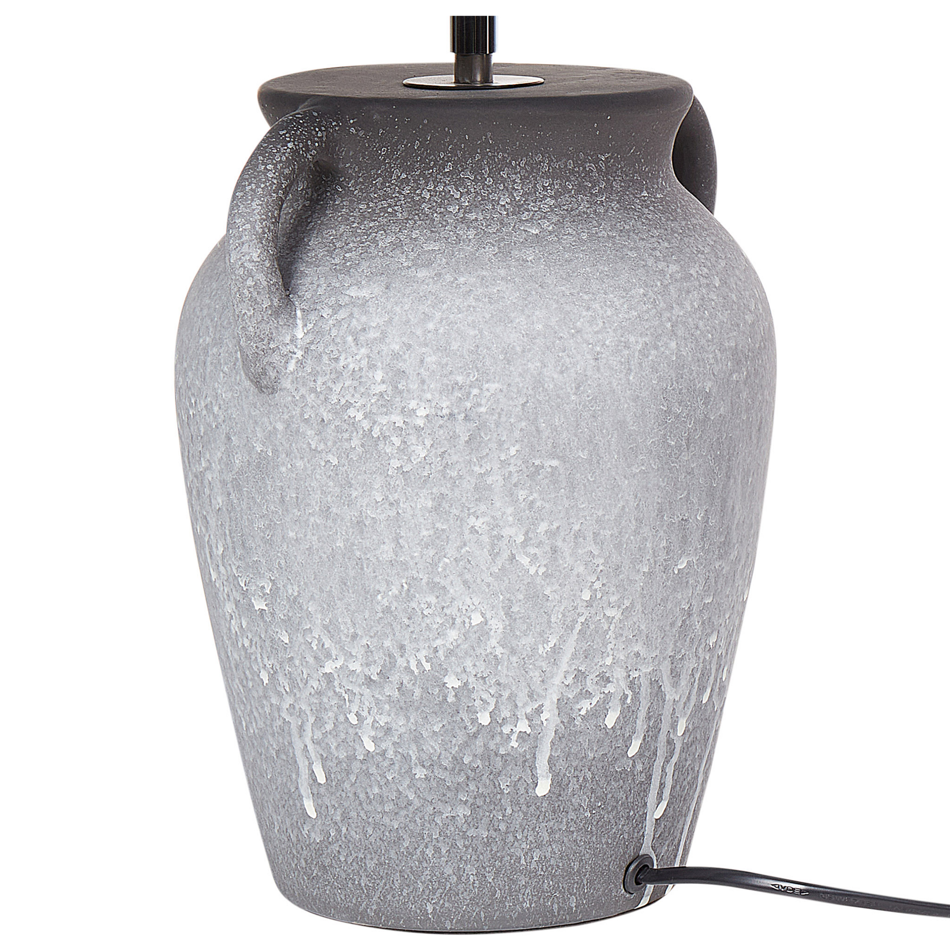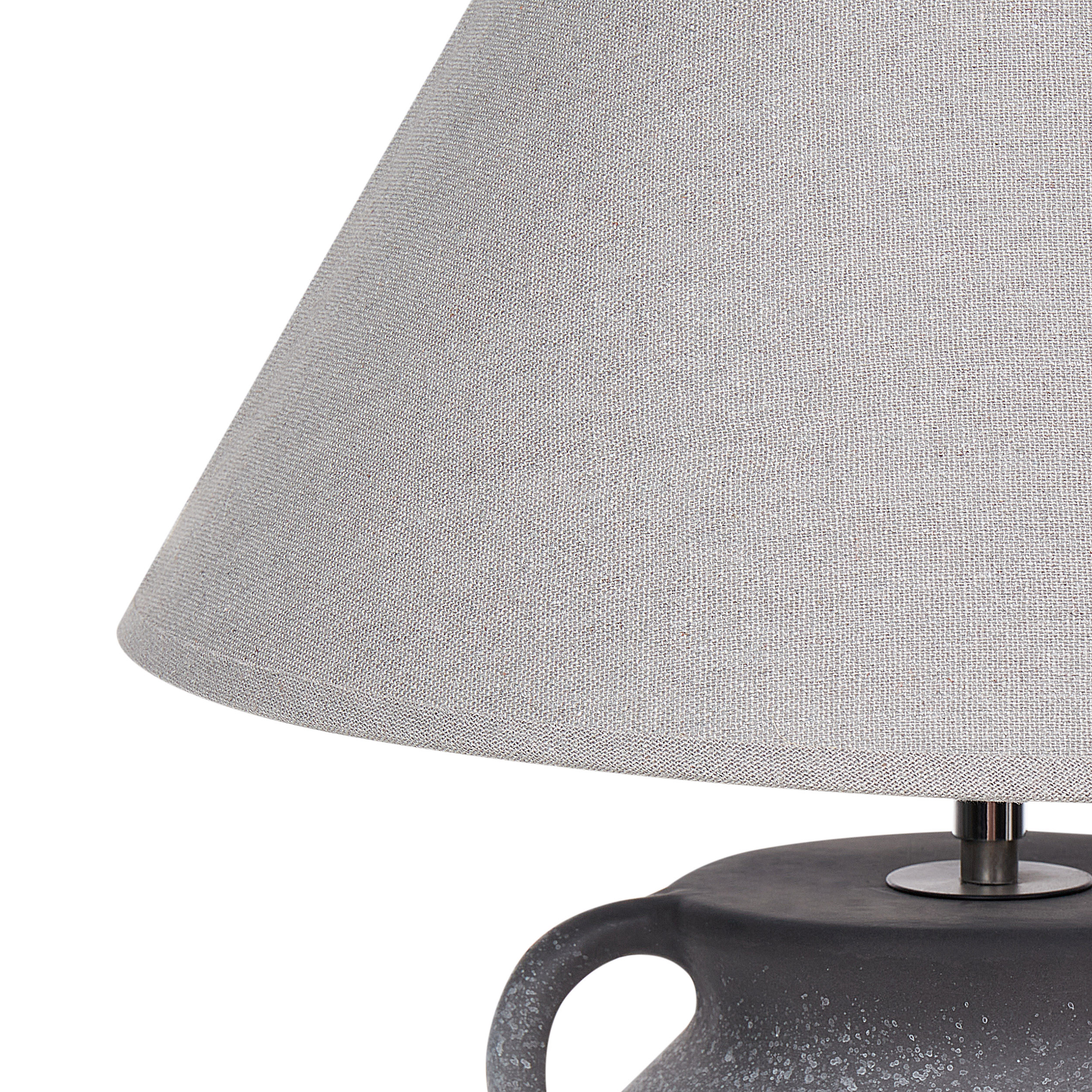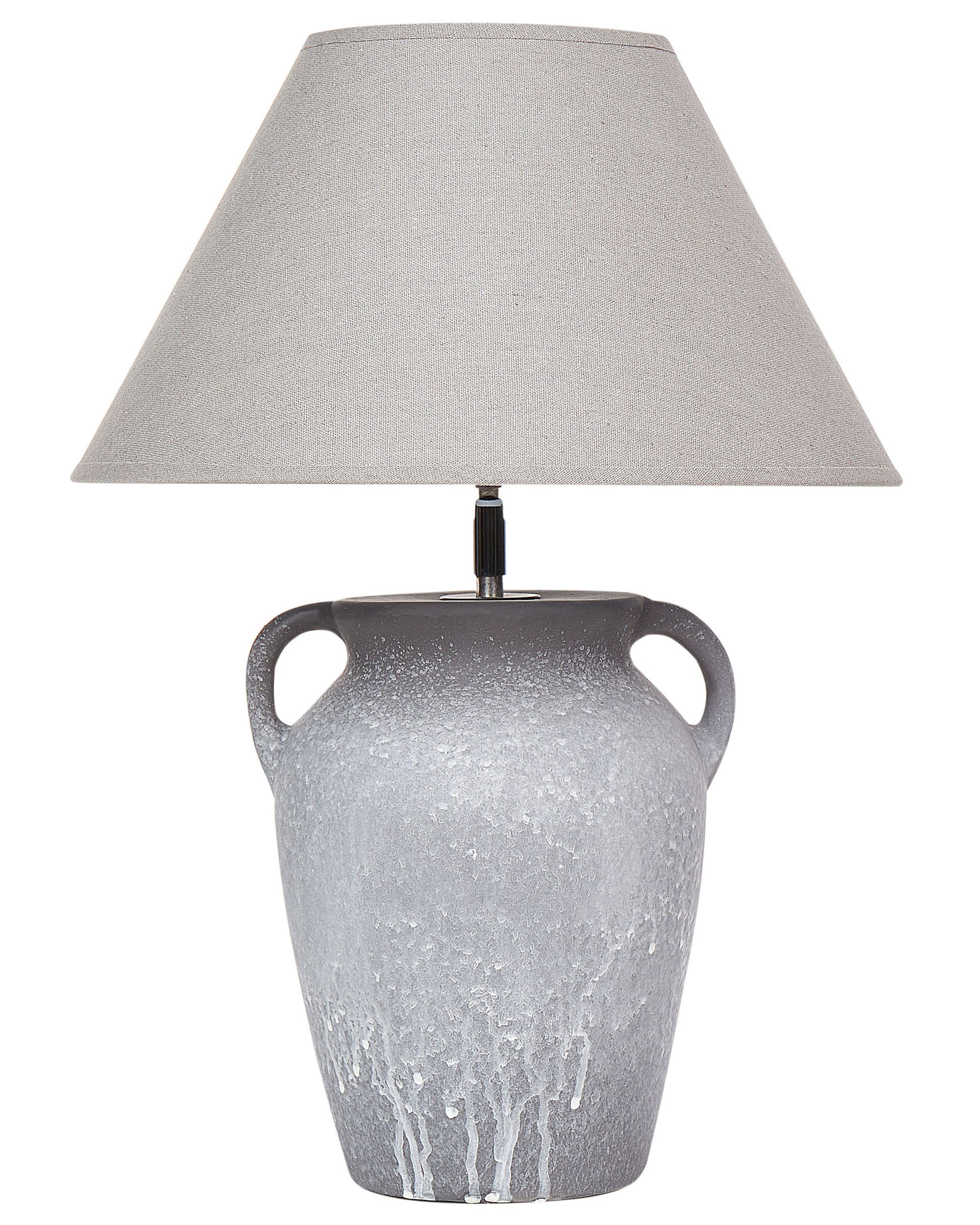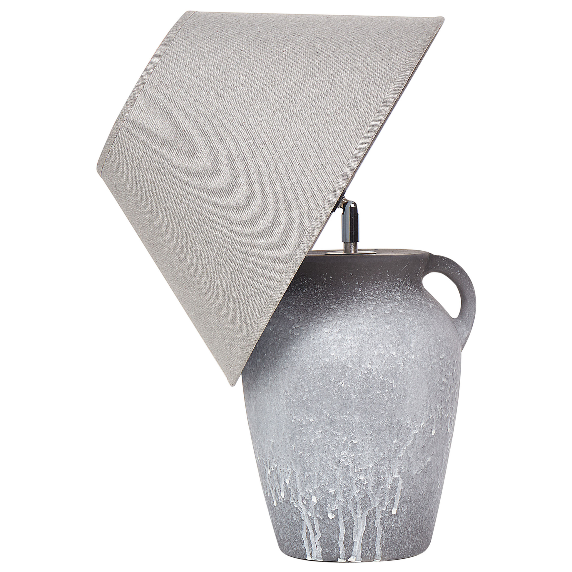 Mit dieser formschönen Tischleuchte tauchen Sie Ihre Räume nicht nur in einen gemütlichen Lichtschein, sondern peppen jede Tischfläche auf. Der langlebige Keramikfuss punktet mit einem einzigartigen Design und strahlt dabei eine zeitlose Eleganz aus. Der verstellbare Schirm bietet mehrere Optionen für jede Beleuchtungsvorliebe und fügt sich gekonnt in ein modernes Interieur ein. Zudem ist die Leuchte mit einem schwarzen, langen PVC-Kabel und einem praktischen Schalter versehen. So ist bei diesem Lampenmodell für noch mehr Benutzerfreude gesorgt.   Material: Keramik. Zusätzliches Material: Leinen.  Gewicht: 2 Montage: Teilweise montiert Das Angebot beinhaltet: 1 x Tischleuchte, Nicht im Lieferumfang enthalten: Leuchtmittel Höhe: 49 zusätzliche Information: Diese Leuchte ist geeignet für Leuchtmittel der Energieklassen A bis G auf einer Skala von A (sehr effizient) bis G (weniger effizient). Geeignet für: LED Leuchtmittel, Eco-Halogen Leuchtmittel, Energiesparleuchtmittel. Breite: 35 Tiefe: 35 Art: Tischleuchte Stil: Modern Allgemeine Farbe: Grau Hauptmaterial: Keramik Fassung: 45 W