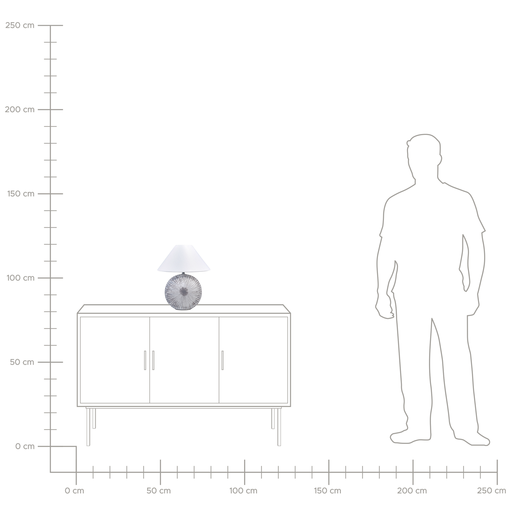Sorgen Sie für einen klassischen Touch in jedem Wohnbereich mit dieser schönen Tischleuchte. Ausgestattet mit einem stabilen Keramiksockel von höchster Qualität, ist sie äusserst pflegeleicht. Der Leinenschirm verbreitet ein gleichmässiges Licht im Raum und passt sowohl zu modernen als auch zu traditionellen Einrichtungen.  Material: Keramik. Zusätzliches Material: Baumwolle.  Material Zusammensetzung: 65% Leinen, 35% Baumwolle Gewicht: 1.2 Montage: Teilweise montiert Das Angebot beinhaltet: 1 x Tischleuchte, Nicht im Lieferumfang enthalten: Leuchtmittel Höhe: 38 zusätzliche Information: Die Stromkabel dürfen nur von einem qualifizierten Elektriker angepasst werden. Breite: 30 Tiefe: 30 Art: Tischleuchte Stil: Klassisch Allgemeine Farbe: Grau Hauptmaterial: Keramik Fassung: 40 W IP Protection Code: IP 20