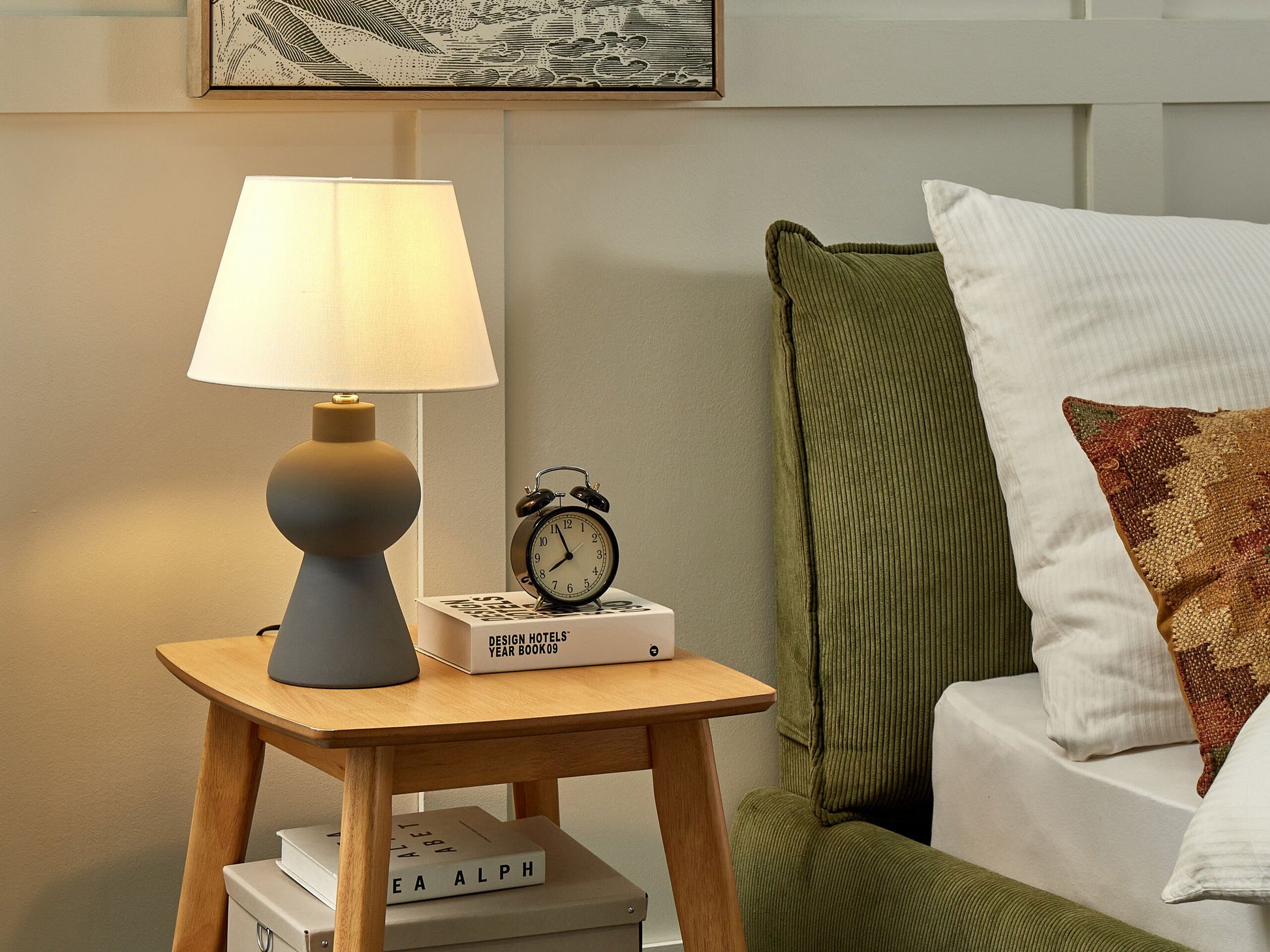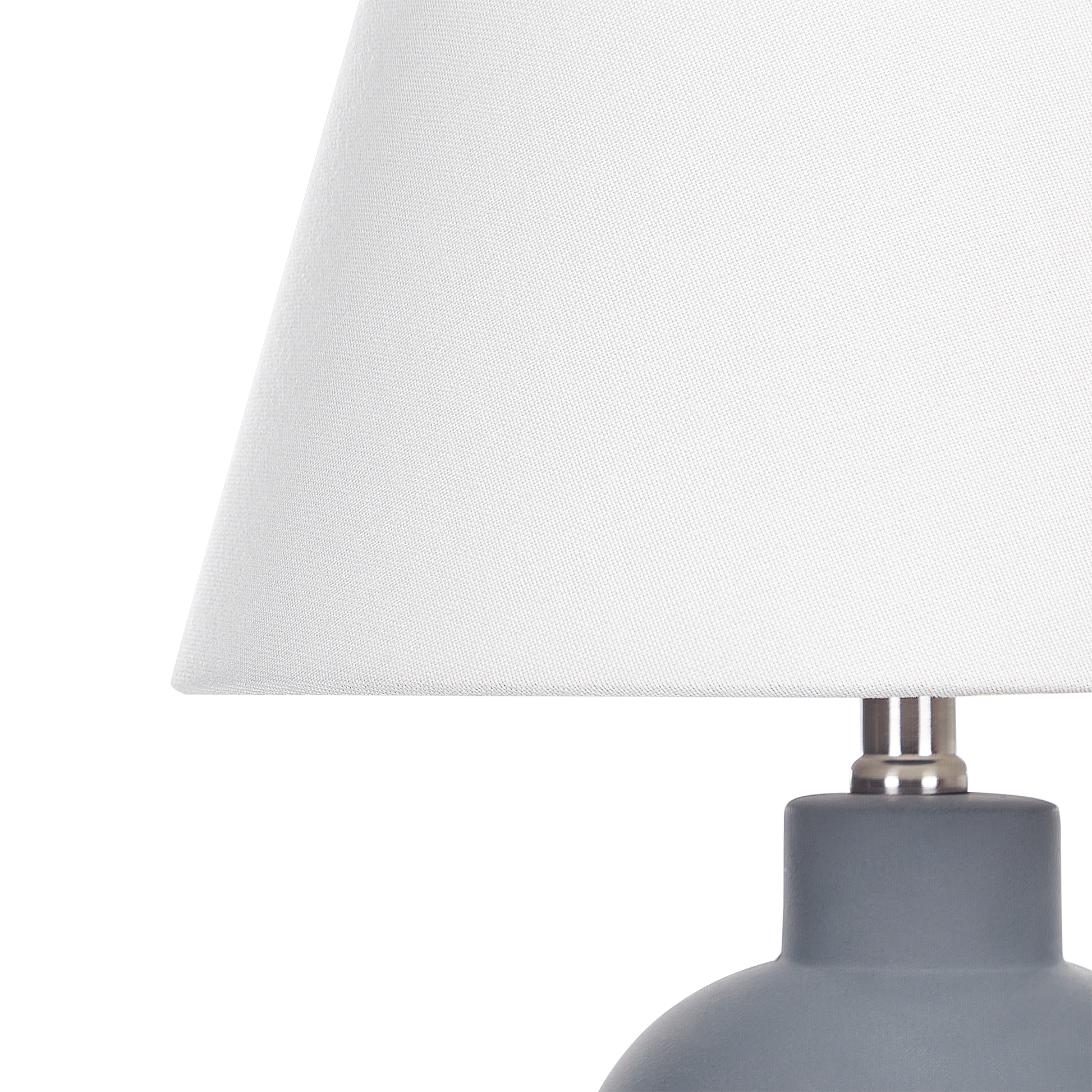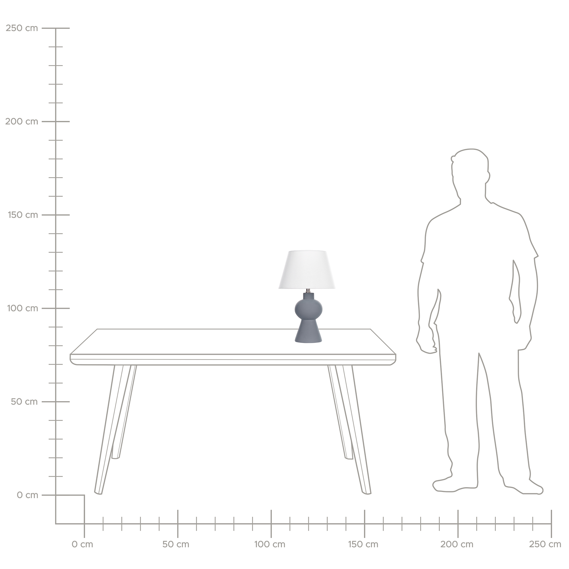 Beschreibung: Setzen Sie einen dekorativen Akzent auf Ihren Ablageflächen und verschönern Sie sie mit dieser Nachtlampe. Ihr Lampenfuss besteht aus langlebiger, pflegeleichter Keramik und ist in einer eleganten Vasenform gehalten. Der weisse Stoffschirm der Leuchte ist aus hochwertigen Leinen gefertigt und passt wunderbar zum grauen Keramikfuss. Dank des formschönen Schirmes gibt sie ein warmes, einladendes Licht ab und ist damit die perfekte Ergänzung für jeden Wohnraum. Zudem verfügt die Keramiklampe über ein langes, schwarzes Kabel und einen benutzerfreundlichen Schalter. Material: Keramik. Zusätzliches Material: Leinen. Material Zusammensetzung: 100% Leinen Gewicht: 2 Montage: Teilweise montiert Das Angebot beinhaltet: 1 x Tischleuchte, Nicht im Lieferumfang enthalten: Leuchtmittel Höhe: 48 zusätzliche Information: Diese Leuchte ist geeignet für Leuchtmittel der Energieklassen A bis G auf einer Skala von A (sehr effizient) bis G (weniger effizient). Geeignet für: LED Leuchtmittel, Eco-Halogen Leuchtmittel, Energiesparleuchtmittel., Die Stromkabel dürfen nur von einem qualifizierten Elektriker angepasst werden., Bitte beachten Sie, dass der Farbton leicht von dem im Bild dargestellten abweichen kann. Diese Abweichungen stellen keine zur Reklamation berechtigten Fehler dar. Breite: 30 Tiefe: 30 Art: Tischleuchte Stil: Skandinavisch Allgemeine Farbe: Grau Hauptmaterial: Keramik Fassung: Max. 60 W IP Protection Code: IP 20