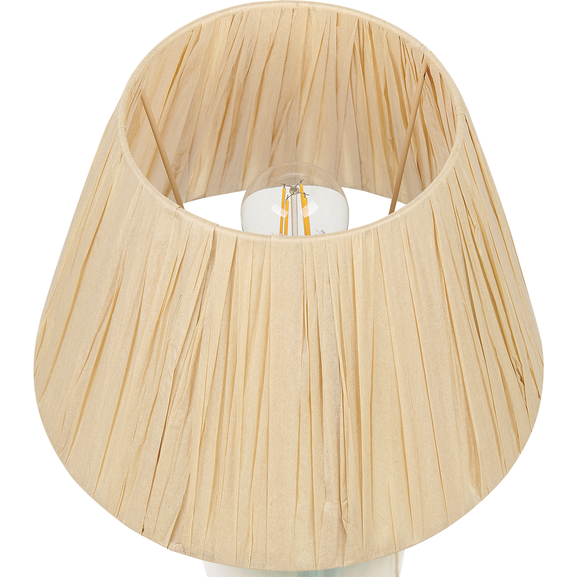 Mit dieser fabelhaften Leuchte lassen Sie den Boho-Look bei sich Zuhause einziehen und sorgen dabei für Gemütlichkeit in Ihren Wohnräumen. Der stabile Lampenfuss besteht aus pflegeleichter Keramik und besticht sowohl mit seiner angesagten Vasenform als auch mit einem prächtigen Farbverlauf in einem hellen Grün- und Weisston. Der Papierschirm ist in einem hellen Naturton gehalten und wirft ein sanftes Licht, das Ihren Raum in ein Reich heiterer Raffinesse verwandelt. Dank langem Kabel mit Schalter kann die Nachttischlampe fast überall angeschlossen werden. Um die natürliche Schönheit des Modells zu unterstreichen, ist das Kabel zusätzlich mit Nutzhanf umflochten. Material: Keramik. Zusätzliches Material: Papier, Eisen. Gewicht: 1.8 Montage: Benötigt keine Montage Das Angebot beinhaltet: 1 x Tischleuchte, Nicht im Lieferumfang enthalten: Leuchtmittel Höhe: 53 zusätzliche Information: Diese Leuchte ist geeignet für Leuchtmittel der Energieklassen A bis G auf einer Skala von A (sehr effizient) bis G (weniger effizient). Geeignet für: LED Leuchtmittel, Eco-Halogen Leuchtmittel, Energiesparleuchtmittel., Die Stromkabel dürfen nur von einem qualifizierten Elektriker angepasst werden., Hinweis! Beschädigungsgefahr! Bitte verwenden Sie keine Messer oder andere spitze oder scharfe Gegenstände, um die Verpackung zu öffnen, da das Produkt sonst beschädigt werden könnte. Breite: 36 Tiefe: 36 Art: Tischleuchte Stil: Boho Allgemeine Farbe: Grün Hauptmaterial: Keramik Fassung: 40 W IP Protection Code: IP 20