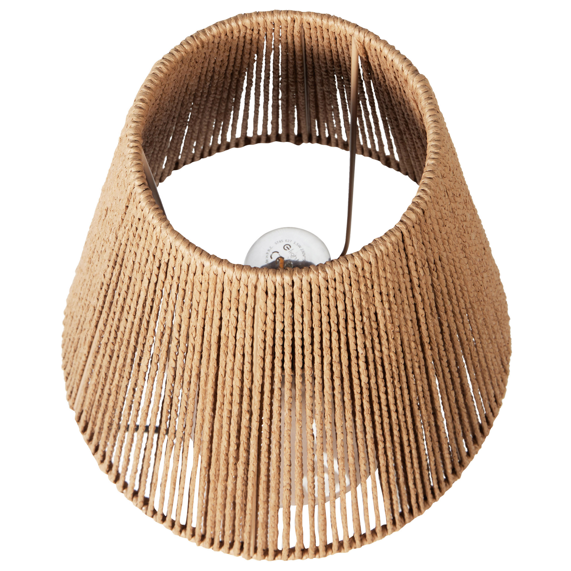 Diese formschöne Nachttischlampe dient zu jeder Stunde als echter Boho-Hingucker und das auch in jeder Wohnfläche. Dank langem, schwarzem Kabel mit Schalter lässt sich die Leuchte fast auf jeder Tischfläche platzieren und anschliessen. Der Lampenschirm bezaubert mit seiner stilvollen Empire-Form und besteht aus einem langlebigen Papierschnur-Geflecht. Der taupefarbene Keramik-Standfuss schafft ein harmonisches Design und besticht sowohl mit seiner einzigartigen Oberfläche als auch mit seiner ansprechenden Vasenform. Material: Keramik. Zusätzliches Material: Papierschnur. Gewicht: 2 Montage: Benötigt keine Montage Das Angebot beinhaltet: 1 x Tischleuchte, Nicht im Lieferumfang enthalten: Leuchtmittel Höhe: 51 zusätzliche Information: Diese Leuchte ist geeignet für Leuchtmittel der Energieklassen A bis G auf einer Skala von A (sehr effizient) bis G (weniger effizient). Geeignet für: LED Leuchtmittel, Eco-Halogen Leuchtmittel, Energiesparleuchtmittel., Hinweis! Beschädigungsgefahr! Bitte verwenden Sie keine Messer oder andere spitze oder scharfe Gegenstände, um die Verpackung zu öffnen, da das Produkt sonst beschädigt werden könnte. Breite: 24 Tiefe: 24 Art: Tischleuchte Stil: Boho Allgemeine Farbe: Beige Schatten: Taupe Hauptmaterial: Keramik Fassung: 40 W