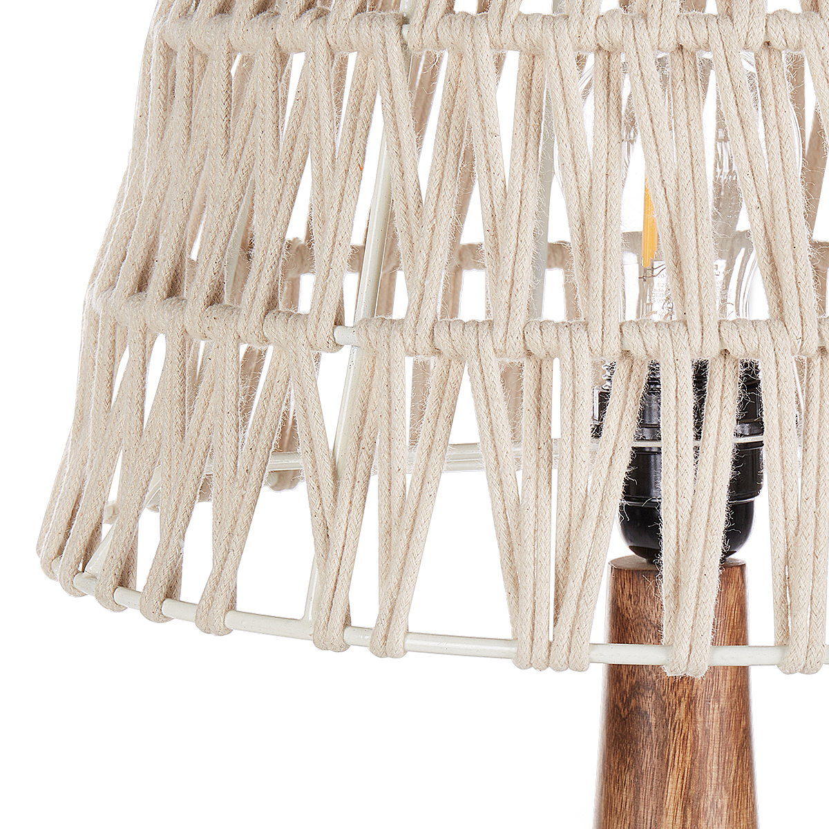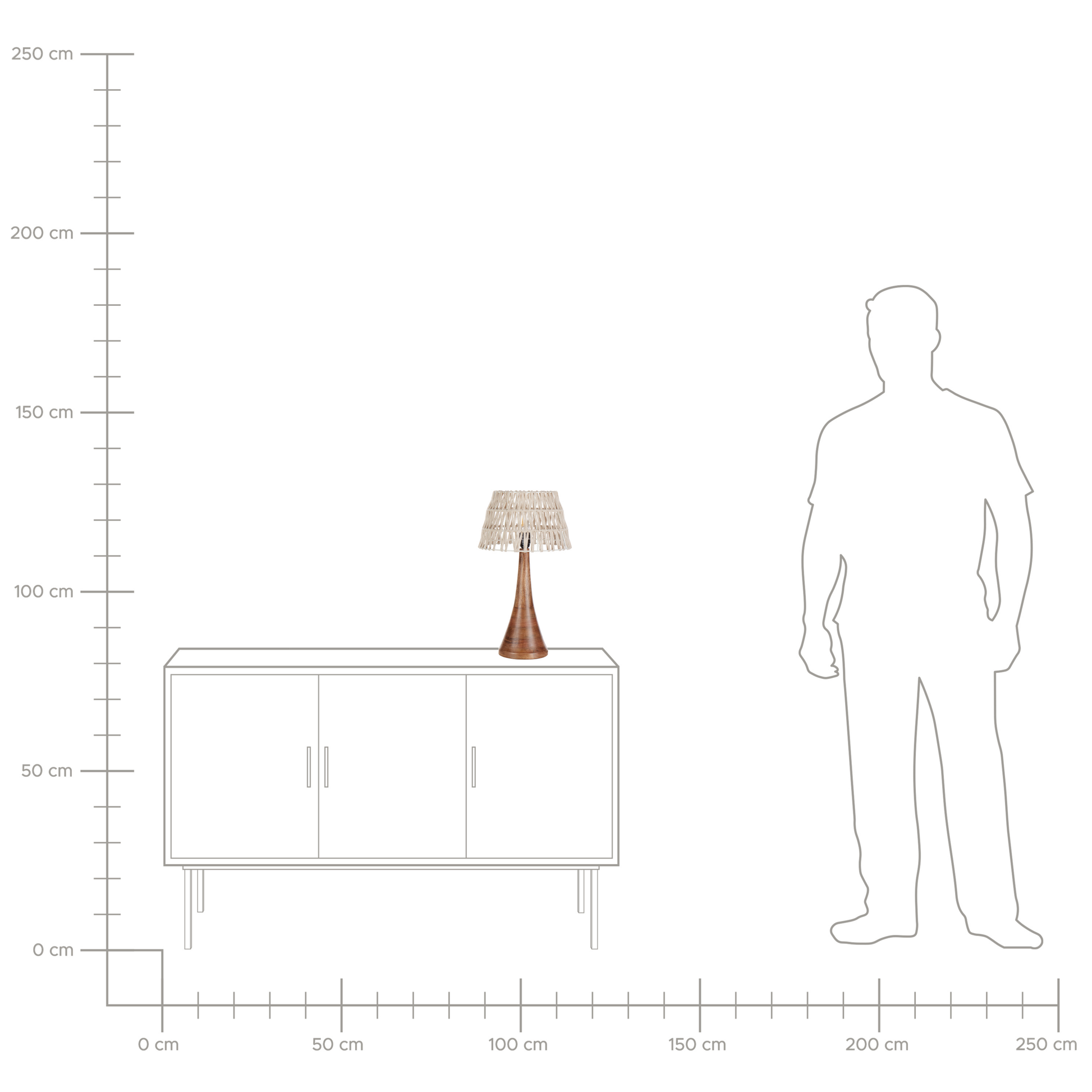 Verleihen Sie Ihrem Raum mit dieser stilvollen Tischleuchte einen modernen Touch. Der markante Sockel aus Mangoholz in Kombination mit dem handgefertigten Baumwollschirm macht sie zu einem echten Blickfang in jeder modernen Umgebung. Dank ihres Designs strahlt sie ein angenehmes, warmes Licht aus, das Ihren Schreibtisch oder Nachttisch erhellt. Material: Baumwolle. Zusätzliches Material: Eisen, Mango Holz. Material Zusammensetzung: 100% Baumwolle Gewicht: 1.4 Montage: Teilweise montiert Holzart: Mangifera indica Holzursprung: Indien Das Angebot beinhaltet: 1 x Tischleuchte, Nicht im Lieferumfang enthalten: Leuchtmittel Höhe: 47 zusätzliche Information: Die Stromkabel dürfen nur von einem qualifizierten Elektriker angepasst werden. Breite: 22 Tiefe: 22 Art: Tischleuchte Stil: Boho Allgemeine Farbe: Braun Hauptmaterial: Baumwolle Fassung: 40 W IP Protection Code: IP 20