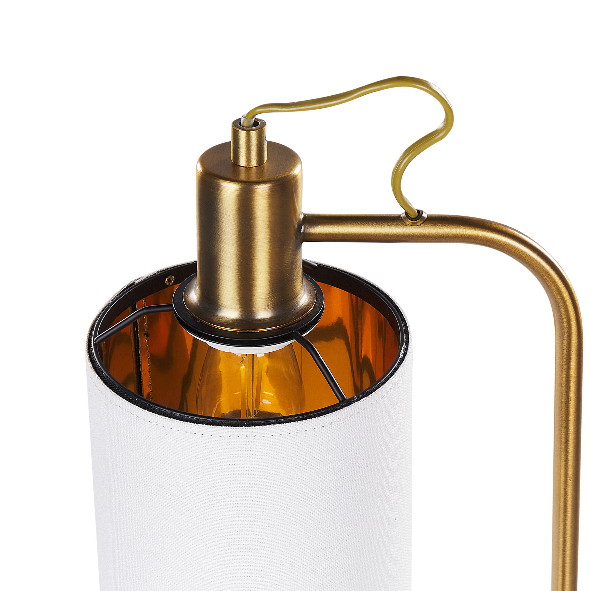 Werten Sie Ihren Wohnraum mit dieser glamourösen Tischlampe auf - eine harmonische Mischung aus modernem Design und zeitloser Eleganz. Der kupferfarbene Metallsockel verleiht jedem Raum einen Hauch vom Industrial-Chic. Der weisse Schirm aus natürlichem Leinen erzeugt mit seinen sanften Linien ein warmes, angenehmes Licht. Beleuchten Sie Ihr Zuhause mit Klasse und Stil.  Material: Eisen. Zusätzliches Material: Leinen.  Material Zusammensetzung: 100% Leinen Gewicht: 1 Montage: Teilweise montiert Das Angebot beinhaltet: 1 x Tischleuchte, Nicht im Lieferumfang enthalten: Leuchtmittel Höhe: 46 zusätzliche Information: Diese Leuchte ist geeignet für Leuchtmittel der Energieklassen A bis G auf einer Skala von A (sehr effizient) bis G (weniger effizient). Geeignet für: LED Leuchtmittel, Eco-Halogen Leuchtmittel, Energiesparleuchtmittel., Die Stromkabel dürfen nur von einem qualifizierten Elektriker angepasst werden. Breite: 16 Tiefe: 21 Art: Tischleuchte Stil: Glamourös Allgemeine Farbe: Kupfer Hauptmaterial: Eisen Fassung: 25 W IP Protection Code: IP 20