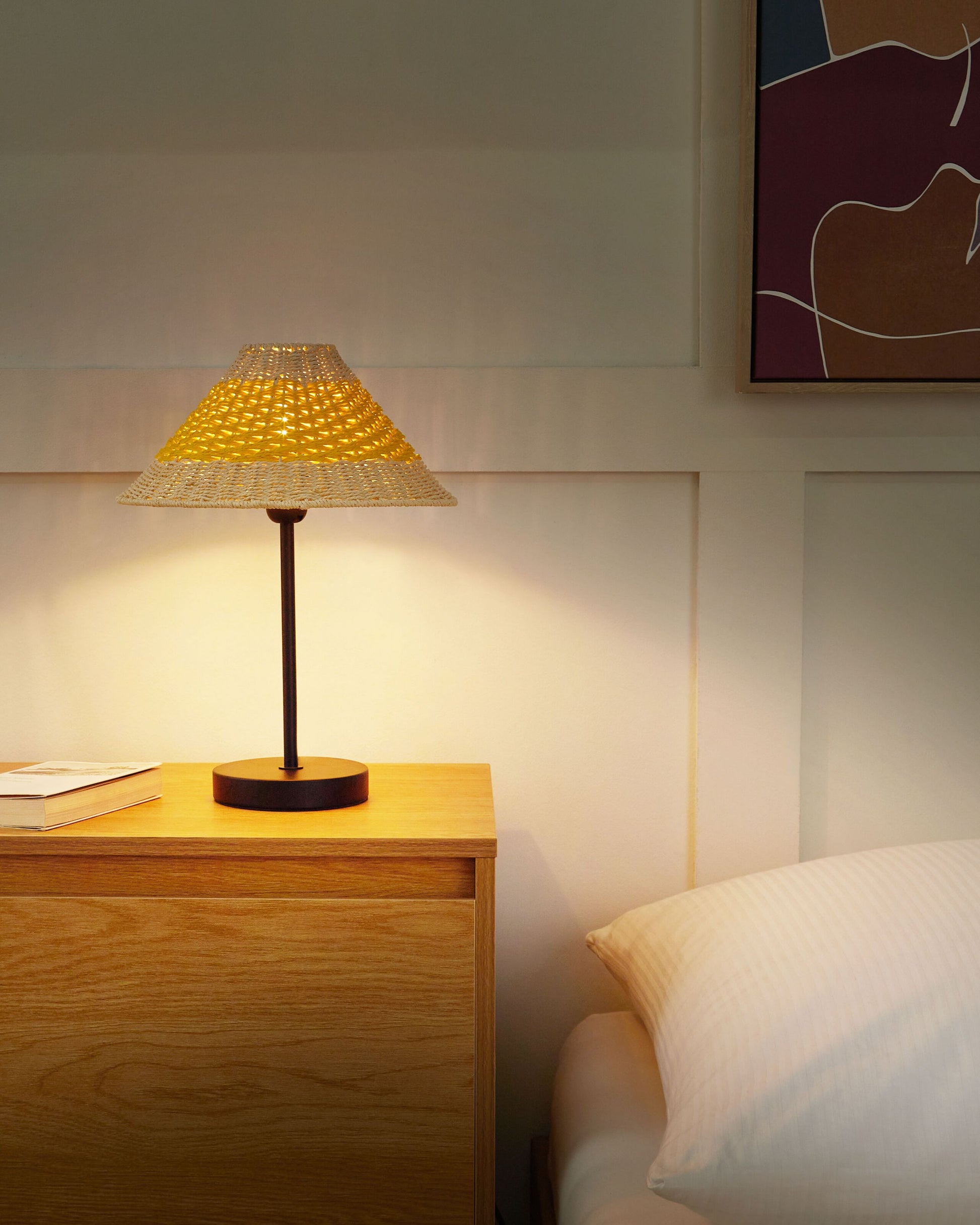 Diese kegelförmige Nachttischlampe ist ein echter Boho-Hingucker in jedem Wohnraum. Dank langem, schwarzem Kabel mit Schalter lässt sich die Leuchte fast auf jeder Tischfläche platzieren und anschliessen. Der Lampenschirm besteht aus einem langlebigen Papierschnur-Geflecht. Zudem bezaubert der handgefertigte Papierschirm mit seiner stilvollen Empire-Form und seinem zweifarbigen Streifenmuster. Der schwarze Metall-Standfuss schafft ein harmonisches Design und besticht mit seiner pflegeleichten Oberfläche. Material: Papierschnur. Zusätzliches Material: Eisen. Gewicht: 1 Montage: Teilweise montiert Das Angebot beinhaltet: 1 x Tischleuchte, Nicht im Lieferumfang enthalten: Leuchtmittel Höhe: 40 zusätzliche Information: Diese Leuchte ist geeignet für Leuchtmittel der Energieklassen A bis G auf einer Skala von A (sehr effizient) bis G (weniger effizient). Geeignet für: LED Leuchtmittel, Eco-Halogen Leuchtmittel, Energiesparleuchtmittel., Hinweis! Beschädigungsgefahr! Bitte verwenden Sie keine Messer oder andere spitze oder scharfe Gegenstände, um die Verpackung zu öffnen, da das Produkt sonst beschädigt werden könnte. Breite: 30 Tiefe: 30 Art: Tischleuchte Stil: Boho Allgemeine Farbe: Beige Hauptmaterial: Papierschnur Fassung: 40 W