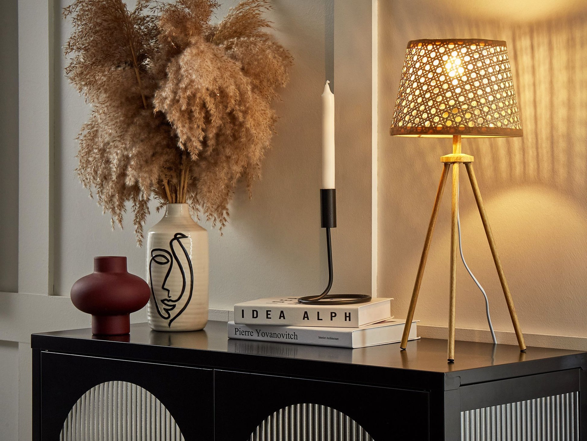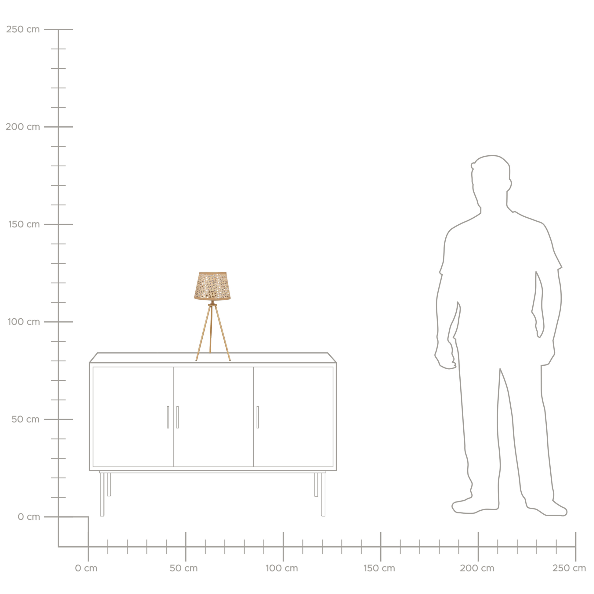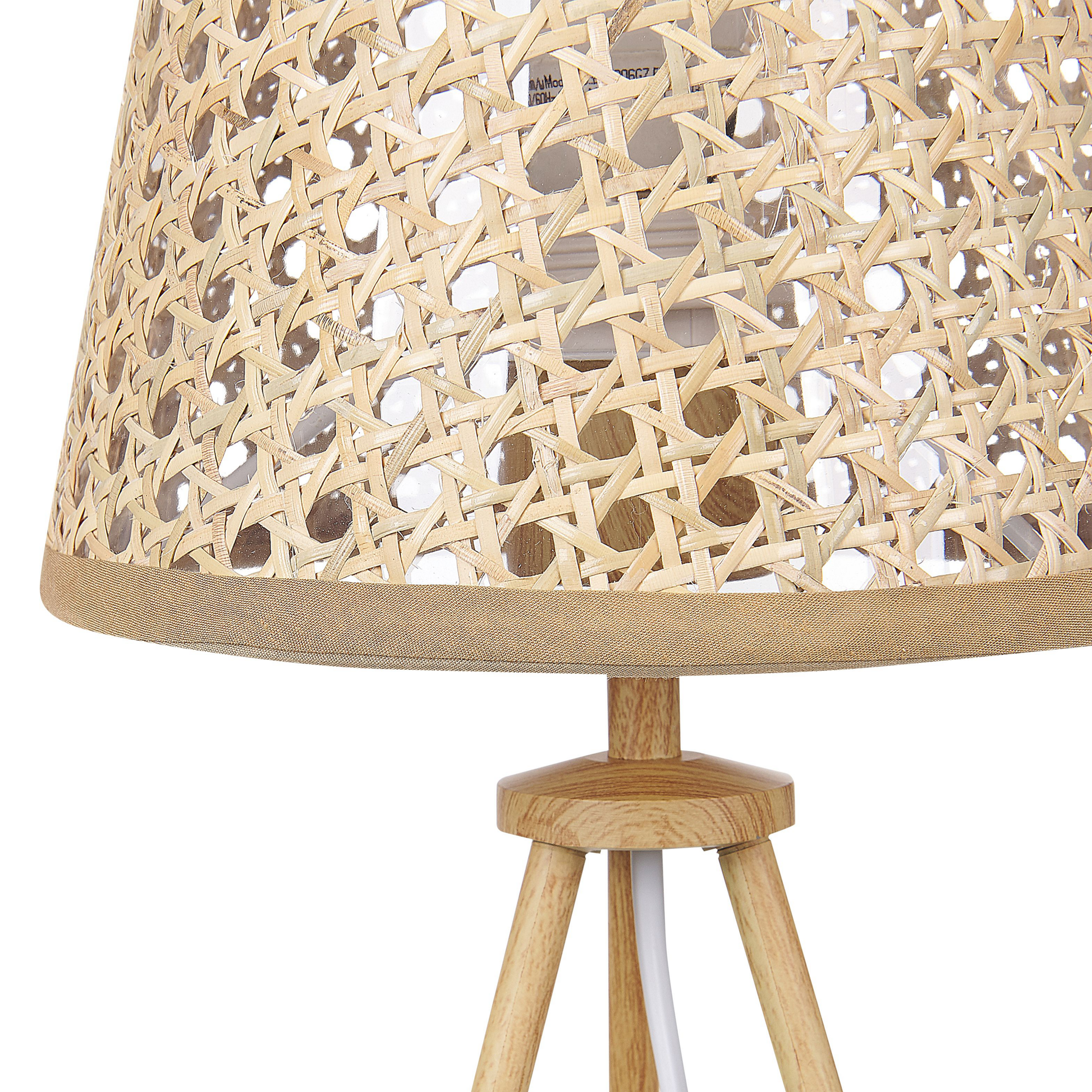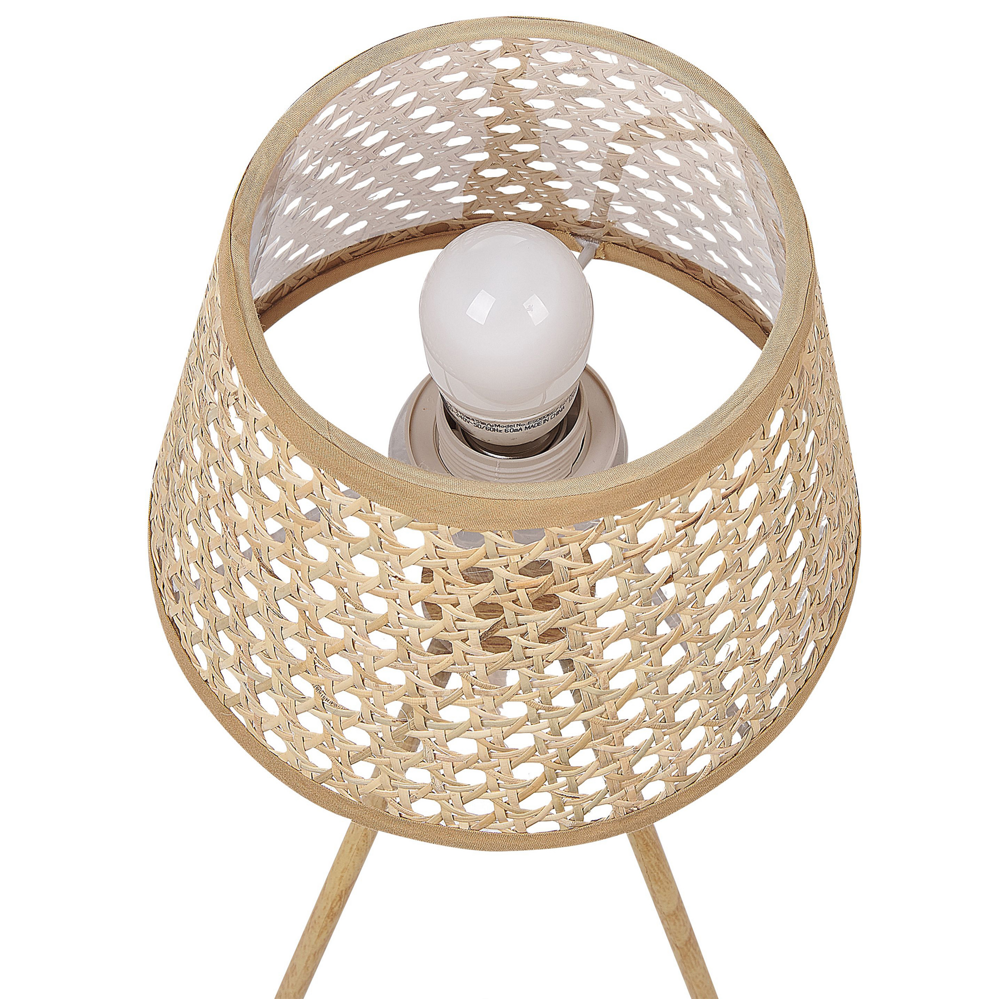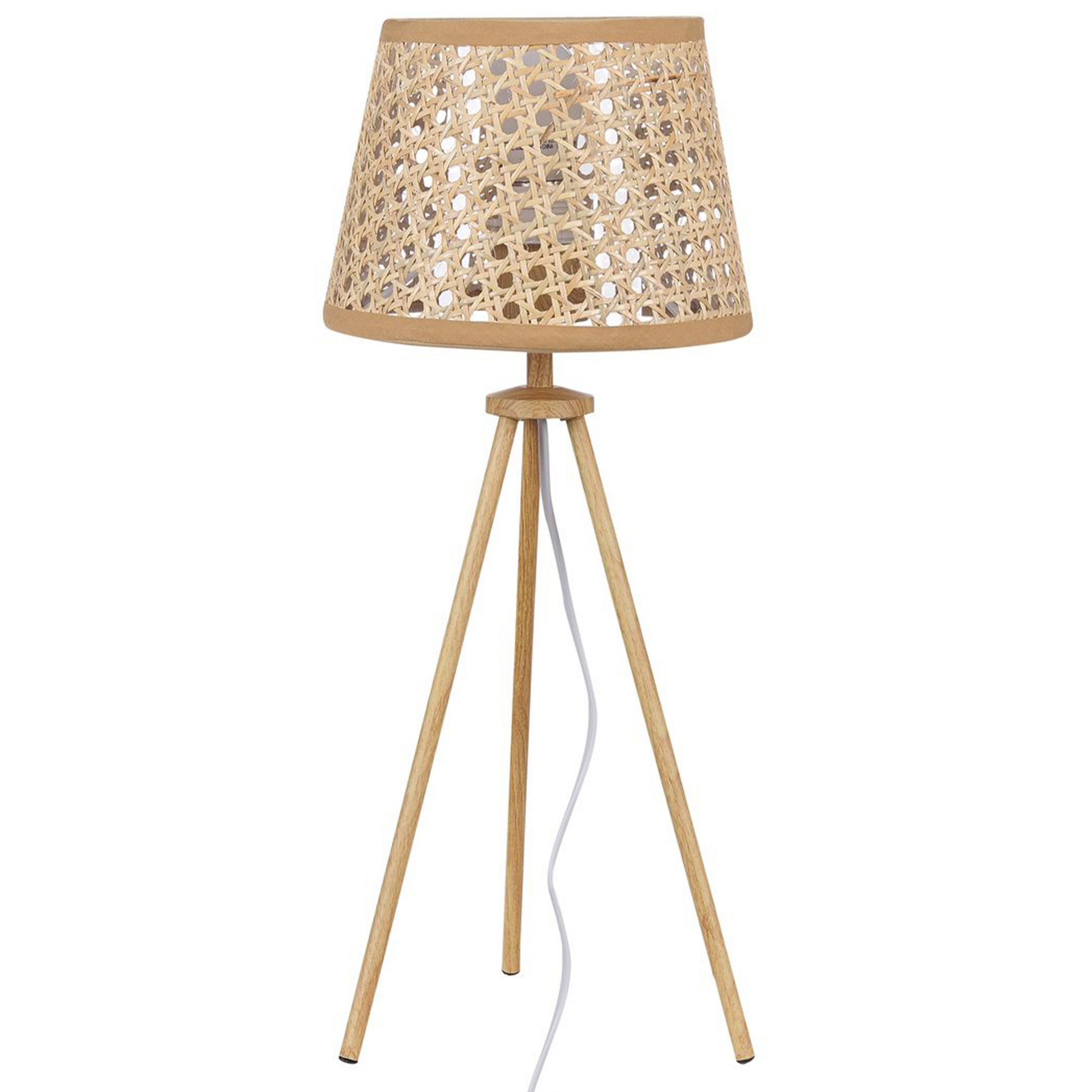 Dekorieren Sie Ihr Interieur mit einer Boho-inspirierten Tischlampe. Das Produkt hat einen Lampenschirm aus Rattan, der ein angenehmes, diffuses und stimmungsvolles Licht spendet. Der klassische Dreibeinfuss sorgt für Stabilität. Die Lampe passt gut zu verschiedenen Einrichtungsstilen.   Material: Rattan. Zusätzliches Material: Kunststoff, Metall.  Gewicht: 0.5 Montage: Nicht montiert Holzart: Calamus Holzursprung: China Das Angebot beinhaltet: 1 x Tischleuchte, Nicht im Lieferumfang enthalten: Leuchtmittel Höhe: 46 zusätzliche Information: Diese Leuchte ist geeignet für Leuchtmittel der Energieklassen A bis G auf einer Skala von A (sehr effizient) bis G (weniger effizient). Geeignet für: LED Leuchtmittel, Eco-Halogen Leuchtmittel, Energiesparleuchtmittel., Die Stromkabel dürfen nur von einem qualifizierten Elektriker angepasst werden., Hinweis! Beschädigungsgefahr! Bitte verwenden Sie keine Messer oder andere spitze oder scharfe Gegenstände, um die Verpackung zu öffnen, da das Produkt sonst beschädigt werden könnte. Breite: 20 Tiefe: 20 Art: Tischleuchte Stil: Boho Allgemeine Farbe: Naturfarben Hauptmaterial: Rattan Fassung: Max. 60 W IP Protection Code: IP 20