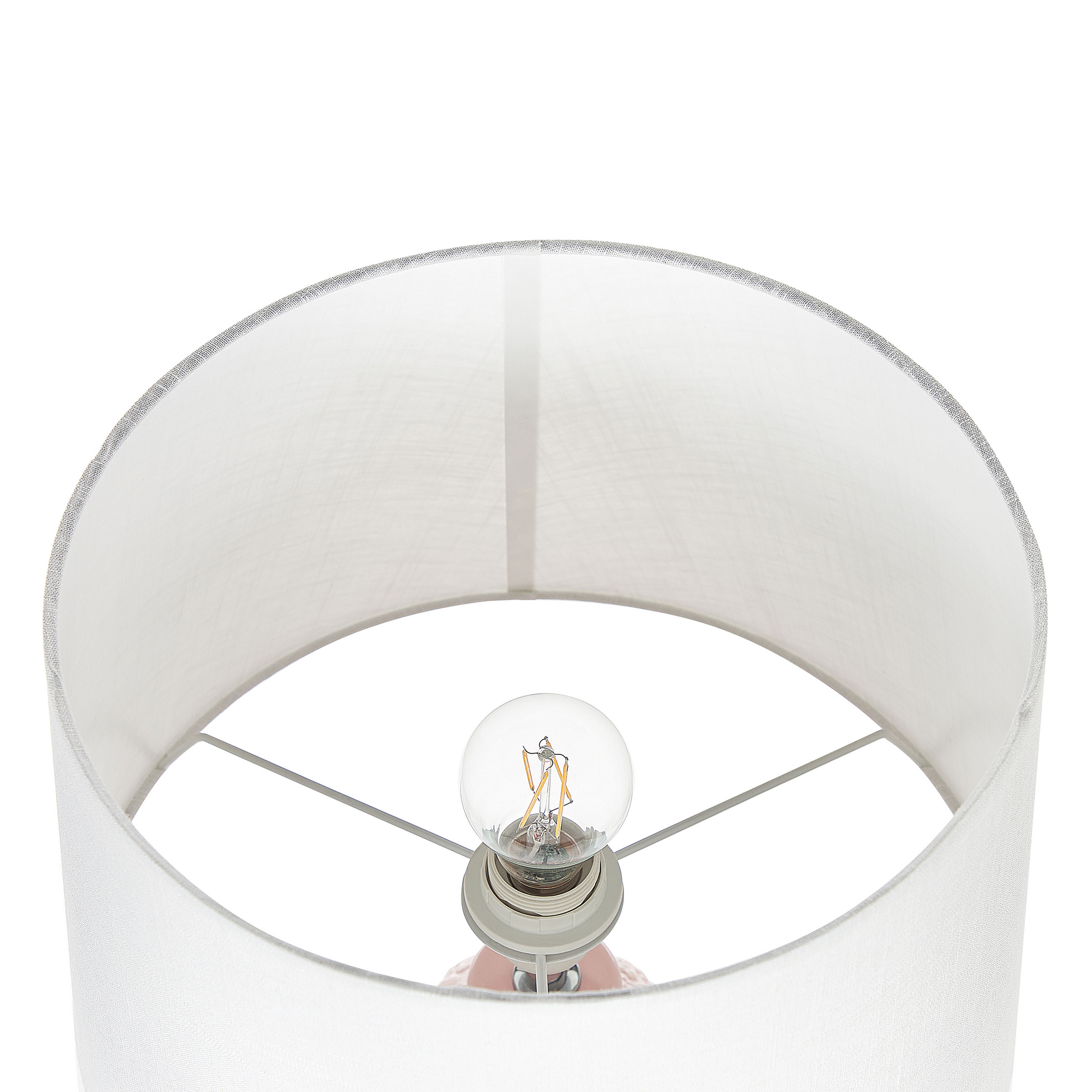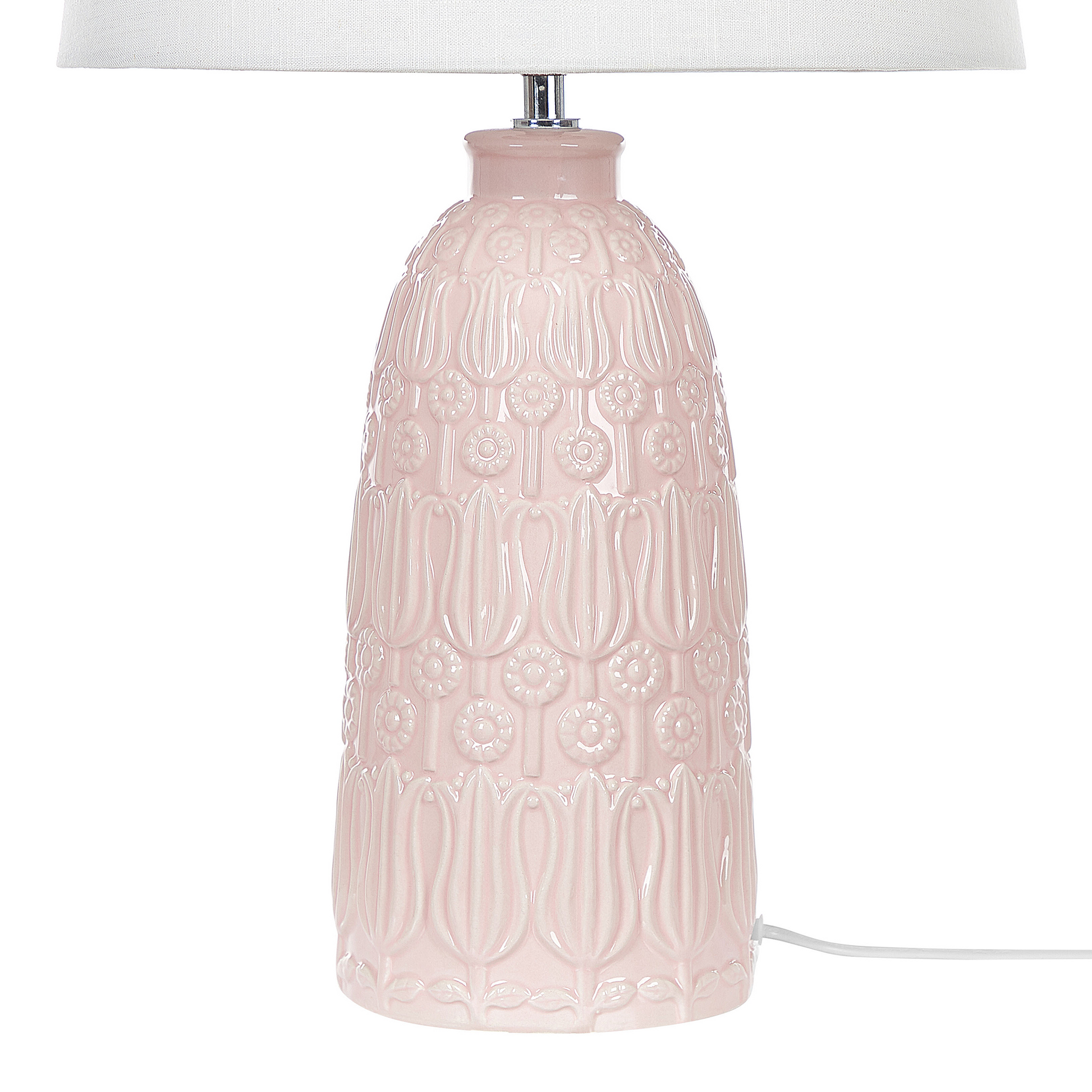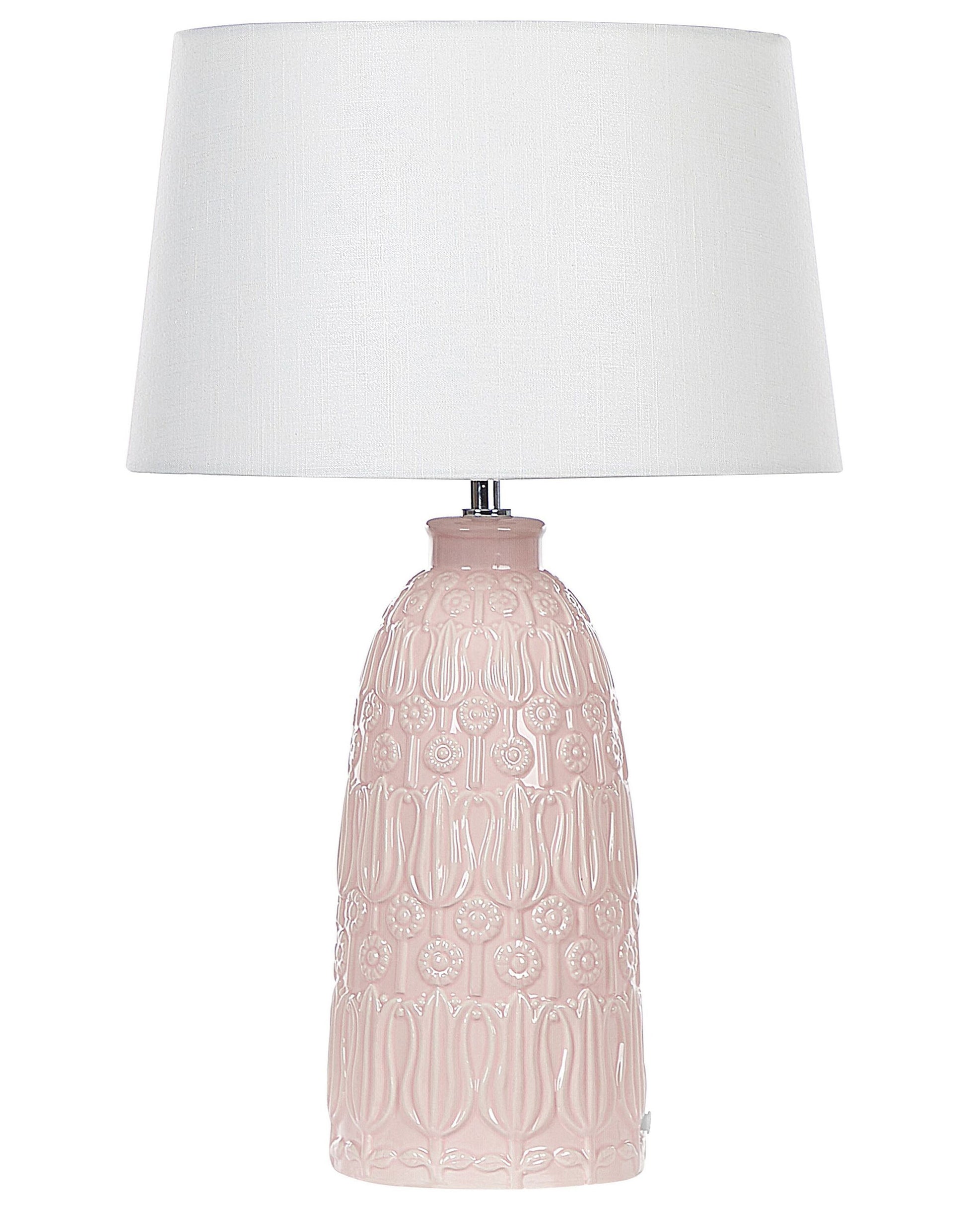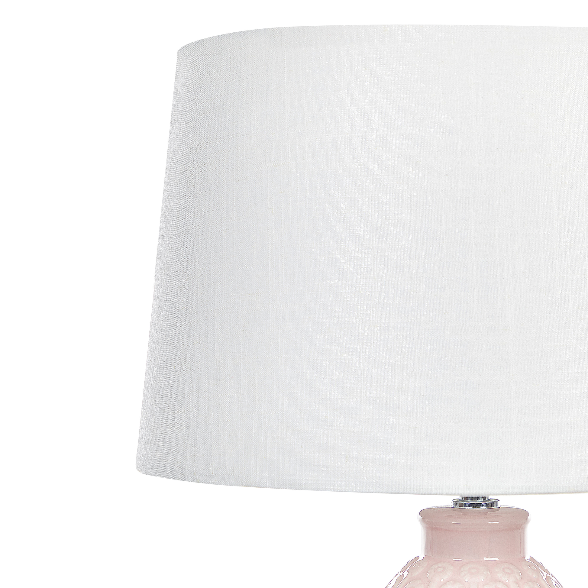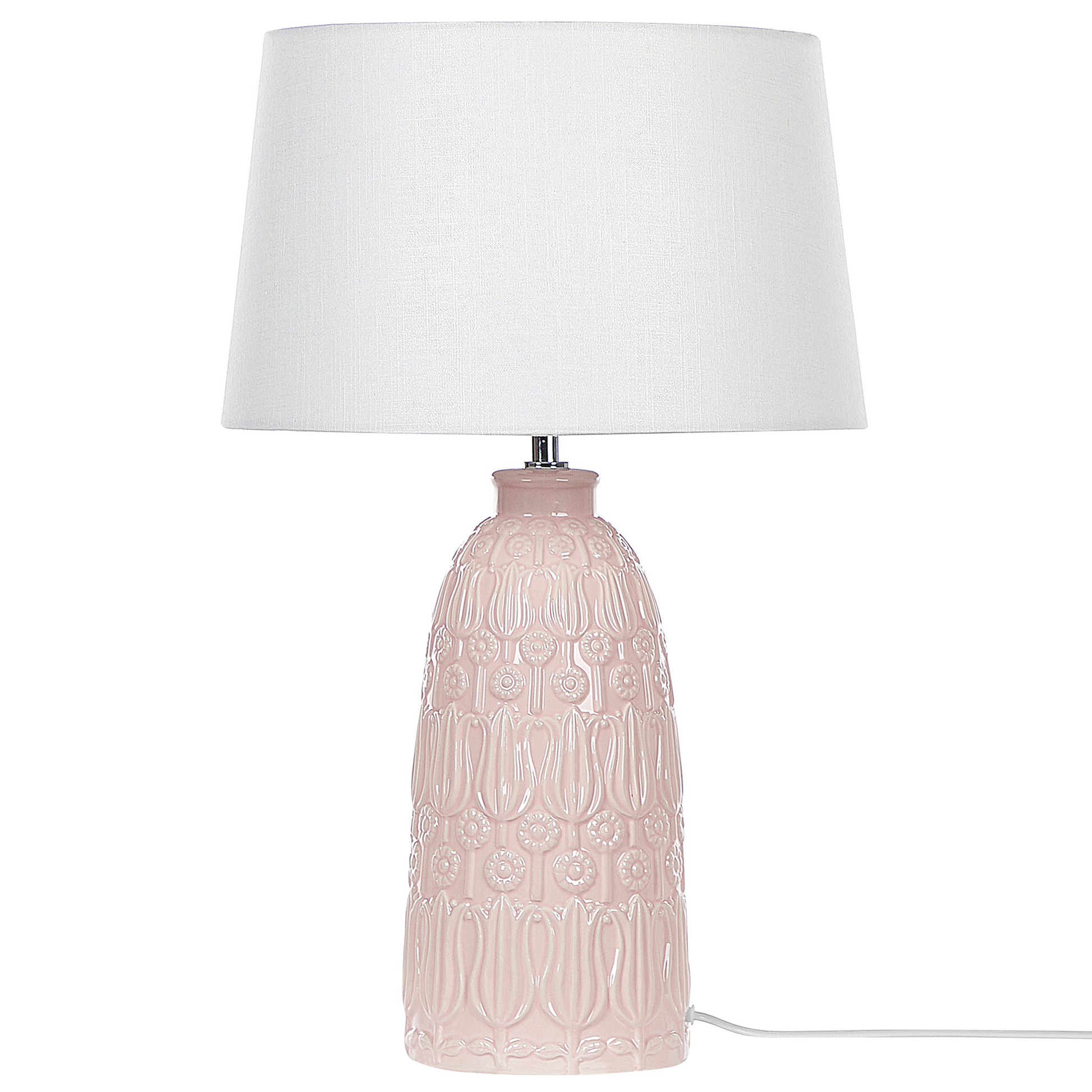 Bringen Sie mit dieser dekorativen Dekolampe einen frischen Farbakzent in Ihr Zuhause. Der Sockel ist aus Keramik gefertigt, was ihn langlebig und pflegeleicht macht, und ist mit schönen floralen Verzierungen versehen. Die Kombination aus dem rosafarbenen Fuss und dem weissen, handgefertigten Lampenschirm aus Stoff macht die Lampe zu einem Blickfang und fügt sich gut in Boho oder rustikale Räume ein.  Material: Keramik. Zusätzliches Material: Baumwolle, Jute.  Material Zusammensetzung: 65% Jute, 35% Baumwolle Gewicht: 2 Montage: Teilweise montiert Das Angebot beinhaltet: 1 x Tischleuchte, Nicht im Lieferumfang enthalten: Leuchtmittel Höhe: 56 zusätzliche Information: Diese Leuchte ist geeignet für Leuchtmittel der Energieklassen A bis G auf einer Skala von A (sehr effizient) bis G (weniger effizient). Geeignet für: LED Leuchtmittel, Eco-Halogen Leuchtmittel, Energiesparleuchtmittel., Die Stromkabel dürfen nur von einem qualifizierten Elektriker angepasst werden. Breite: 35 Tiefe: 35 Art: Tischleuchte Stil: Boho Allgemeine Farbe: Rosa Hauptmaterial: Keramik Fassung: 40 W IP Protection Code: IP 20