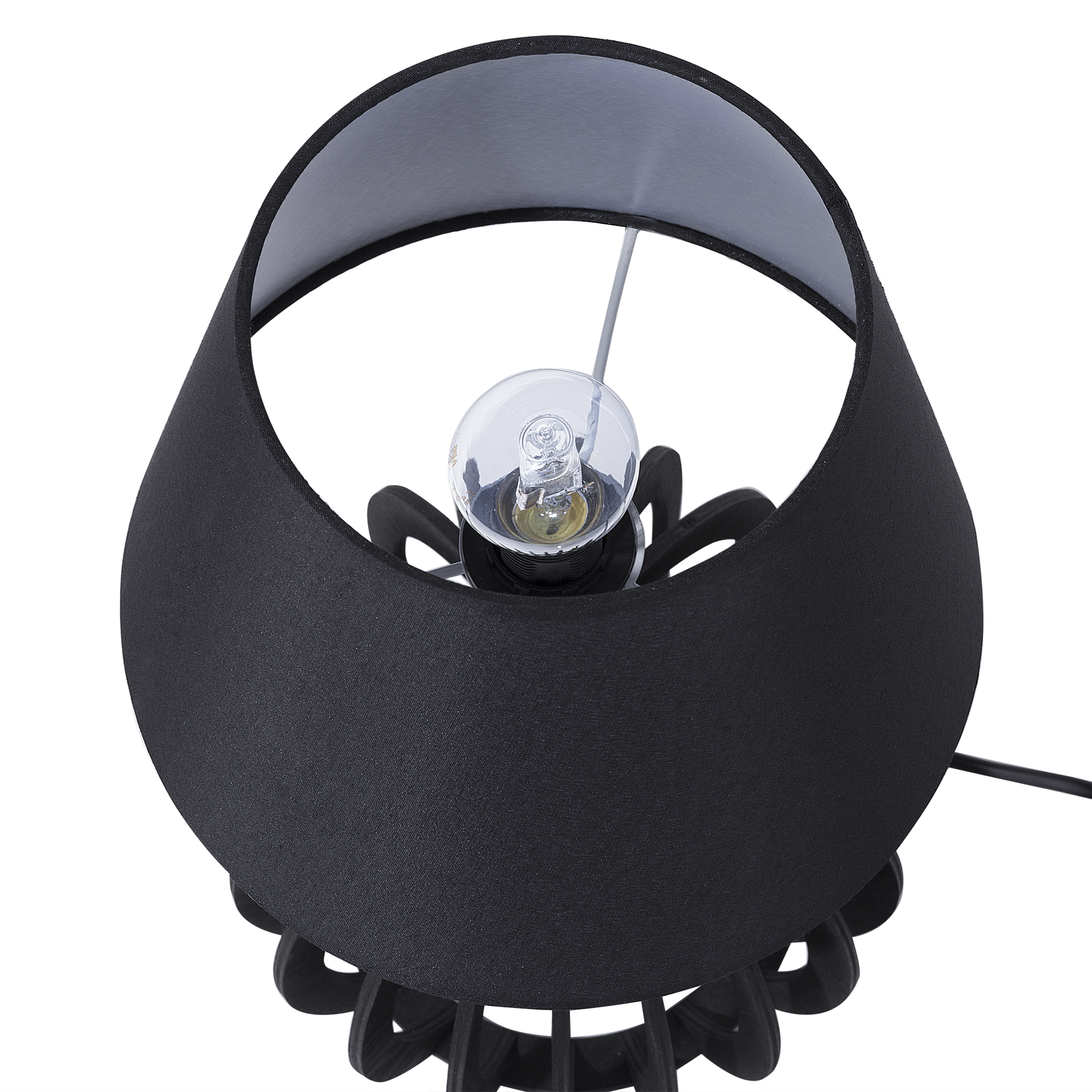 Beschreibung: Dank ihrer ausgefallenen Formgebung ist diese elegante Tischleuchte in edlem Schwarz nicht nur funktionale Beleuchtung, sondern zugleich eine dekorative Lichtquelle und ein wirkungsvolles Wohnaccessoire auf Kommoden oder Beistelltischen. Der runde, klassische Lampenschirm aus schwarzer Poly-Baumwolle sorgt für wohnliches, behagliches Licht. Der stilvolle, kugelförmige Leuchtenständer begeistert mit seinem Design aus schlanken Längsstreben aus Holz, die ihm eine offene Struktur verleihen. Das schwarze Kabel ist mit einem Schalter versehen. Material: Sperrholz. Zusätzliches Material: Poly-Baumwolle. Gewicht: 0.5 Montage: Teilweise montiert Das Angebot beinhaltet: 1 x Tischleuchte, Nicht im Lieferumfang enthalten: Leuchtmittel Höhe: 41 zusätzliche Information: Diese Leuchte ist geeignet für Leuchtmittel der Energieklassen A bis G auf einer Skala von A (sehr effizient) bis G (weniger effizient). Geeignet für: LED Leuchtmittel, Eco-Halogen Leuchtmittel, Energiesparleuchtmittel., Die Stromkabel dürfen nur von einem qualifizierten Elektriker angepasst werden. Breite: 22 Tiefe: 22 Art: Tischleuchte Stil: Modern Allgemeine Farbe: Schwarz Hauptmaterial: Sperrholz Fassung: Max. 40 W IP Protection Code: IP 20