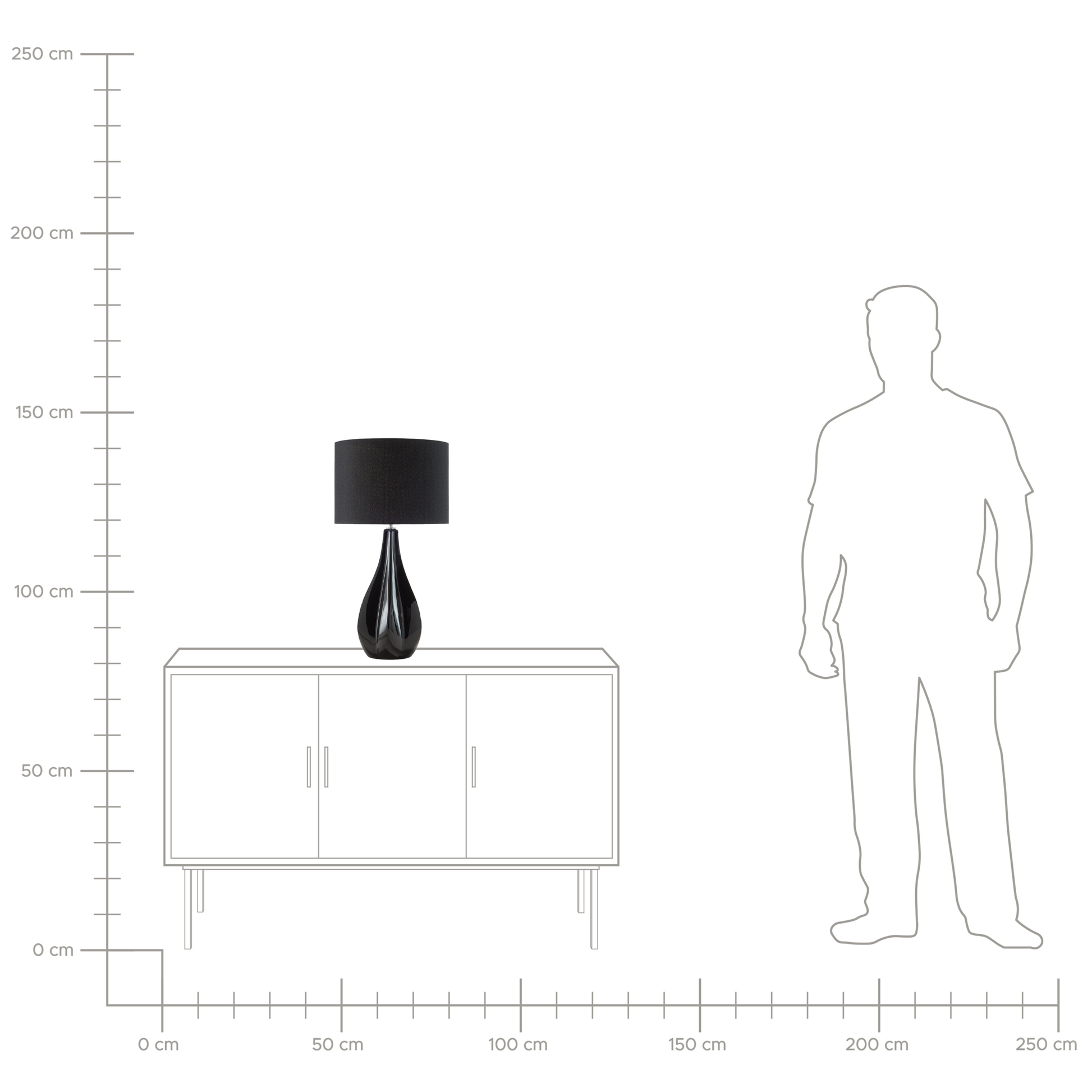 Ob als edle Tischlampe im Wohnzimmer, als Dekoleuchte, als dekorative Leseleuchte in einer gemütlichen Ecke, oder als elegante Nachttischlampe - die wunderschöne Tischleuchte wird Sie begeistern mit ihrer eleganten Ausstrahlung. Der vollendet geschwungene Fuss der Lampe in mattem Schwarz ist aus Porzellan gefertigt und macht die Lampe dank seiner ausgefallenen Form zu einem echten Designerstück. Der runde Lampenschirm aus matter, schwarzer Kunstseide spendet angenehmes Licht und verbreitet eine gemütliche Stimmung. Material: Porzellan. Zusätzliches Material: Kunstseide. Material Zusammensetzung: 100% Leinen Gewicht: 3 Montage: Teilweise montiert Das Angebot beinhaltet: 1 x Tischleuchte, Nicht im Lieferumfang enthalten: Leuchtmittel Höhe: 60 zusätzliche Information: Diese Leuchte ist geeignet für Leuchtmittel der Energieklassen A bis G auf einer Skala von A (sehr effizient) bis G (weniger effizient). Geeignet für: LED Leuchtmittel, Eco-Halogen Leuchtmittel, Energiesparleuchtmittel., Die Stromkabel dürfen nur von einem qualifizierten Elektriker angepasst werden. Breite: 32 Tiefe: 32 Art: Tischleuchte Stil: Glamourös Allgemeine Farbe: Schwarz Hauptmaterial: Porzellan Fassung: Max. 60 W IP Protection Code: IP 20