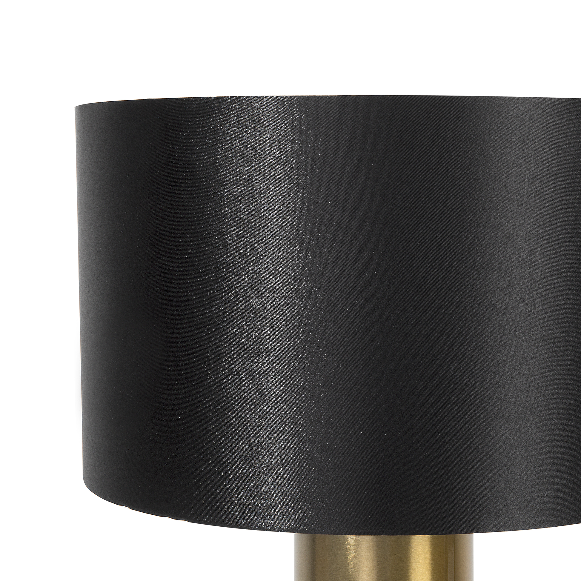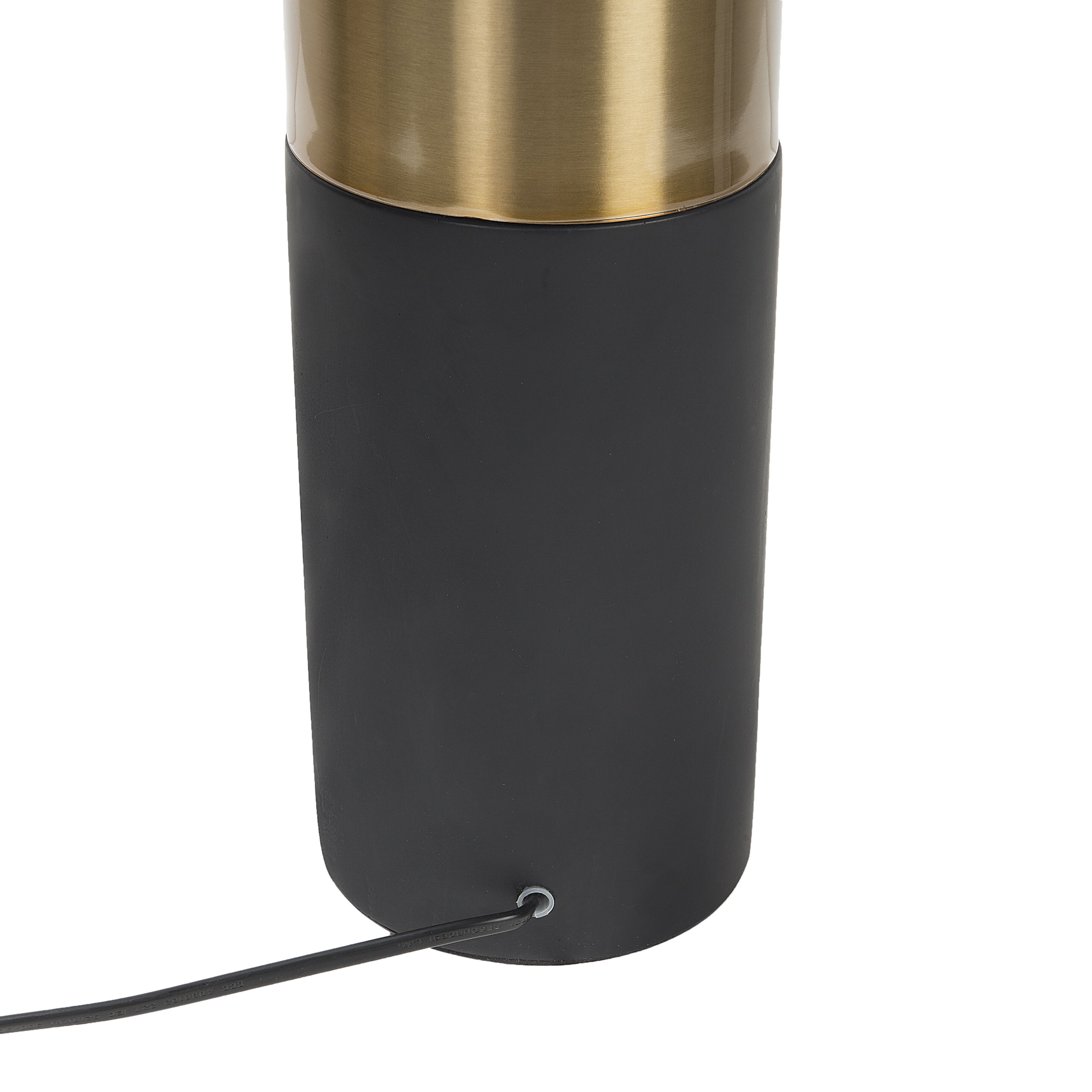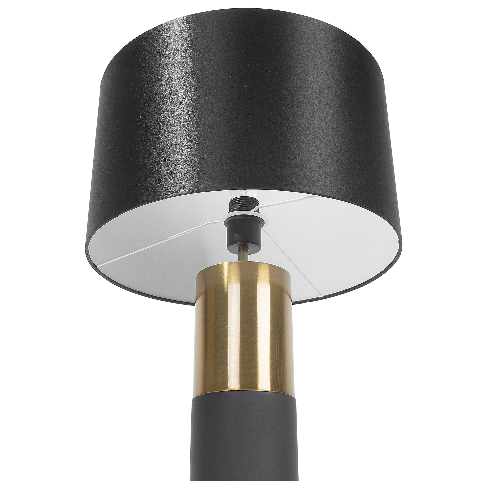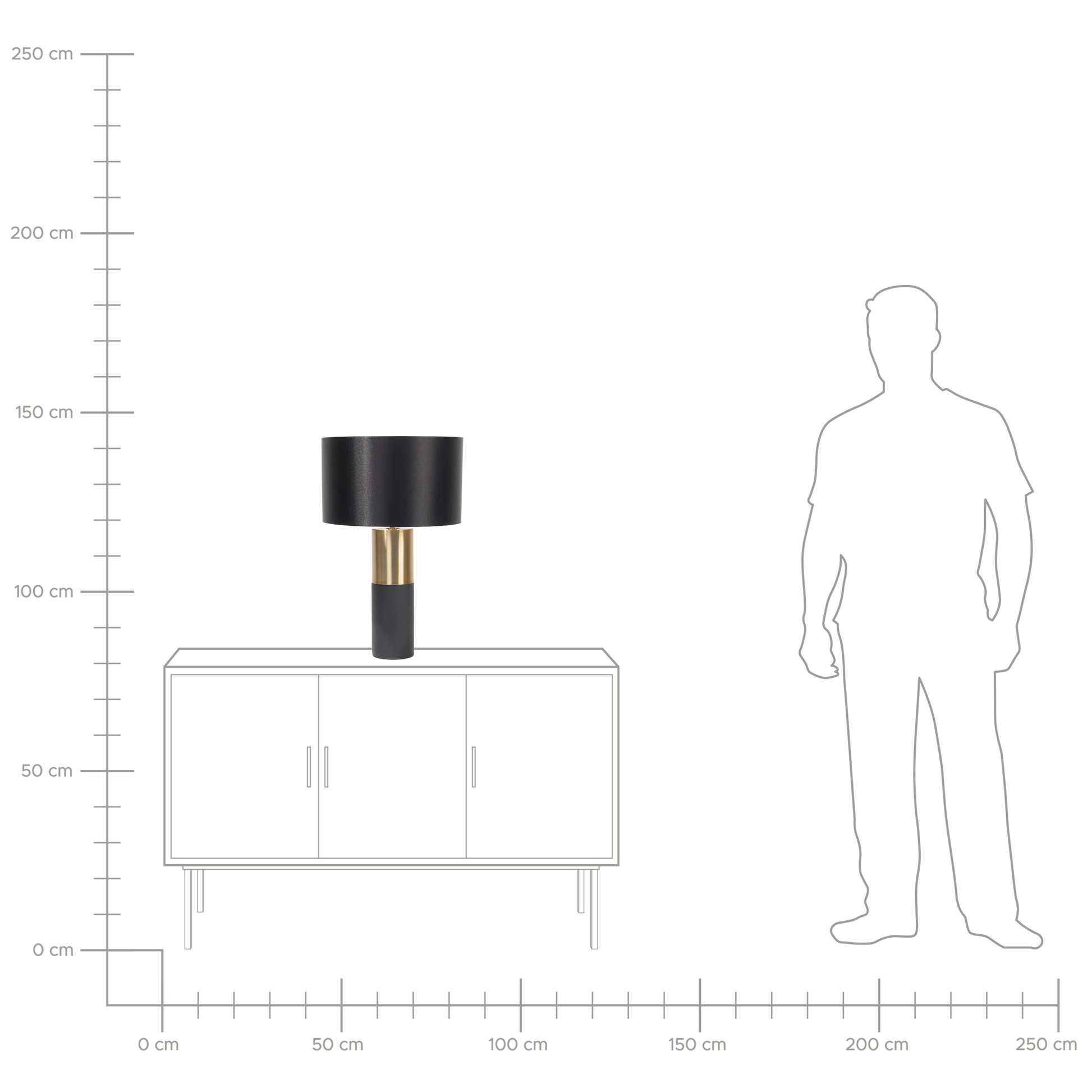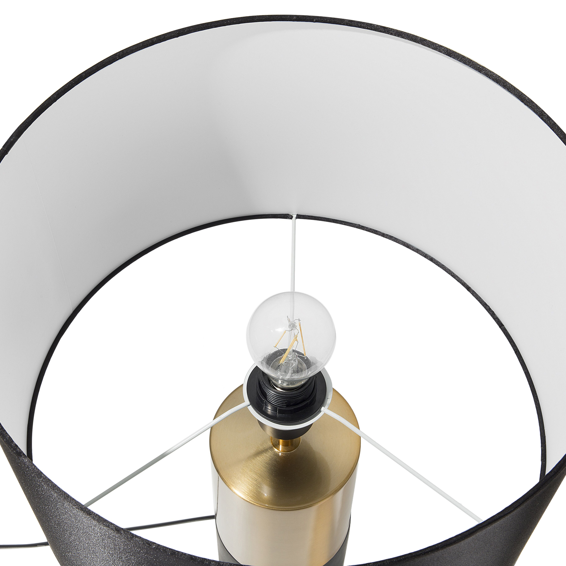 Die Kombination aus Schwarz , Gold und Grau wirkt besonders edel bei dieser eleganten Tischlampe. Das zeitlose Design kommt in eleganten, klassischen wie auch modernen Wohnstilen ausgezeichnet zur Geltung. Der runde Lampenschirm ist aus schwarzem, dezent glänzendem Stoff gefertigt, und ein schlanker, runder Lampenfuss aus grauem Metall mit einem breiten, golden glänzenden Rand rundet das stilvolle Design ab.   Material: Stahl. Zusätzliches Material: Poly-Baumwolle.  Material Zusammensetzung: 70% Polyester, 30% Baumwolle Gewicht: 4 Montage: Teilweise montiert Das Angebot beinhaltet: 1 x Tischleuchte, Nicht im Lieferumfang enthalten: Leuchtmittel Höhe: 61 zusätzliche Information: Diese Leuchte ist geeignet für Leuchtmittel der Energieklassen A bis G auf einer Skala von A (sehr effizient) bis G (weniger effizient). Geeignet für: LED Leuchtmittel, Eco-Halogen Leuchtmittel, Energiesparleuchtmittel., Die Stromkabel dürfen nur von einem qualifizierten Elektriker angepasst werden. Breite: 40 Tiefe: 40 Art: Tischleuchte Stil: Glamourös Allgemeine Farbe: Schwarz Hauptmaterial: Stahl Fassung: Max. 40 W IP Protection Code: IP 20
