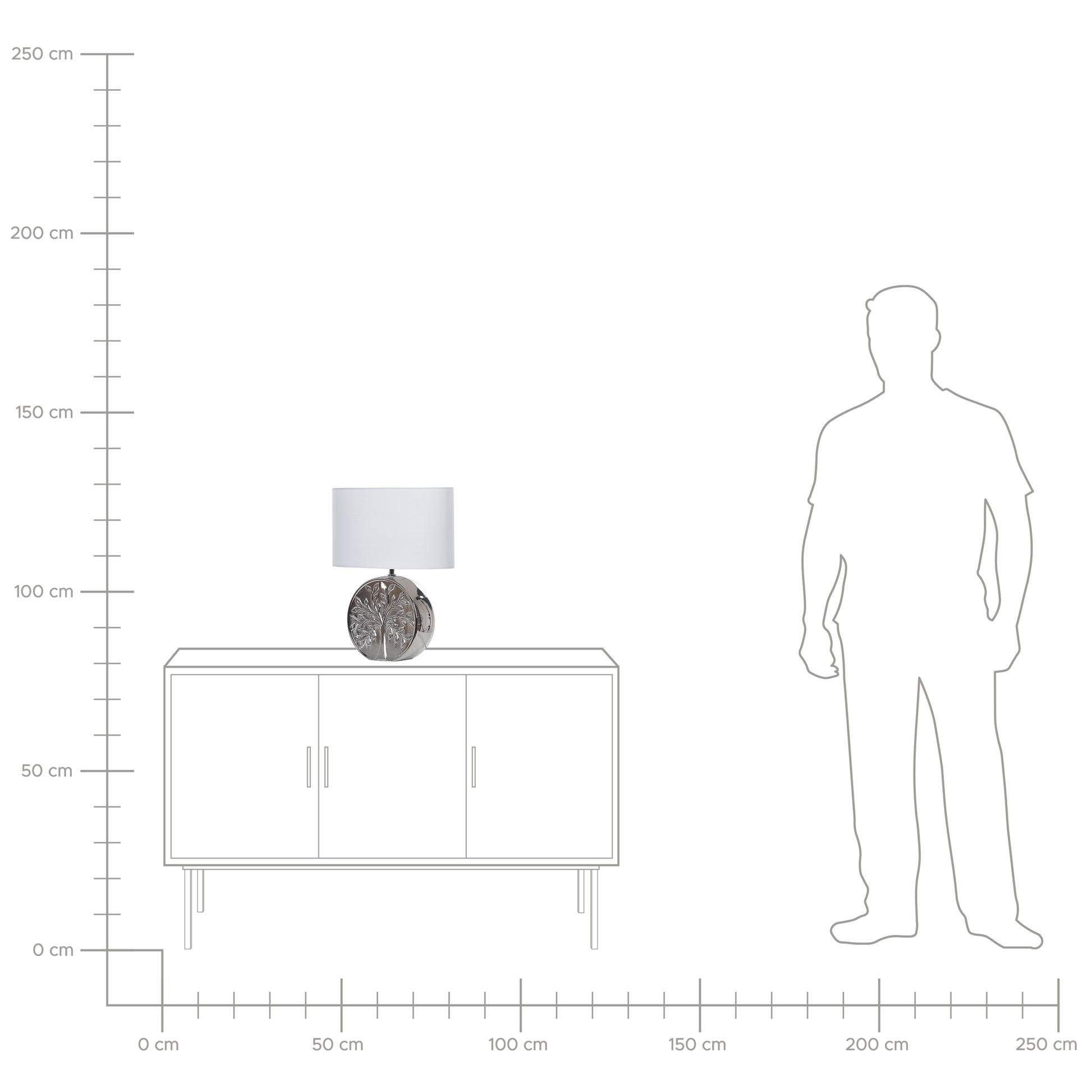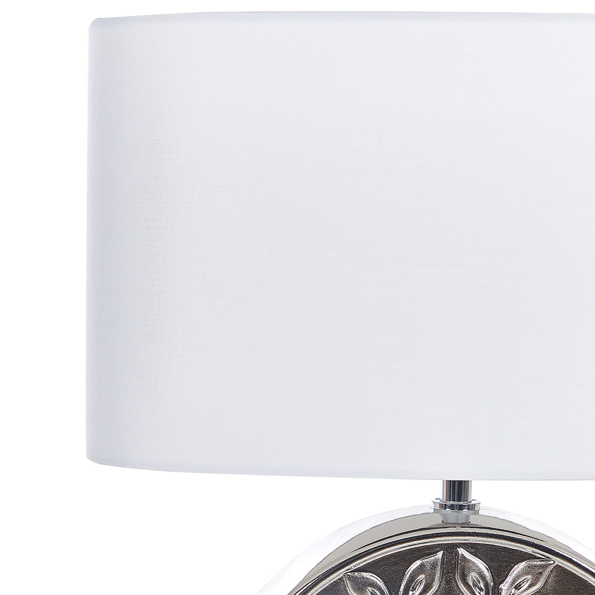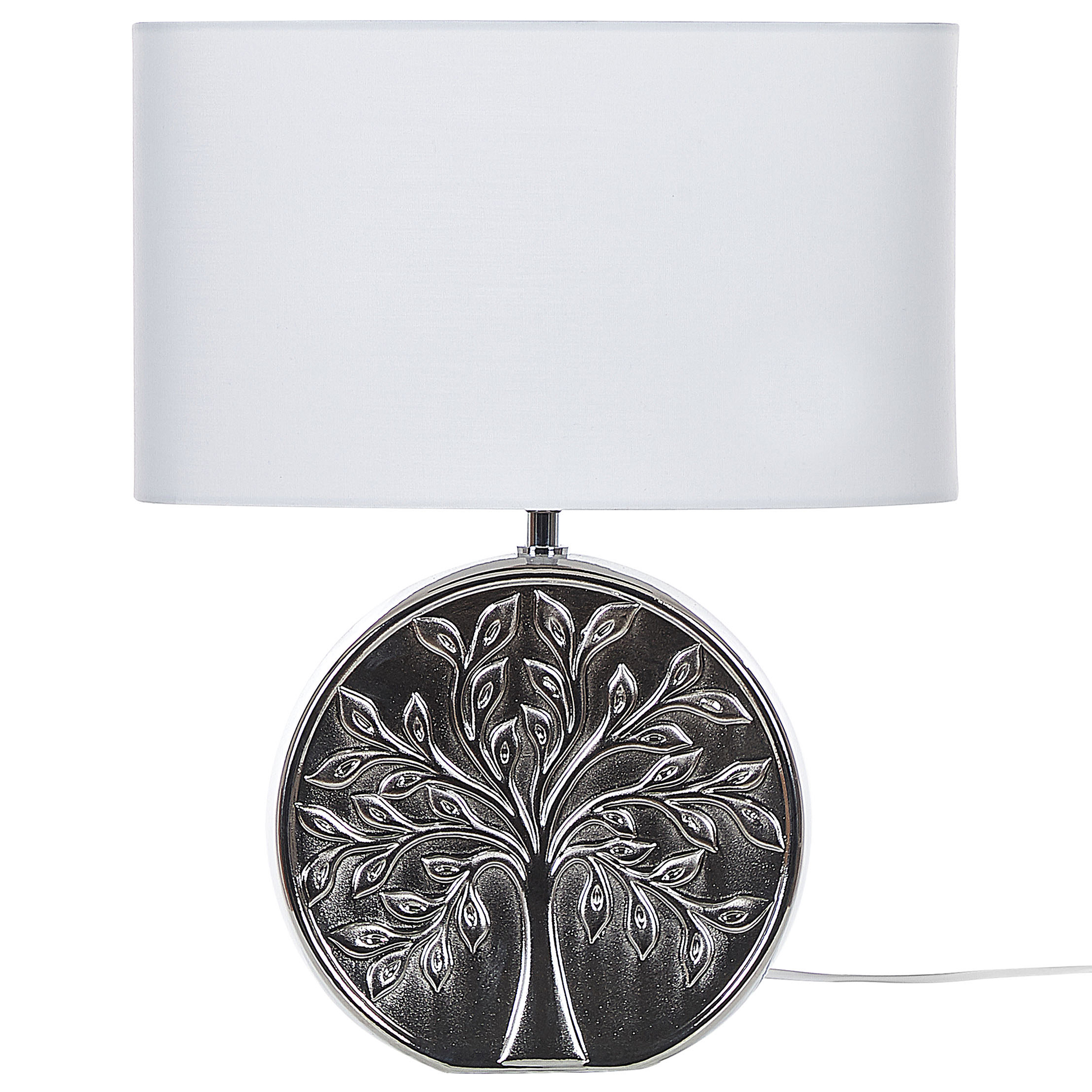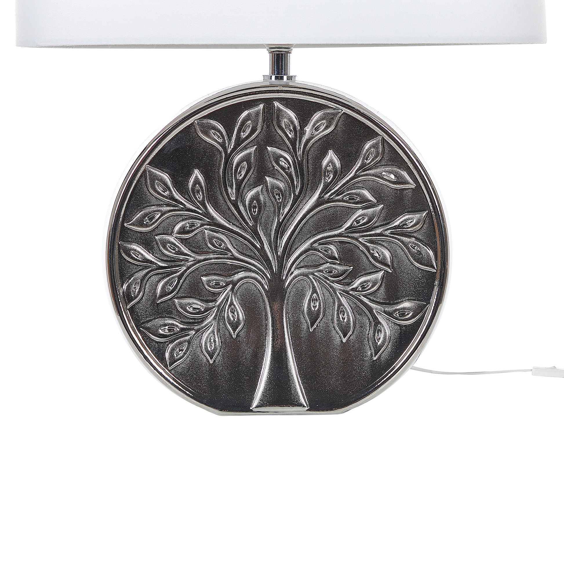 Beschreibung: Eine praktische Tischleuchte, die sich sowohl für Schlaf- als auch für Wohnzimmer eignet und gleichzeitig einen eleganten Stil aufweist. Der Körper ist in einer glänzenden Farbe gehalten, die ihm ein elegantes glamouröses Flair verleiht. Dank des geschnitzten Baummotivs ist die Lampe einzigartig und eklektisch. Die Lampe eignet sich hervorragend für eine stimmungsvolle Beleuchtung neben dem Sofa oder als Lesehilfe am Bett. Material: Keramik. Zusätzliches Material: Polyester, Baumwolle. Material Zusammensetzung: 40% Baumwolle, 60% Polyester Gewicht: 2 Montage: Benötigt keine Montage Das Angebot beinhaltet: 1 x Tischleuchte, Nicht im Lieferumfang enthalten: Leuchtmittel Höhe: 48 zusätzliche Information: Diese Leuchte ist geeignet für Leuchtmittel der Energieklassen A bis G auf einer Skala von A (sehr effizient) bis G (weniger effizient). Geeignet für: LED Leuchtmittel, Eco-Halogen Leuchtmittel, Energiesparleuchtmittel., Die Stromkabel dürfen nur von einem qualifizierten Elektriker angepasst werden. Breite: 38 Tiefe: 20 Art: Tischleuchte Stil: Modern Allgemeine Farbe: Silber Hauptmaterial: Keramik Fassung: 40 W IP Protection Code: IP 20