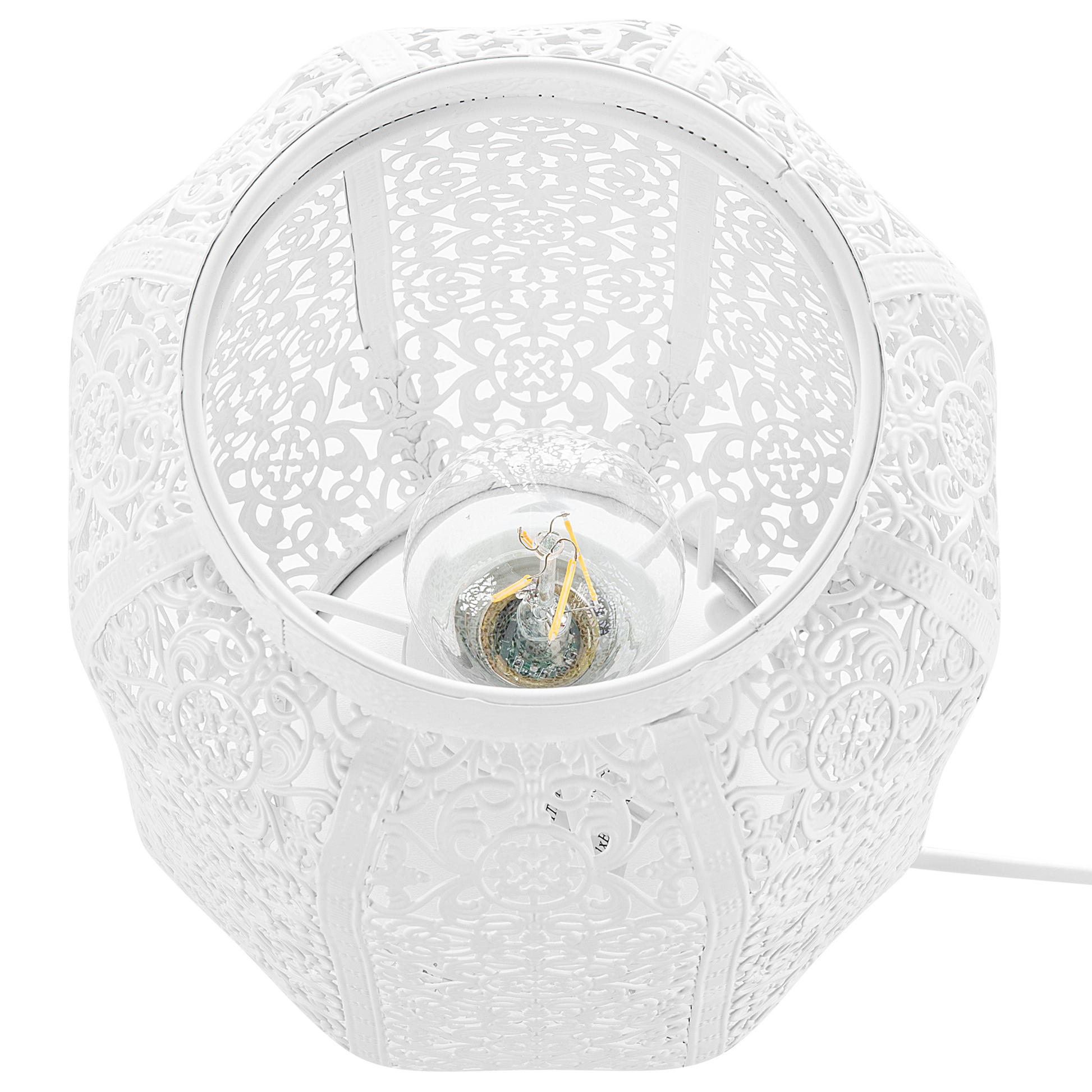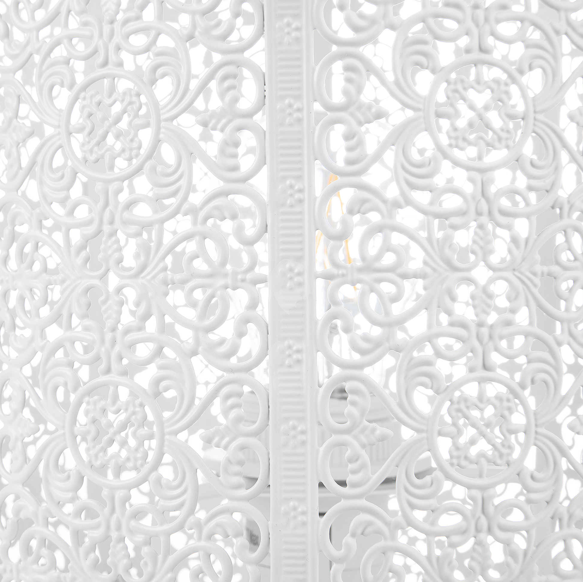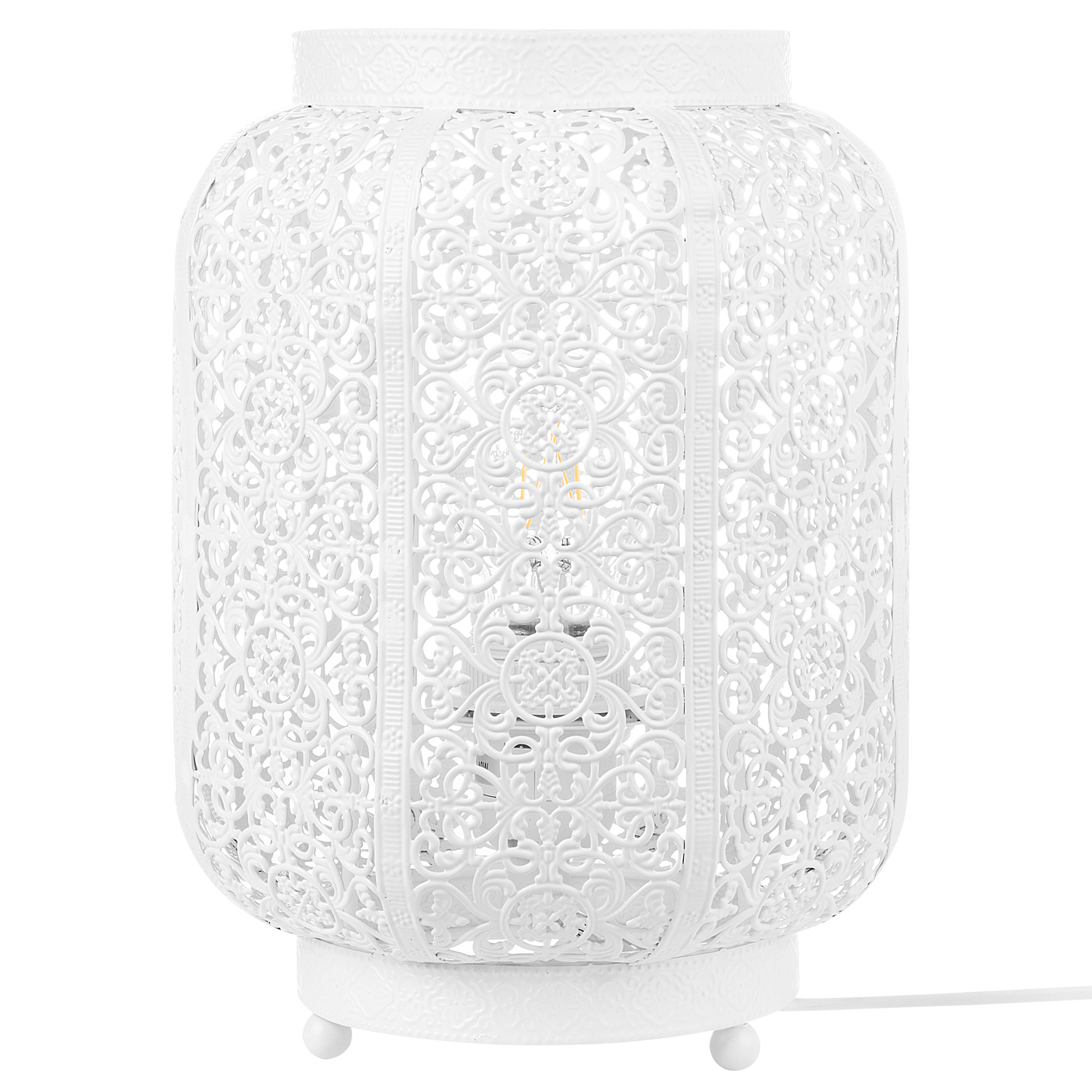 Beschreibung: Das Gehäuse aus mattem, weissem Metall begeistert mit seinem orientalischem Muster. Dank der verschnörkelten Ornamente gibt die Leuche ein warmes und dezentes Licht, was jedem Raum viel Gemütlichkeit und eine romantische Atmosphäre schenkt. Die dekorative und verspielte Lampe in Laternen-Optik fügt sich in unterschiedliche Einrichtungsstile, egal ob rustikal, modern oder klassisch. Material: Metall. Gewicht: 0.8 Montage: Teilweise montiert Das Angebot beinhaltet: 1 x Tischleuchte, Nicht im Lieferumfang enthalten: Leuchtmittel Höhe: 27 zusätzliche Information: Diese Leuchte ist geeignet für Leuchtmittel der Energieklassen A bis G auf einer Skala von A (sehr effizient) bis G (weniger effizient). Geeignet für: LED Leuchtmittel, Eco-Halogen Leuchtmittel, Energiesparleuchtmittel., Die Stromkabel dürfen nur von einem qualifizierten Elektriker angepasst werden. Breite: 13 Tiefe: 13 Art: Tischleuchte Stil: Boho Allgemeine Farbe: Weiss Schatten: Creme Hauptmaterial: Metall Fassung: Max. 40 W IP Protection Code: IP 20