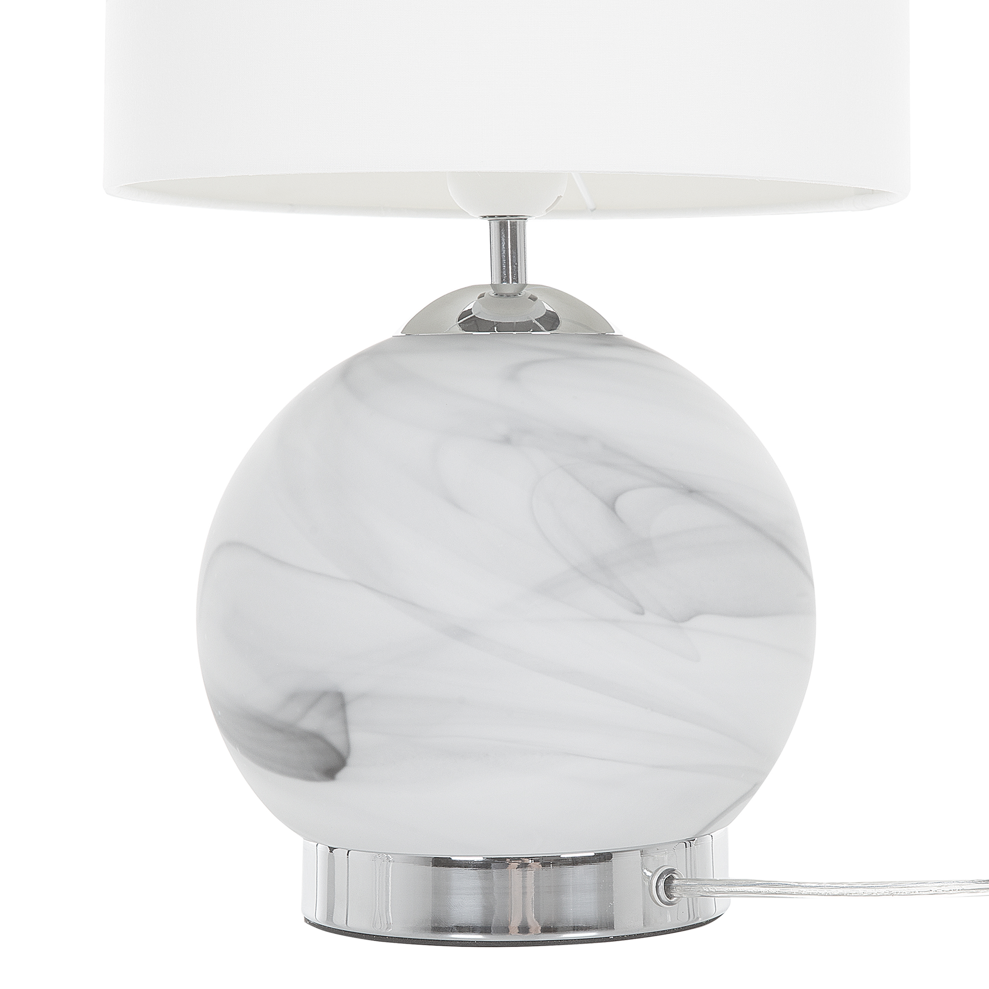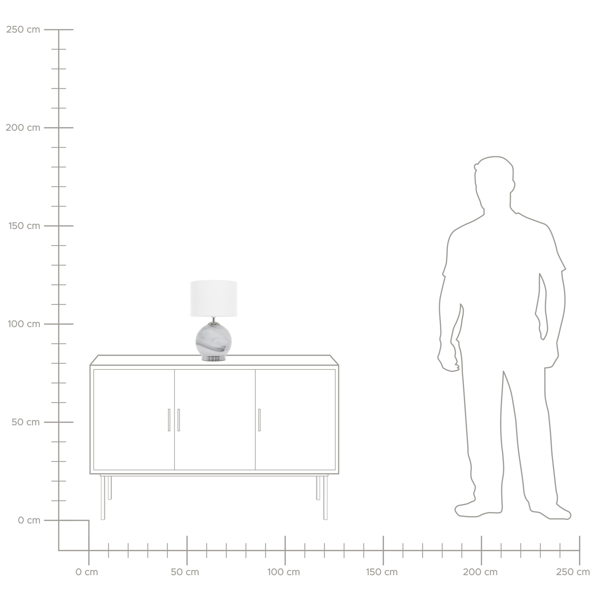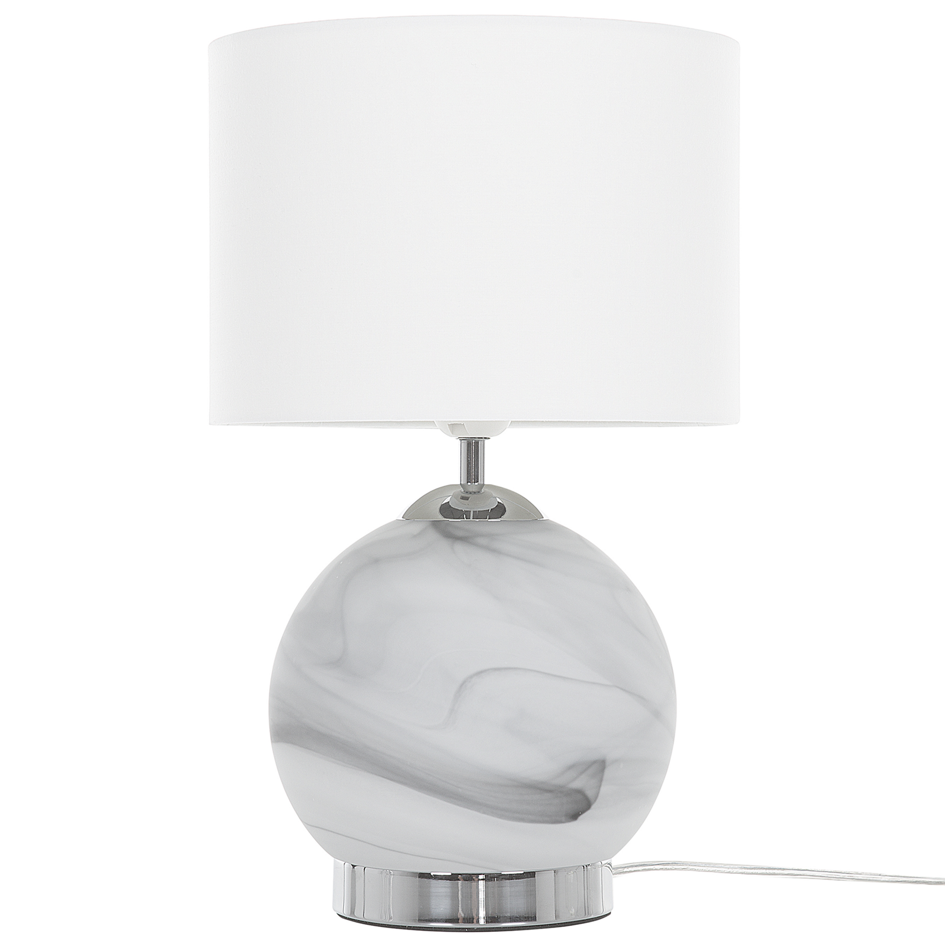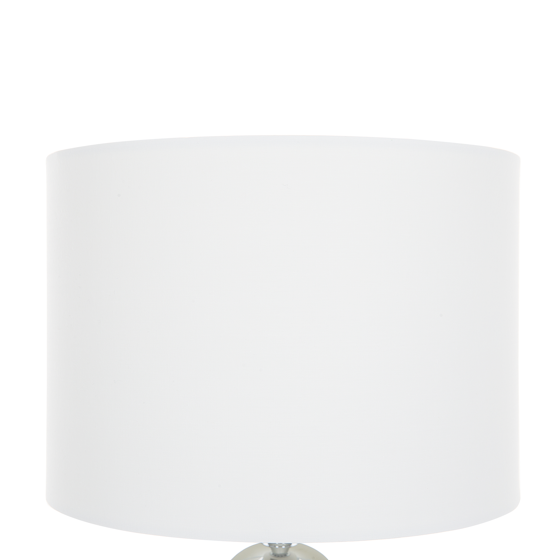 Klassisch und dennoch stilvoll - der kugelförmige Fuss dieser Lampe aus milchfarbenem Glas gibt ihr das gewisse etwas. Der farblich harmonierende, glänzende Schirm aus hochwertigem Stoff rundet das Design der Tischlampe ab und macht sie zum universellen Begleiter für Ihr Schlaf-, Wohn- und Esszimmer.   Material: Eisen. Zusätzliches Material: Polyester.  Gewicht: 2 Montage: Teilweise montiert Das Angebot beinhaltet: 1 x Tischleuchte, Nicht im Lieferumfang enthalten: Leuchtmittel Höhe: 40 zusätzliche Information: Diese Leuchte ist geeignet für Leuchtmittel der Energieklassen A bis G auf einer Skala von A (sehr effizient) bis G (weniger effizient). Geeignet für: LED Leuchtmittel, Eco-Halogen Leuchtmittel, Energiesparleuchtmittel., Die Stromkabel dürfen nur von einem qualifizierten Elektriker angepasst werden. Breite: 24 Tiefe: 24 Art: Tischleuchte Stil: Modern Allgemeine Farbe: Grau Hauptmaterial: Eisen Fassung: Max. 40 W IP Protection Code: IP 20