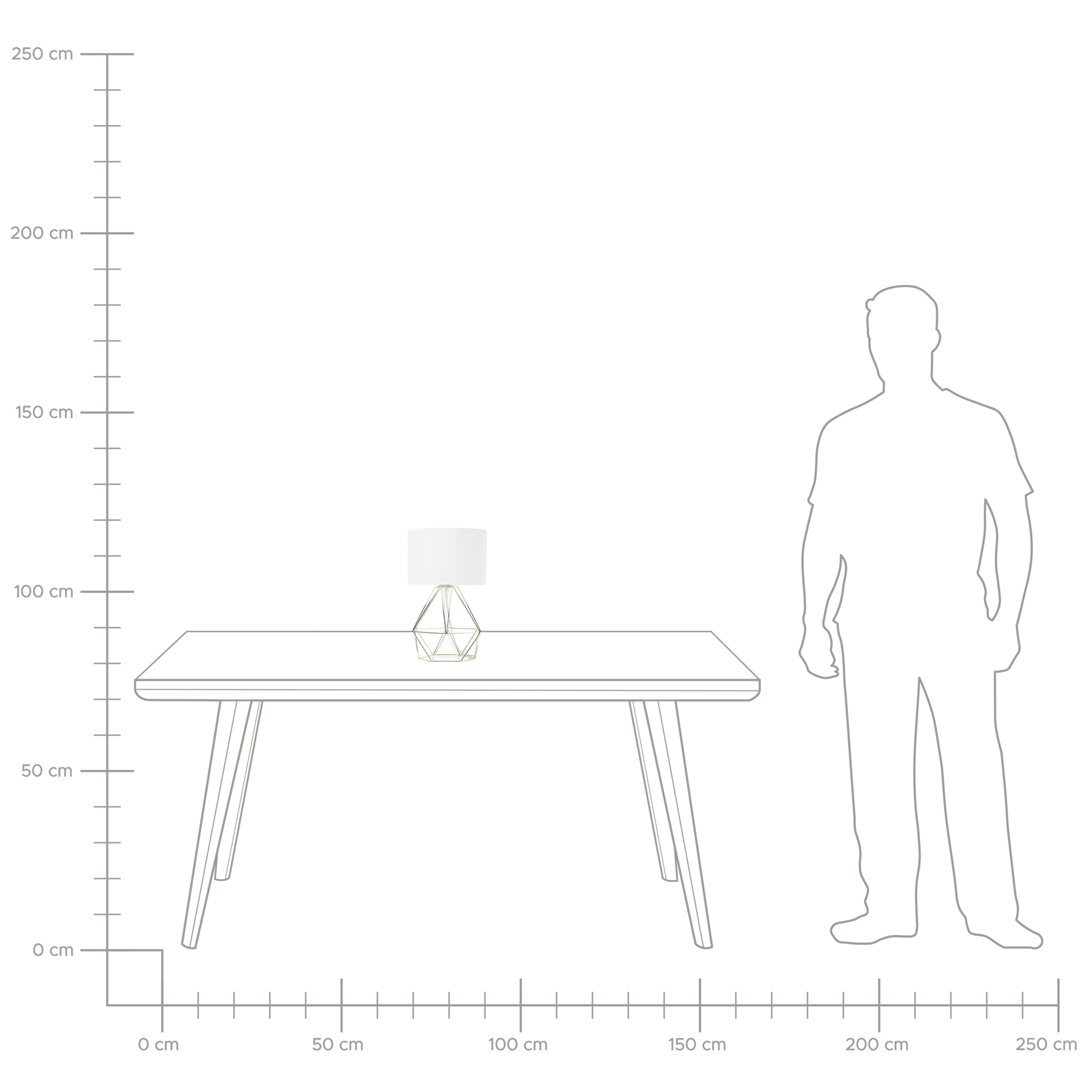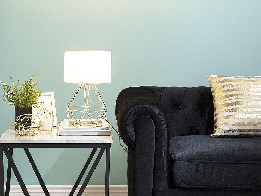 Diese Tischleuchte zieht dank ausgefallenem Design alle Blicke auf sich. Der klassische, runde Lampenschirm aus weissem Polyester wird ergänzt durch den Lampenfuss bestehend aus einem goldfarbenen, diamantförmigen Metallgitter. Eine moderne Lampe mit zeitloser Eleganz, die in jedes Wohnambiente passt. Material: Eisen. Zusätzliches Material: Polyester. Gewicht: 1 Montage: Teilweise montiert Das Angebot beinhaltet: 1 x Tischleuchte, Nicht im Lieferumfang enthalten: Leuchtmittel Höhe: 35 zusätzliche Information: Diese Leuchte ist geeignet für Leuchtmittel der Energieklassen A bis G auf einer Skala von A (sehr effizient) bis G (weniger effizient). Geeignet für: LED Leuchtmittel, Eco-Halogen Leuchtmittel, Energiesparleuchtmittel., Die Stromkabel dürfen nur von einem qualifizierten Elektriker angepasst werden. Breite: 22 Tiefe: 22 Art: Tischleuchte Stil: Modern Allgemeine Farbe: Gold Hauptmaterial: Eisen Fassung: Max. 40 W IP Protection Code: IP 20