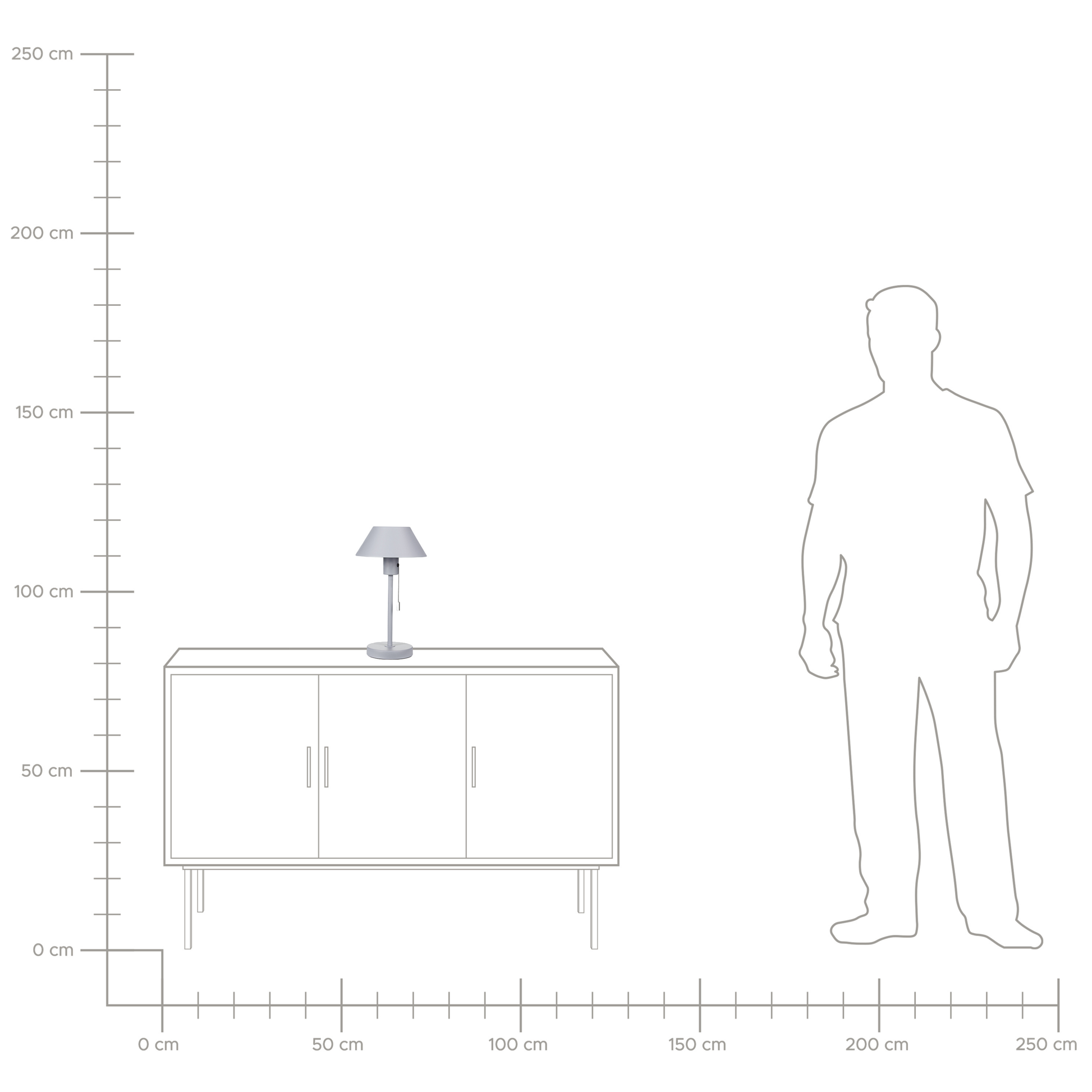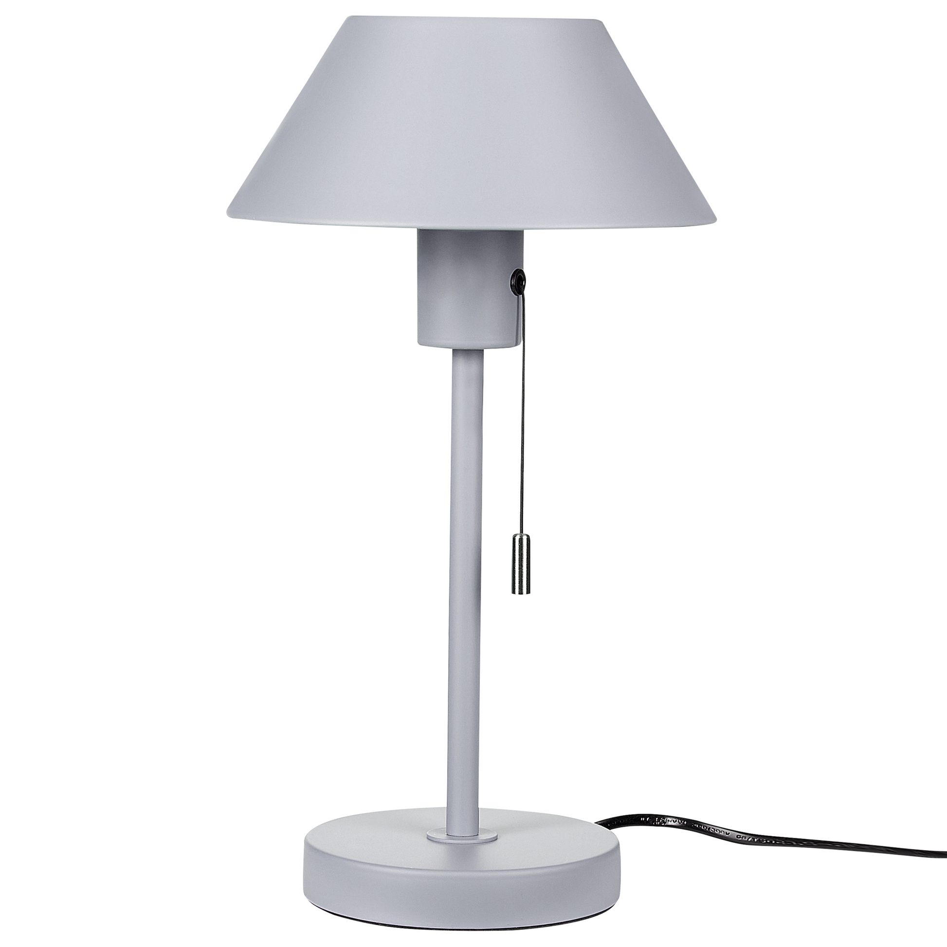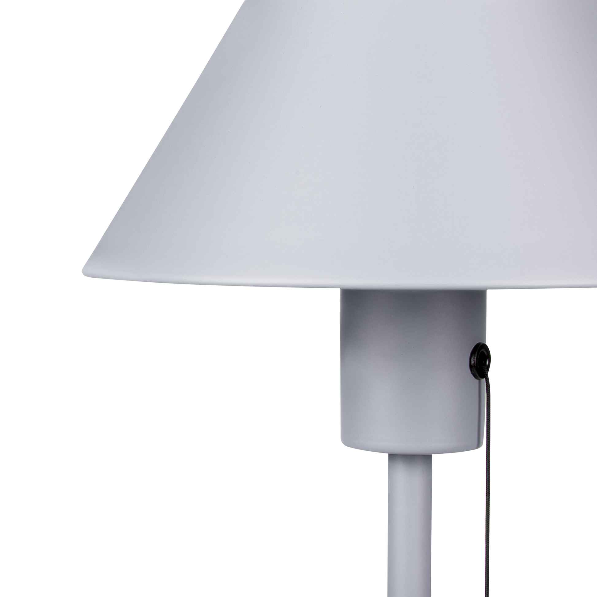 Diese minimalistische Tischleuchte ist ein perfektes Accessoire für moderne oder industrielle Innenräume. Sie wird Ihr Büro, Ihr Wohnzimmer oder Ihr Schlafzimmer hervorragend beleuchten, da der schlichte, kegelförmige Schirm ein helles Licht ausstrahlt, das perfekt für die Arbeit, die abendliche Lektüre oder das Fernsehen ist. Die Lampe verfügt über einen Zugschalter, der die Bedienung erleichtert. Dank ihres schlichten Designs und der matten Oberfläche wird sie den Raum sanft beleuchten und ihm einen ruhigen, aber modernen Akzent verleihen.  Material: Eisen. Gewicht: 1 Montage: Teilweise montiert Das Angebot beinhaltet: 1 x Tischleuchte, Nicht im Lieferumfang enthalten: Leuchtmittel Höhe: 37 zusätzliche Information: Diese Leuchte ist geeignet für Leuchtmittel der Energieklassen A bis G auf einer Skala von A (sehr effizient) bis G (weniger effizient). Geeignet für: LED Leuchtmittel, Eco-Halogen Leuchtmittel, Energiesparleuchtmittel., Die Stromkabel dürfen nur von einem qualifizierten Elektriker angepasst werden. Breite: 20 Tiefe: 20 Art: Tischleuchte Stil: Skandinavisch Allgemeine Farbe: Grau Schatten: Hellgrau Hauptmaterial: Eisen Fassung: 40 W IP Protection Code: IP 20