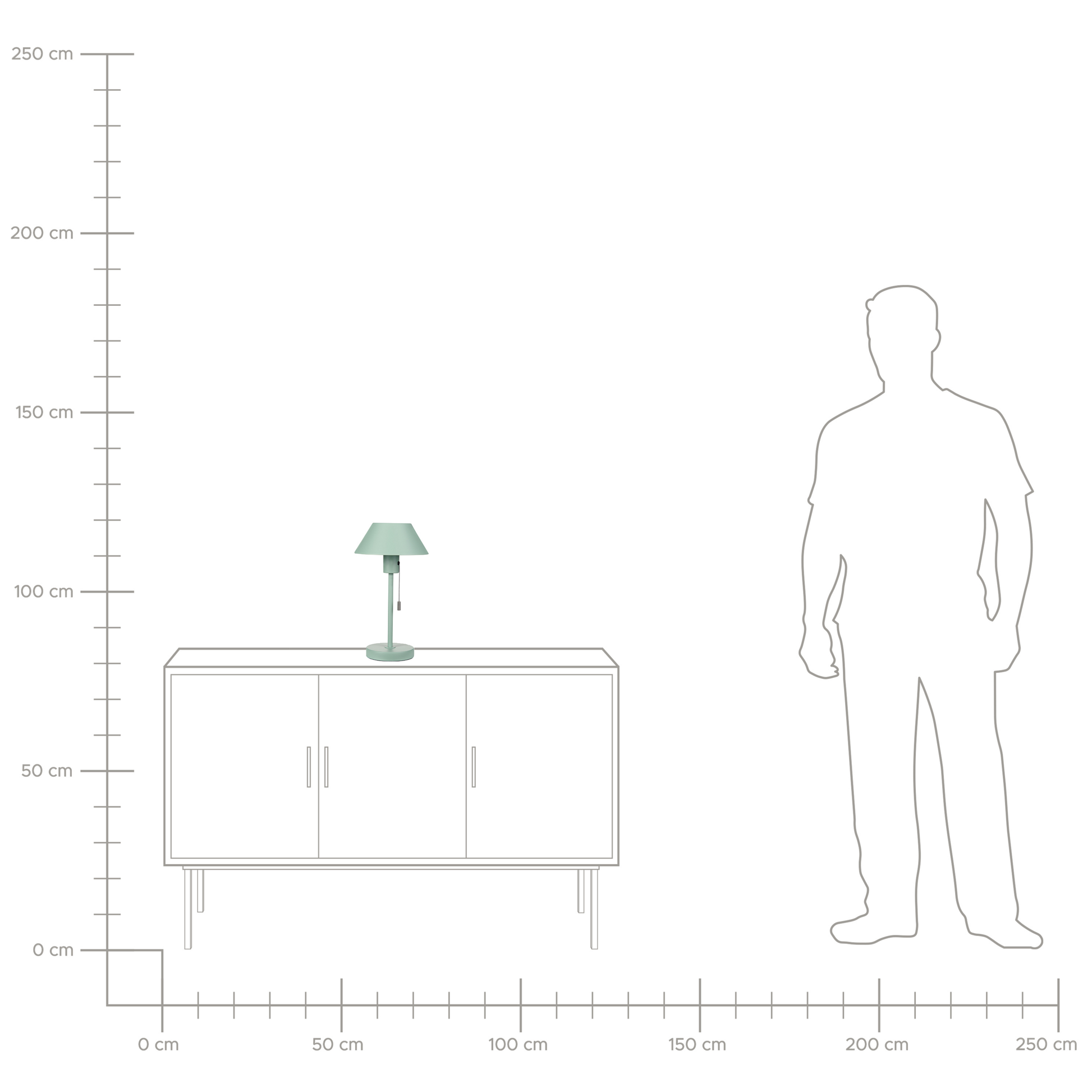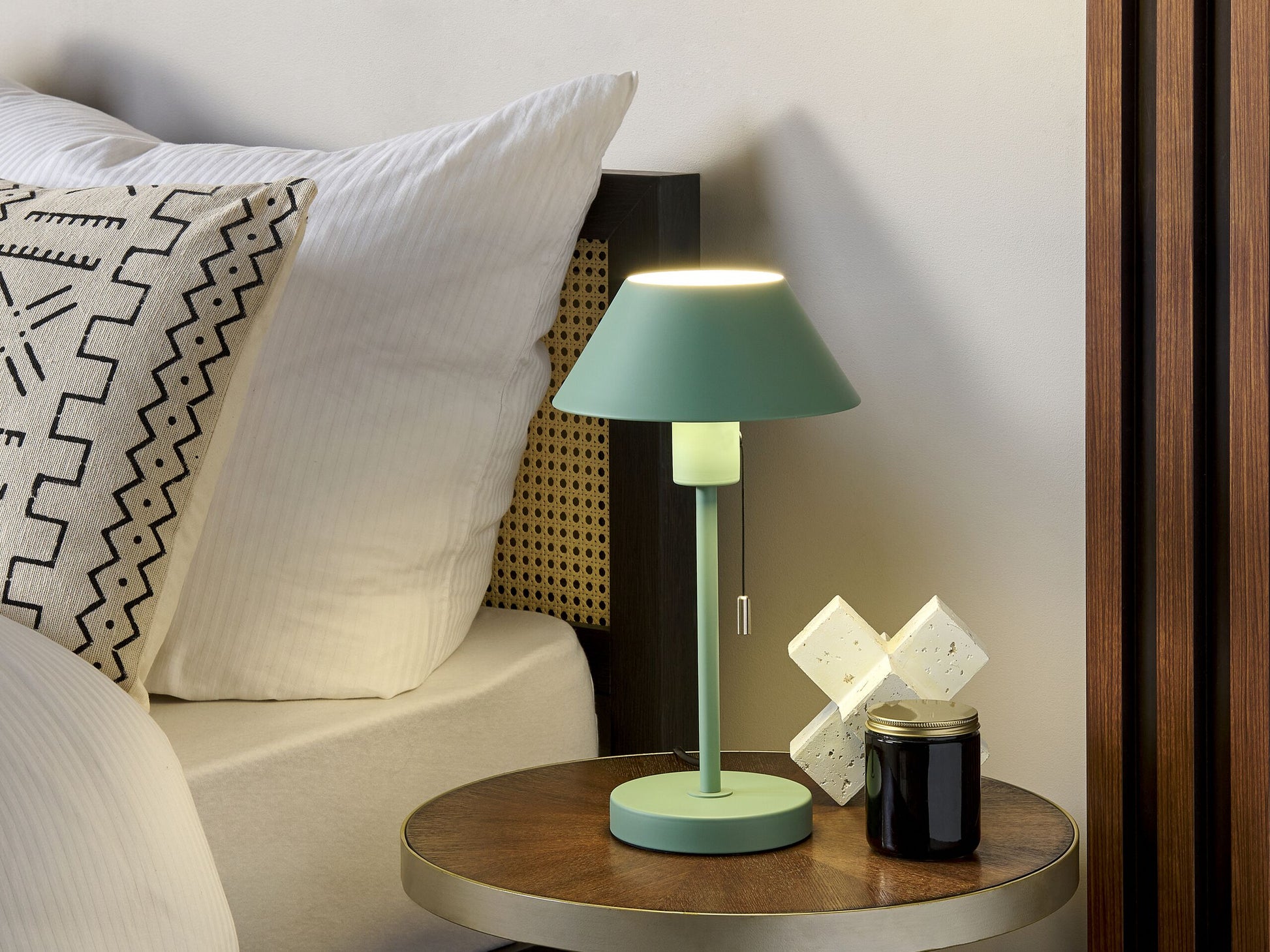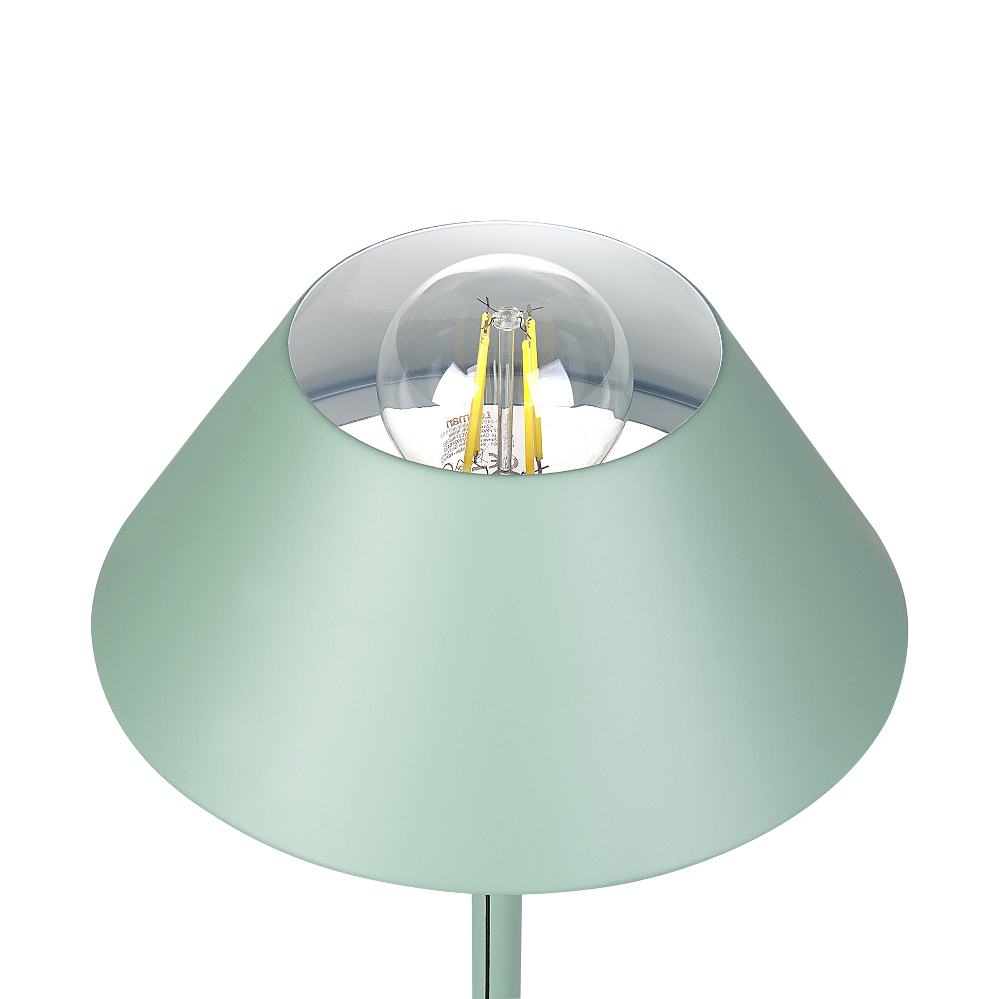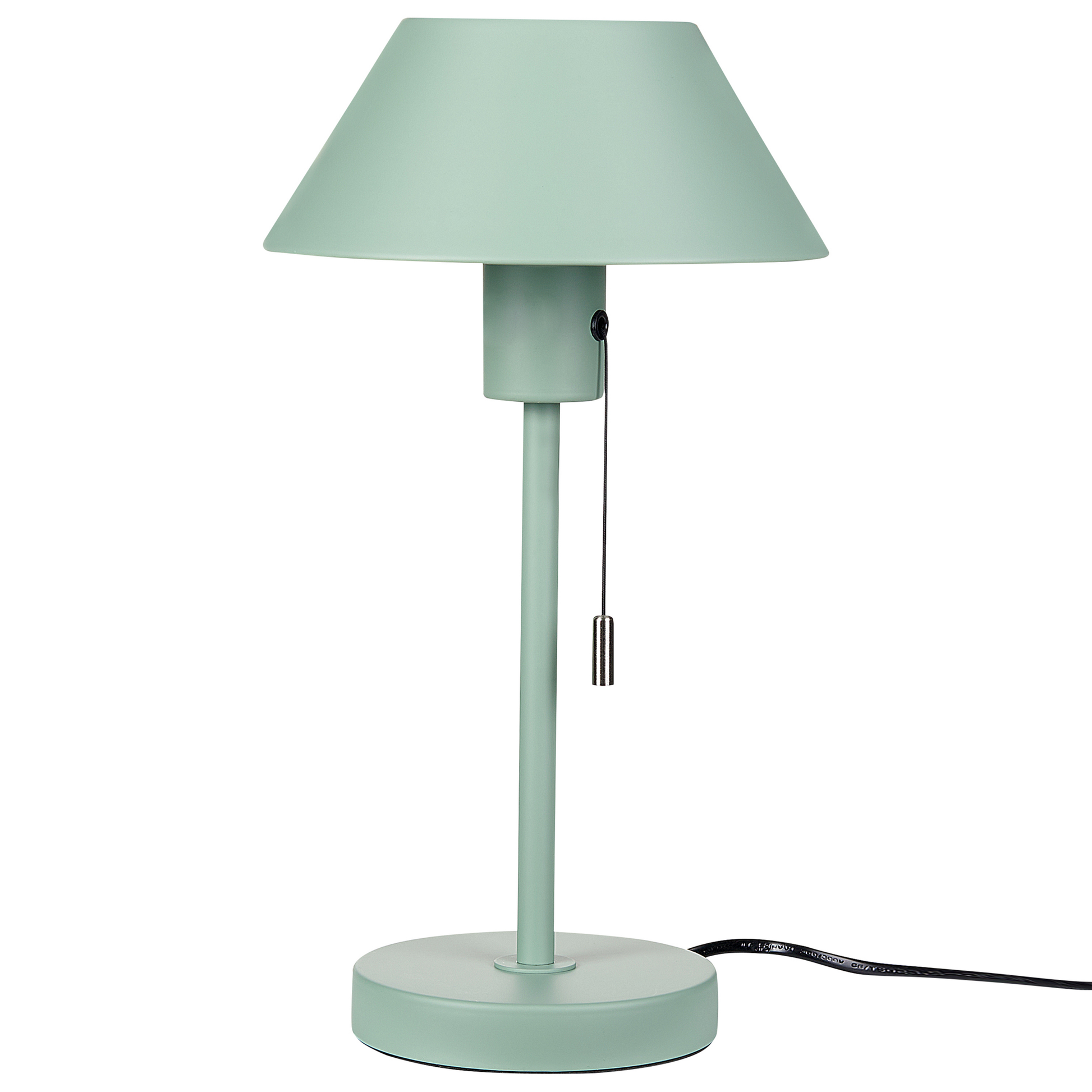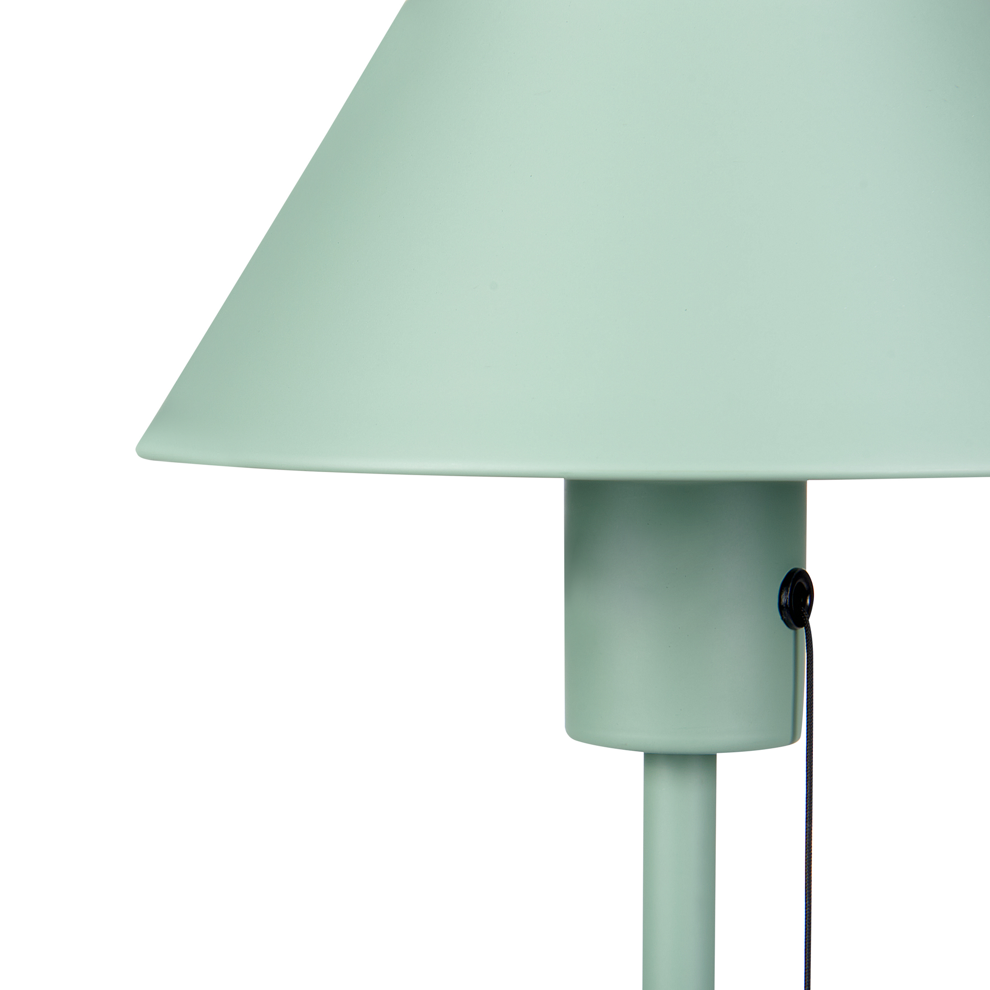 Diese minimalistische Tischleuchte ist ein perfektes Accessoire für moderne oder industrielle Innenräume. Sie wird Ihr Büro, Ihr Wohnzimmer oder Ihr Schlafzimmer hervorragend beleuchten, da der schlichte, kegelförmige Schirm ein helles Licht ausstrahlt, das perfekt für die Arbeit, die abendliche Lektüre oder das Fernsehen ist. Die Lampe verfügt über einen Zugschalter, der die Bedienung erleichtert. Dank ihres schlichten Designs und der matten Oberfläche wird sie den Raum sanft beleuchten und ihm einen ruhigen, aber modernen Akzent verleihen.  Material: Eisen. Gewicht: 1 Montage: Teilweise montiert Das Angebot beinhaltet: 1 x Tischleuchte, Nicht im Lieferumfang enthalten: Leuchtmittel Höhe: 37 zusätzliche Information: Diese Leuchte ist geeignet für Leuchtmittel der Energieklassen A bis G auf einer Skala von A (sehr effizient) bis G (weniger effizient). Geeignet für: LED Leuchtmittel, Eco-Halogen Leuchtmittel, Energiesparleuchtmittel., Die Stromkabel dürfen nur von einem qualifizierten Elektriker angepasst werden. Breite: 20 Tiefe: 20 Art: Tischleuchte Stil: Modern Allgemeine Farbe: Grün Schatten: Hellgrün Hauptmaterial: Eisen Fassung: 40 W IP Protection Code: IP 20