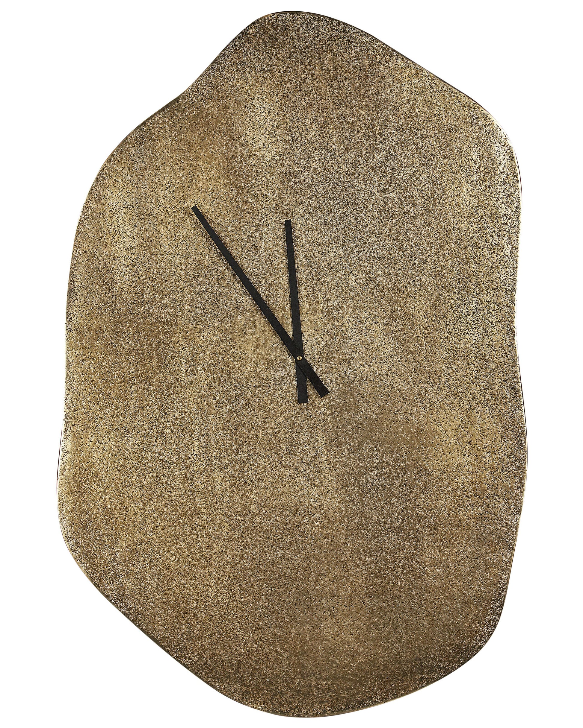 Diese moderne Wanduhr besticht durch ihr minimalistisches Design in Messing und dezenten schwarzen Zeigern. Ihr schlichter und eleganter Look macht sie zu einem vielseitigen Wohnaccessoire, das verschiedene Einrichtungsstile stilvoll ergänzt. Diese Uhr ist perfekt geeignet, um jedem Raum einen Hauch von Eleganz zu verleihen und verbindet Funktionalität mit moderner Ästhetik. Material: Aluminium. Gewicht: 5 Montage: Benötigt keine Montage Das Angebot beinhaltet: 1 x Uhr, Nicht im Lieferumfang enthalten: Batterien Höhe: 78 zusätzliche Information: Da jedes Produkt handgefertigt wird, kann es zu kleineren Abweichungen in der Farbe und der äusseren Struktur kommen. Diese Abweichungen stellen keinen Qualitätsmangel dar, sondern sind eine warentypische Eigenschaft. Breite: 50 Tiefe: 3 Art: Dekoration Stil: Industriell Allgemeine Farbe: Messing Hauptmaterial: Aluminium