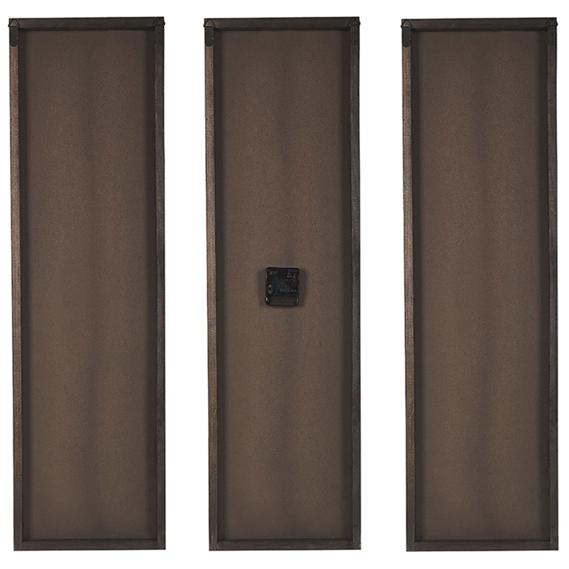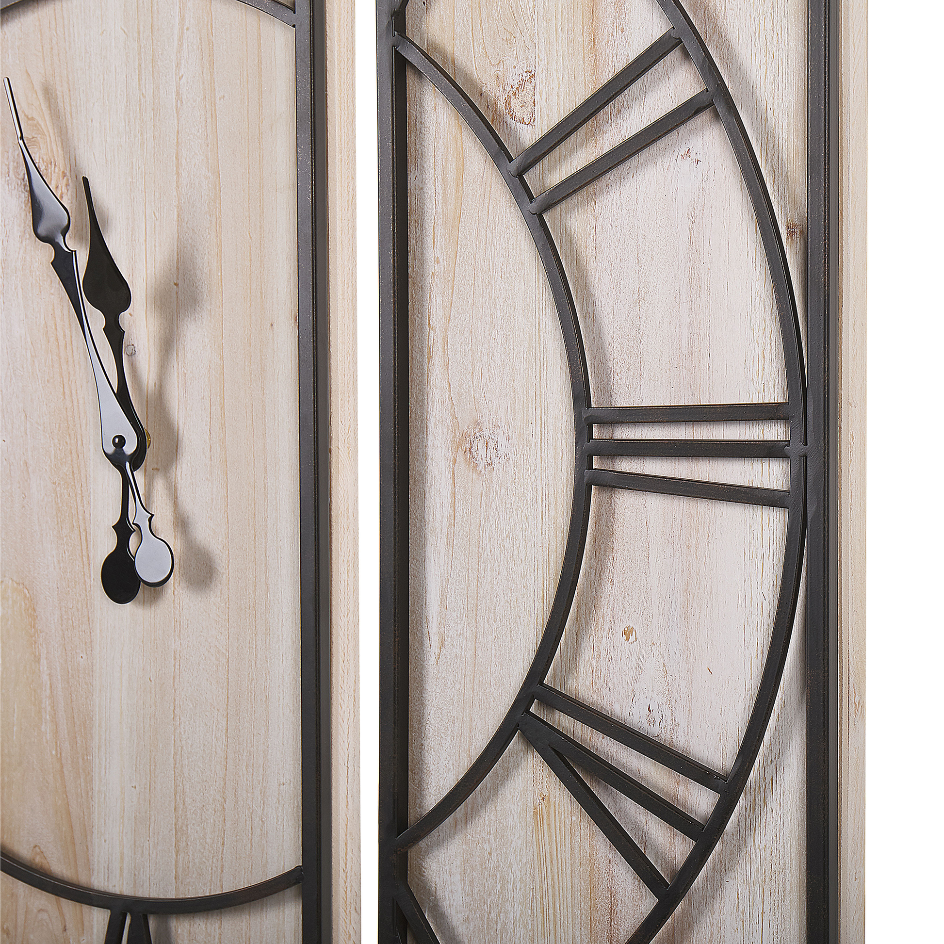Eine trendsetzende Idee zur Verschönerung Ihrer Wohnfläche. Dieses Modell besteht aus 3 gleich grossen, rechteckigen Panelen, die zusammengestellt einen quadratischen Rahmen kreieren. Der Holz-Hintergrund besteht aus chinesischer Spiesstanne. Diese Tannenart besitzt eine wunderschöne Maserung und ist langlebig, robust und sehr pflegeleicht. Die schwarze Metallumrandung hebt den natürlichen Farbton des Holzes hervor, so kann die Wanduhr den Raum mit einem rustikalen, dennoch häuslichen Look füllen. Dank handgefertigter Verarbeitung und holzspezifischer Optik erhält jedes Exemplar seine eigene, einzigartige Persönlichkeit. Material: Tannenholz. Zusätzliches Material: Kunststoff, Metall, MDF-Platte. Gewicht: 6 Montage: Benötigt keine Montage Holzart: Cunninghamia lanceolata Holzursprung: China Das Angebot beinhaltet: 1 x Uhr, Nicht im Lieferumfang enthalten: Batterien Höhe: 75 zusätzliche Information: Da jedes Produkt handgefertigt wird, kann es zu kleineren Abweichungen in der Farbe und der äusseren Struktur kommen. Diese Abweichungen stellen keinen Qualitätsmangel dar, sondern sind eine warentypische Eigenschaft. Breite: 75 Tiefe: 4 Art: Wanduhr Stil: Rustikal Allgemeine Farbe: Heller Holzfarbton Hauptmaterial: Tannenholz