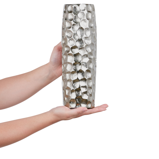 AusverkauftBlumenvase CALAKMUL Metall 32 cm Silber