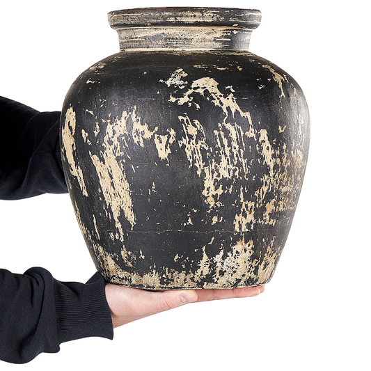 AusverkauftTerrakotta Dekovase 33 Schwarz Beige LINDOS