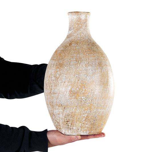 AusverkauftTerrakotta Dekovase 39 Beige Weiss CYRENA